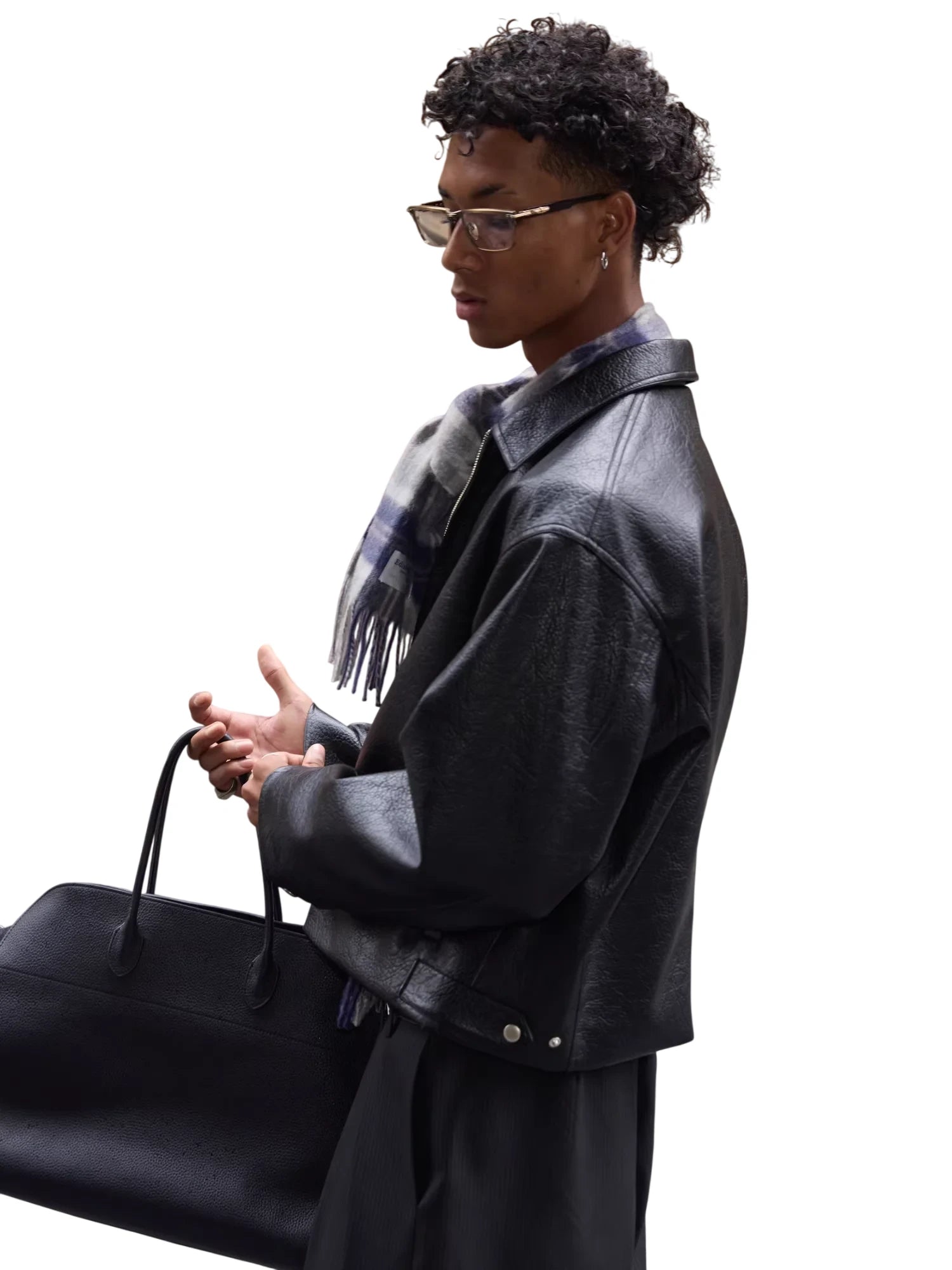Styled here with a ribbed top and black trousers, and complemented by a plaid wool scarf and clear-framed glasses, this jacket captures a timeless, old-money aesthetic perfect for cooler city days.