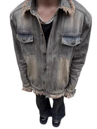 Y OFFICIAL Distressed High-Rise Vintage Raw Hem Denim Jacket
