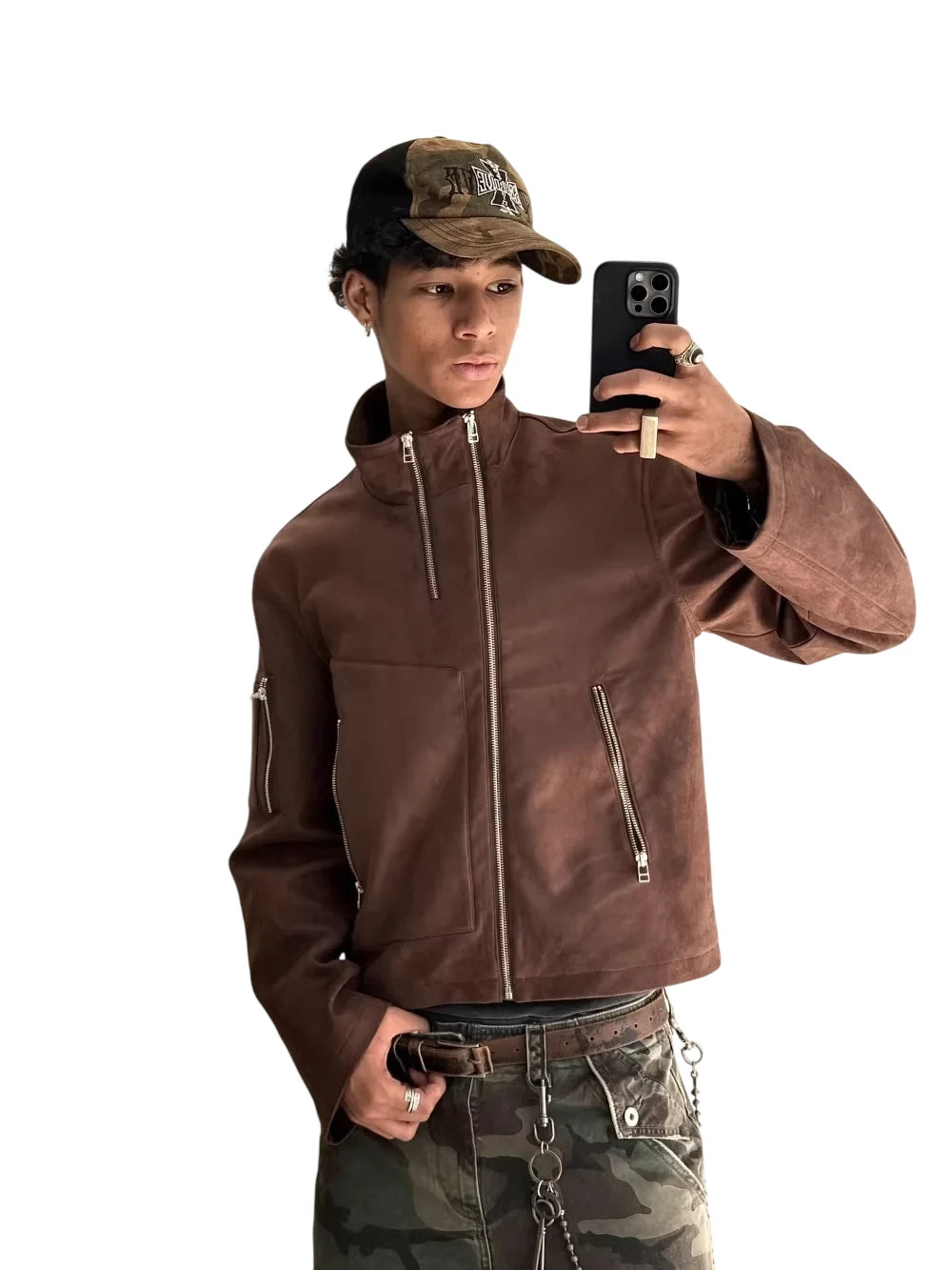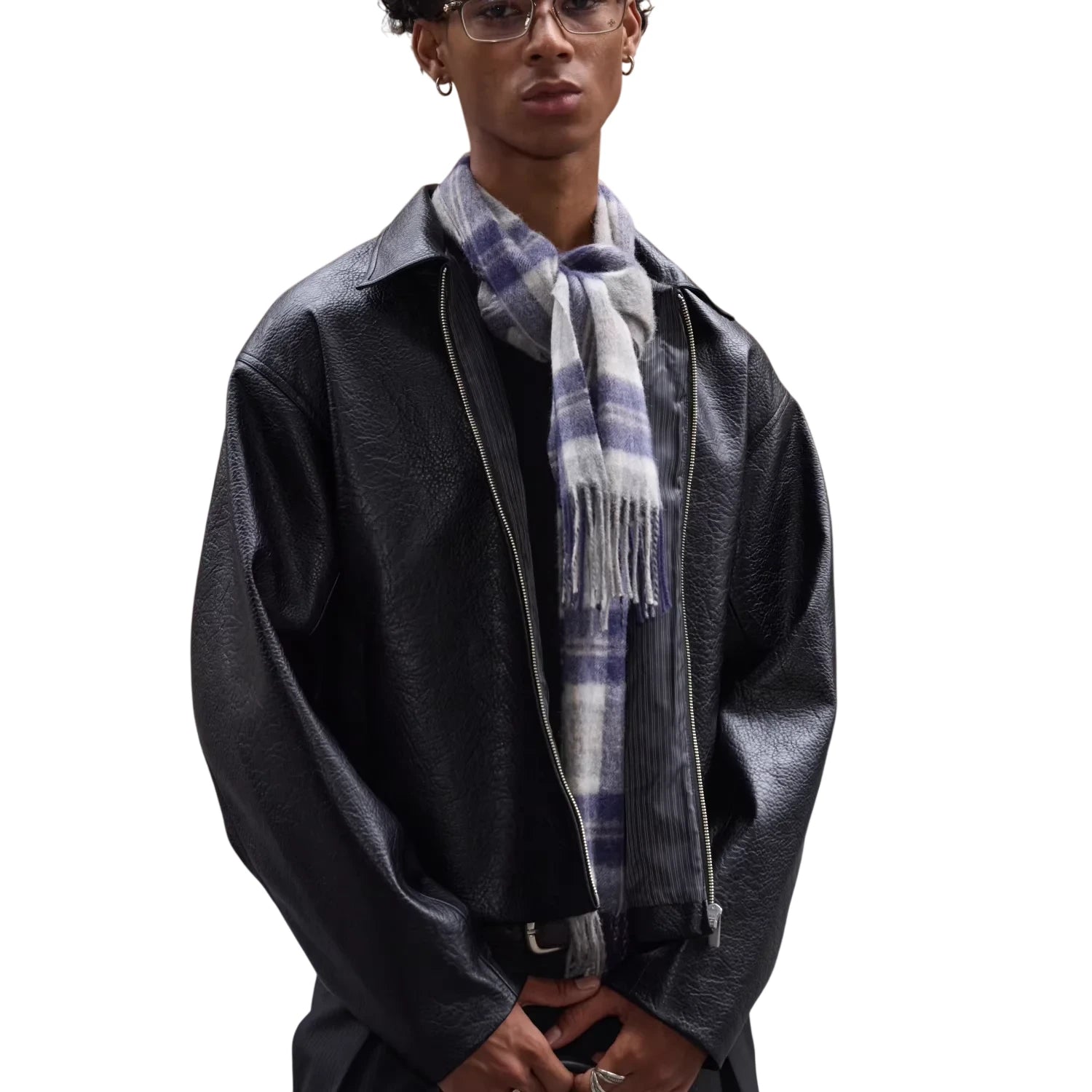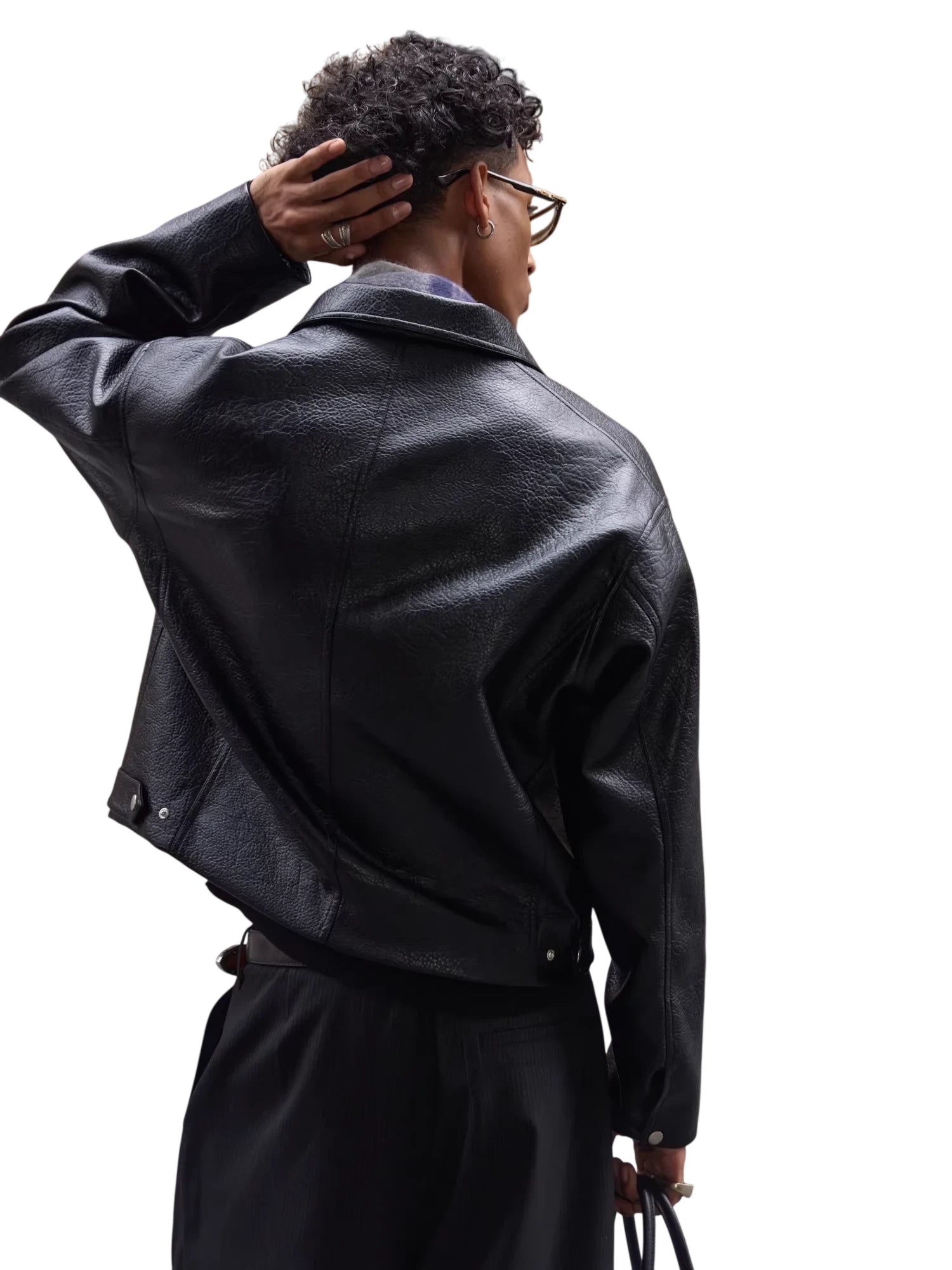 UNKNOWNWORLD Men's Oversized Distressed Leather Motorcycle Jacket