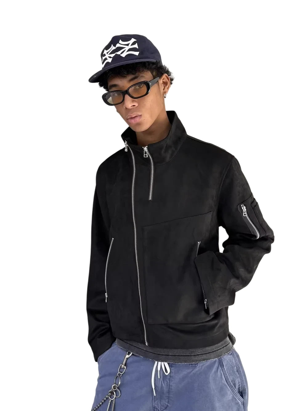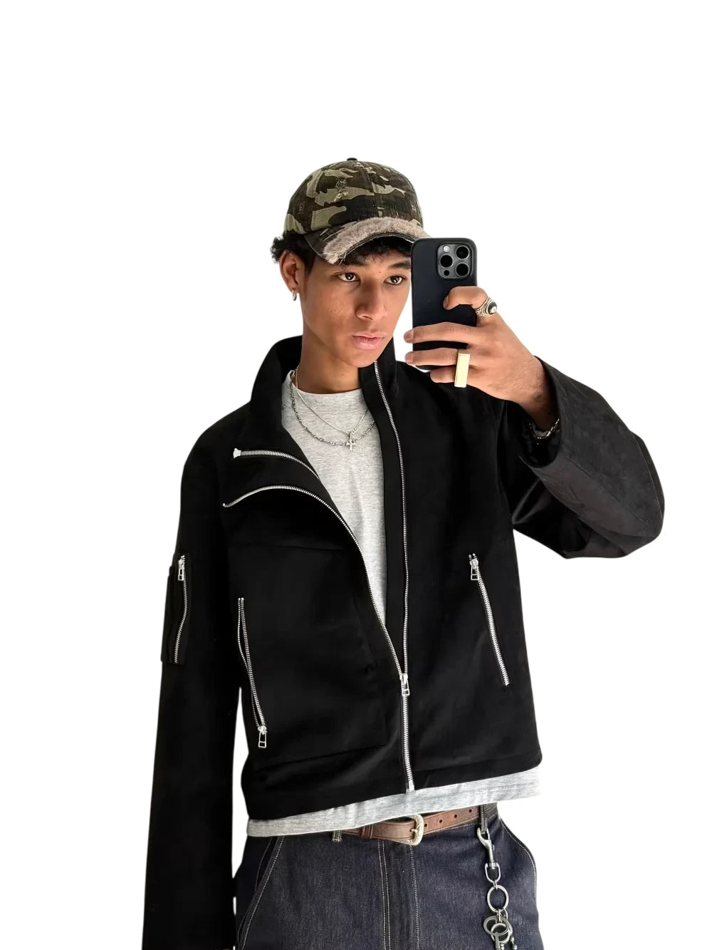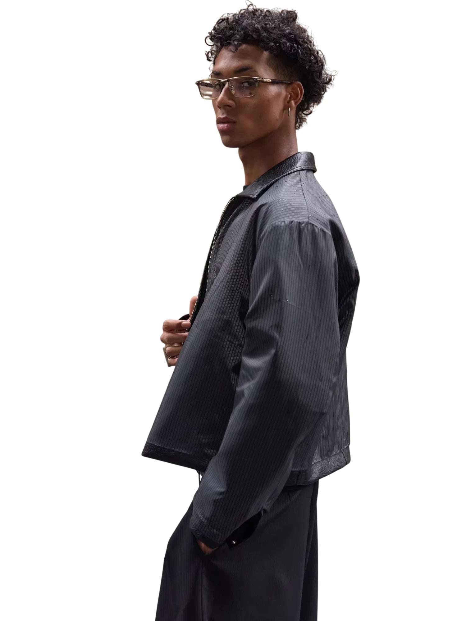 UNKNOWNWORLD Men's Oversized Distressed Leather Motorcycle Jacket