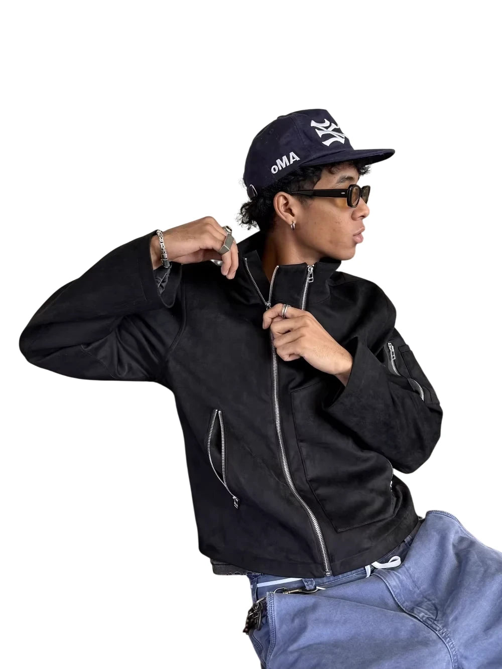 VLABMADE Oversized Vintage High Collar Fur-Lined Denim Jacket