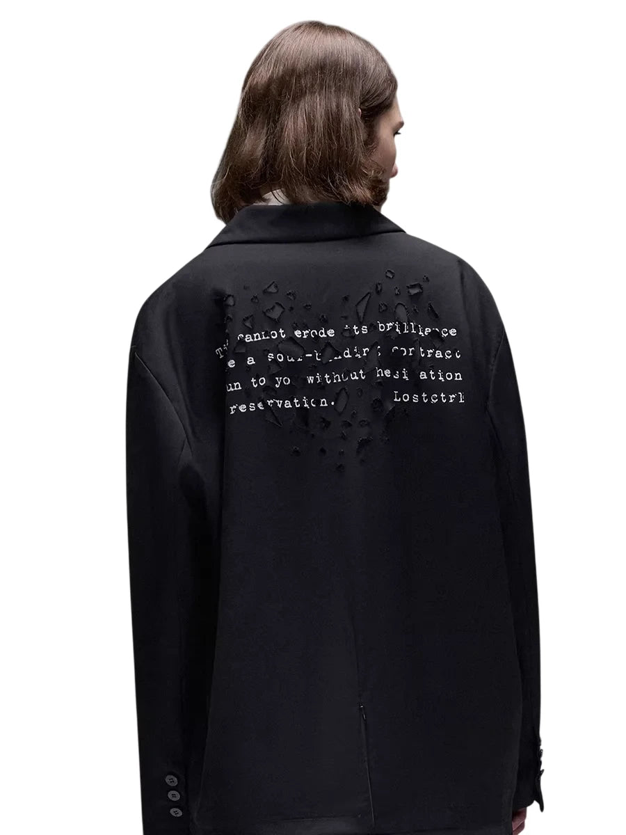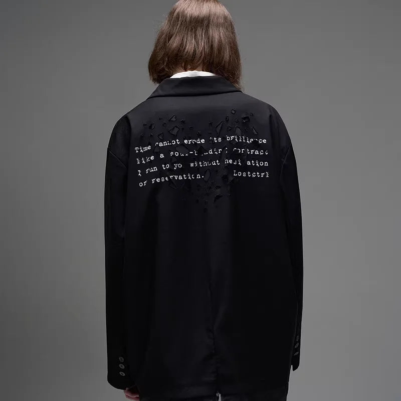 CFIERCE Striped Gothic Angel Print Jacket with Detachable Fur Collar