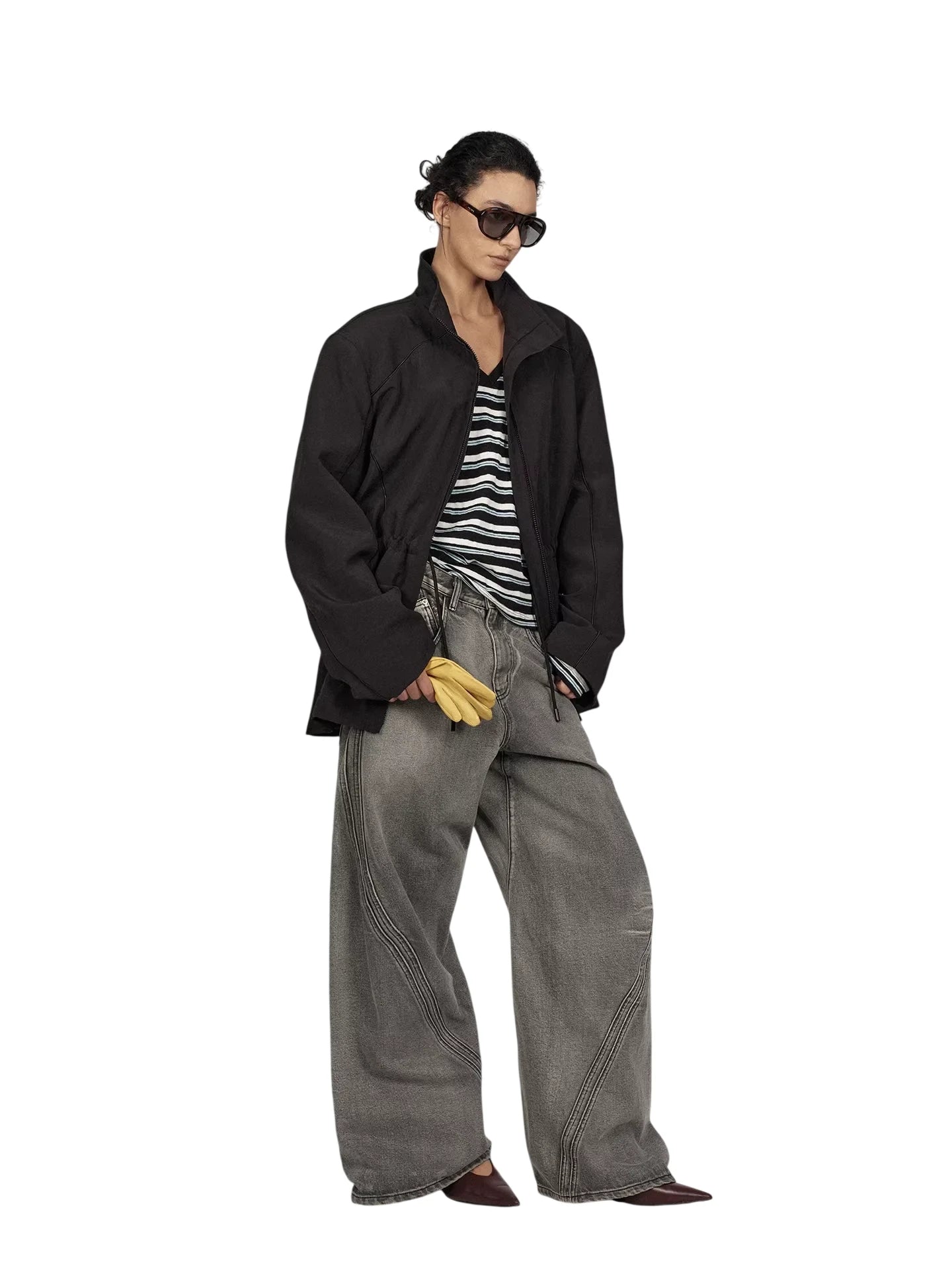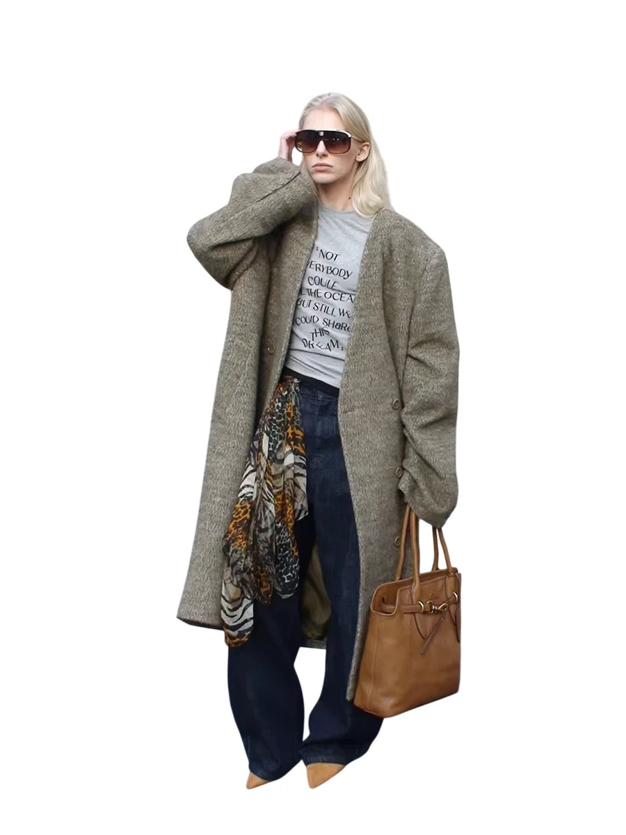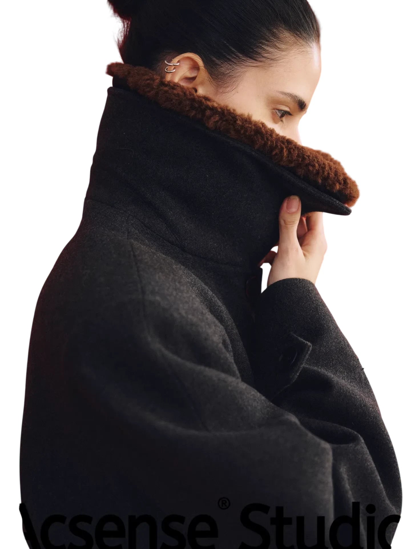 ACSENSE STUDIO Oversized Wool Coat with Large Lapels and Structured Shoulders
