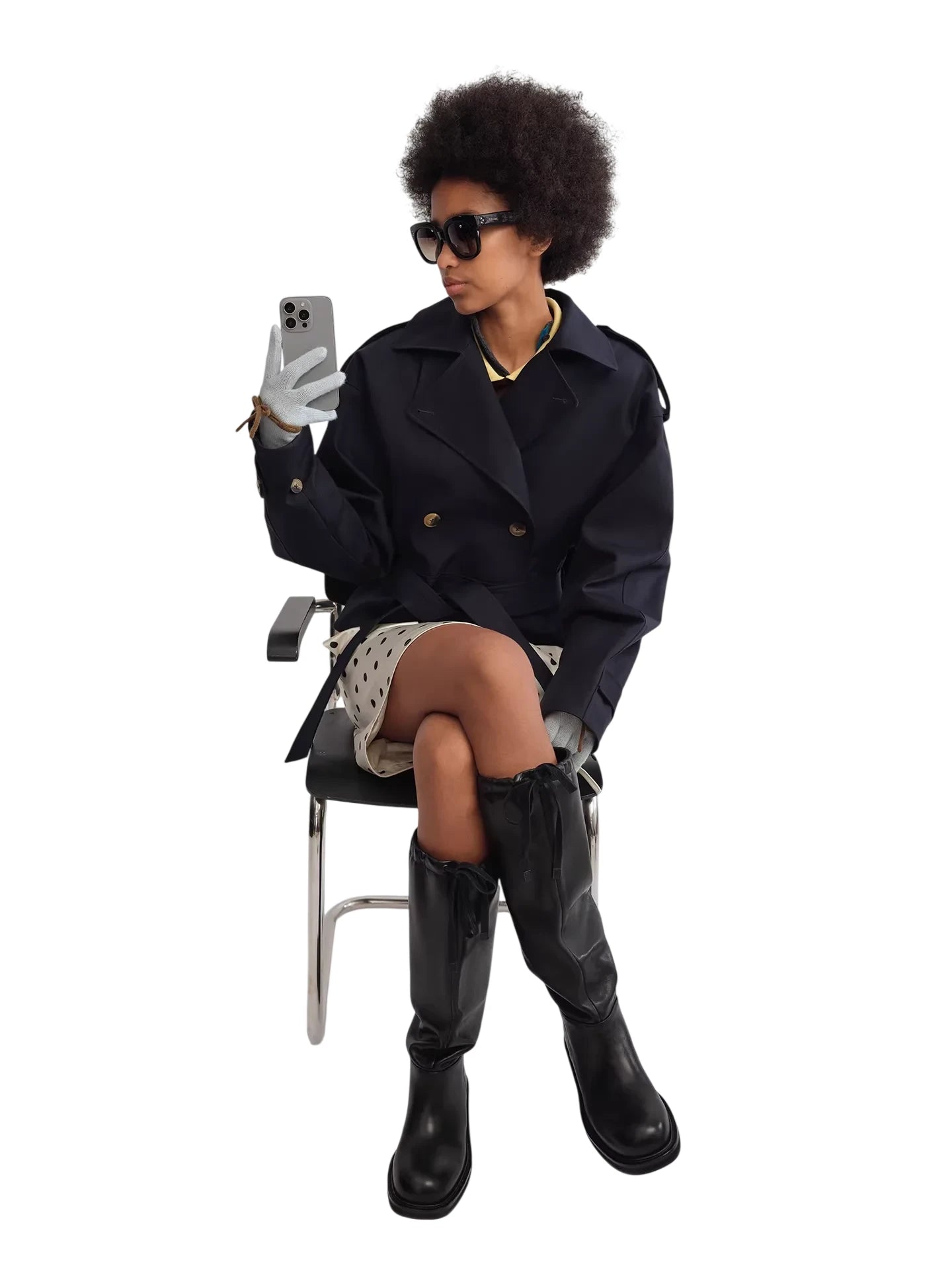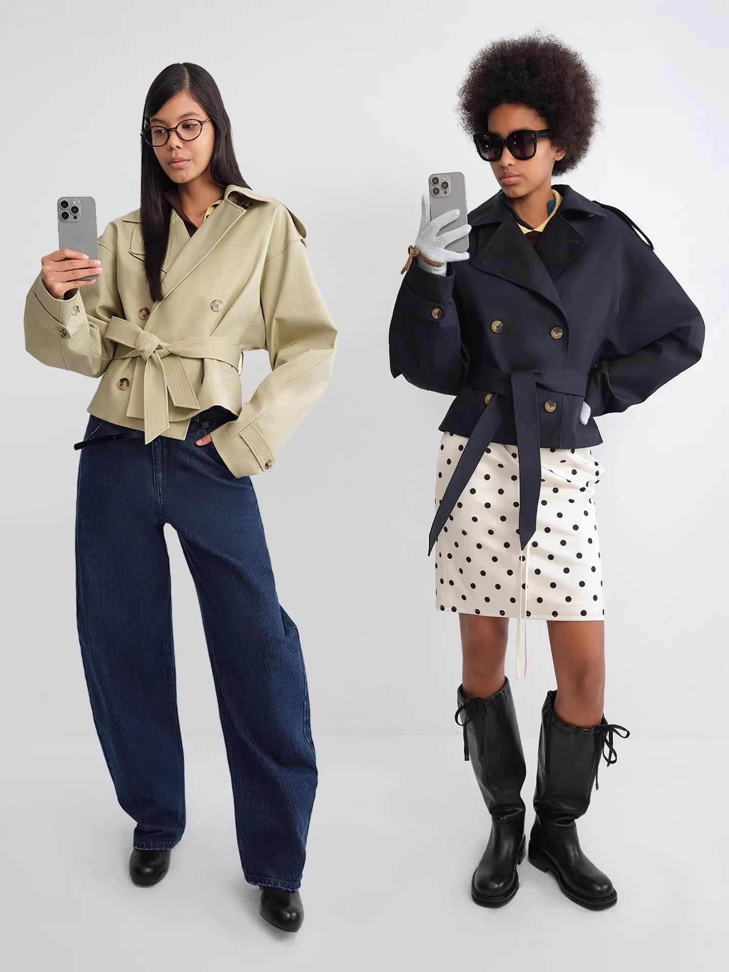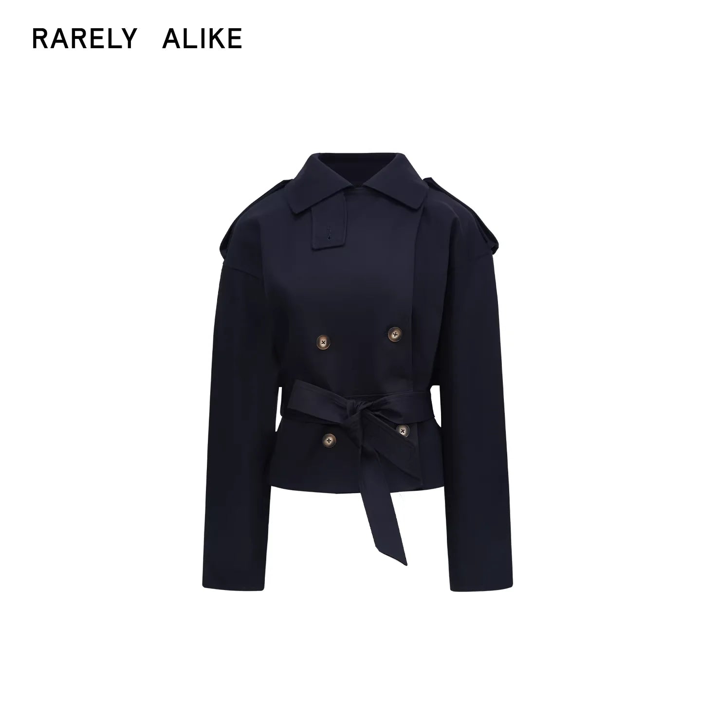 RARELY ALIKE Double-Breasted Wool Blend Belted Coat - Black and Grey