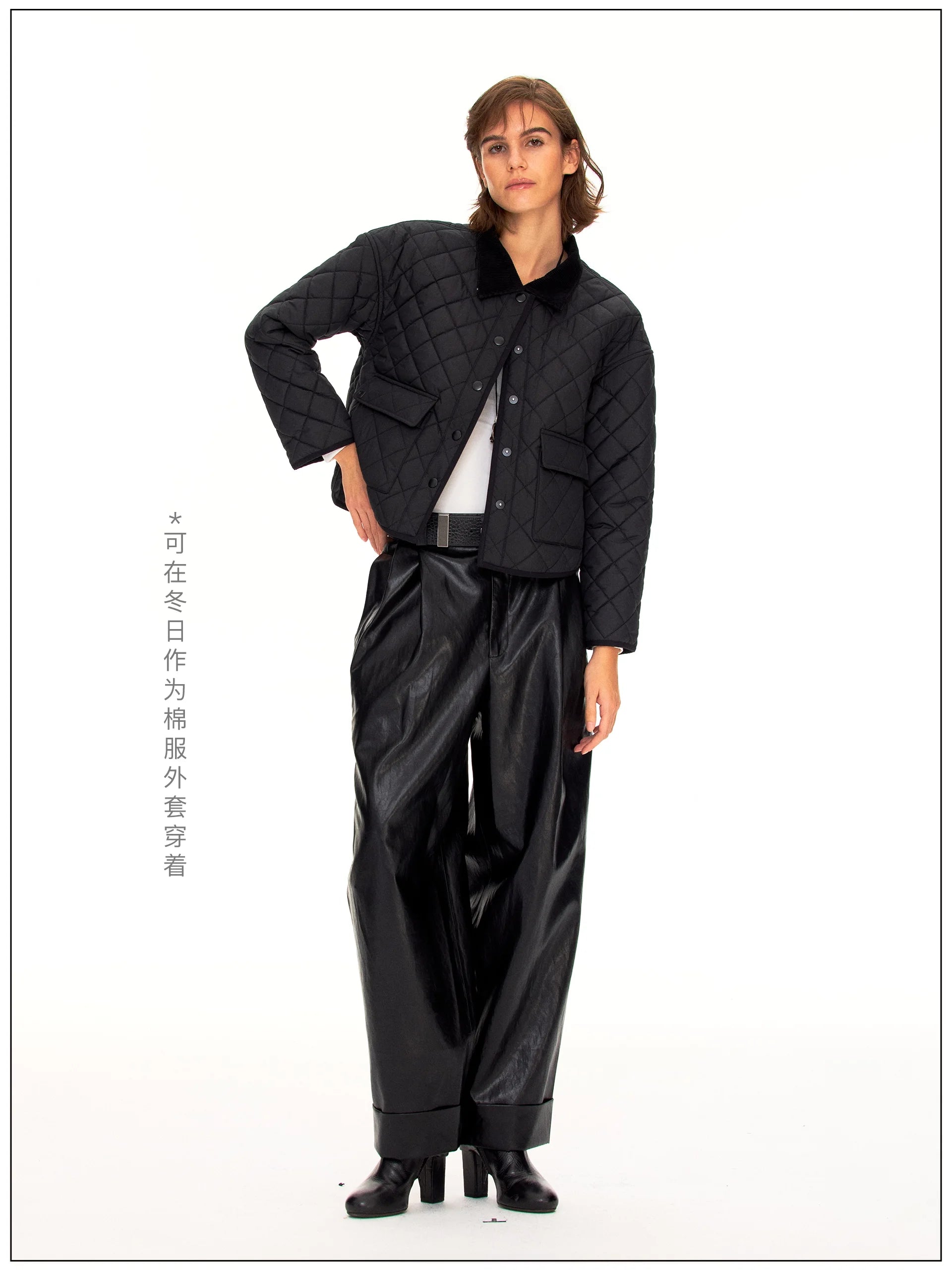 RARELY ALIKE Short Faux Fur Jacket with Suede Lining in Dark Coffee and White