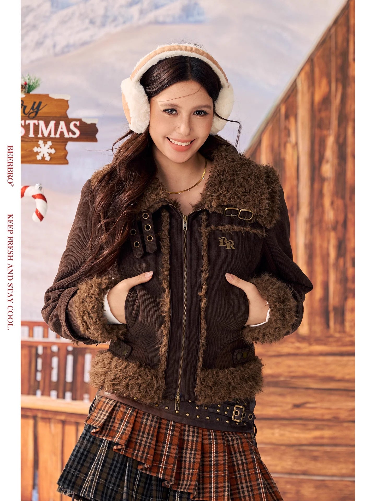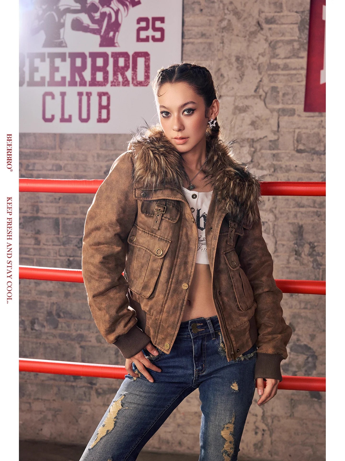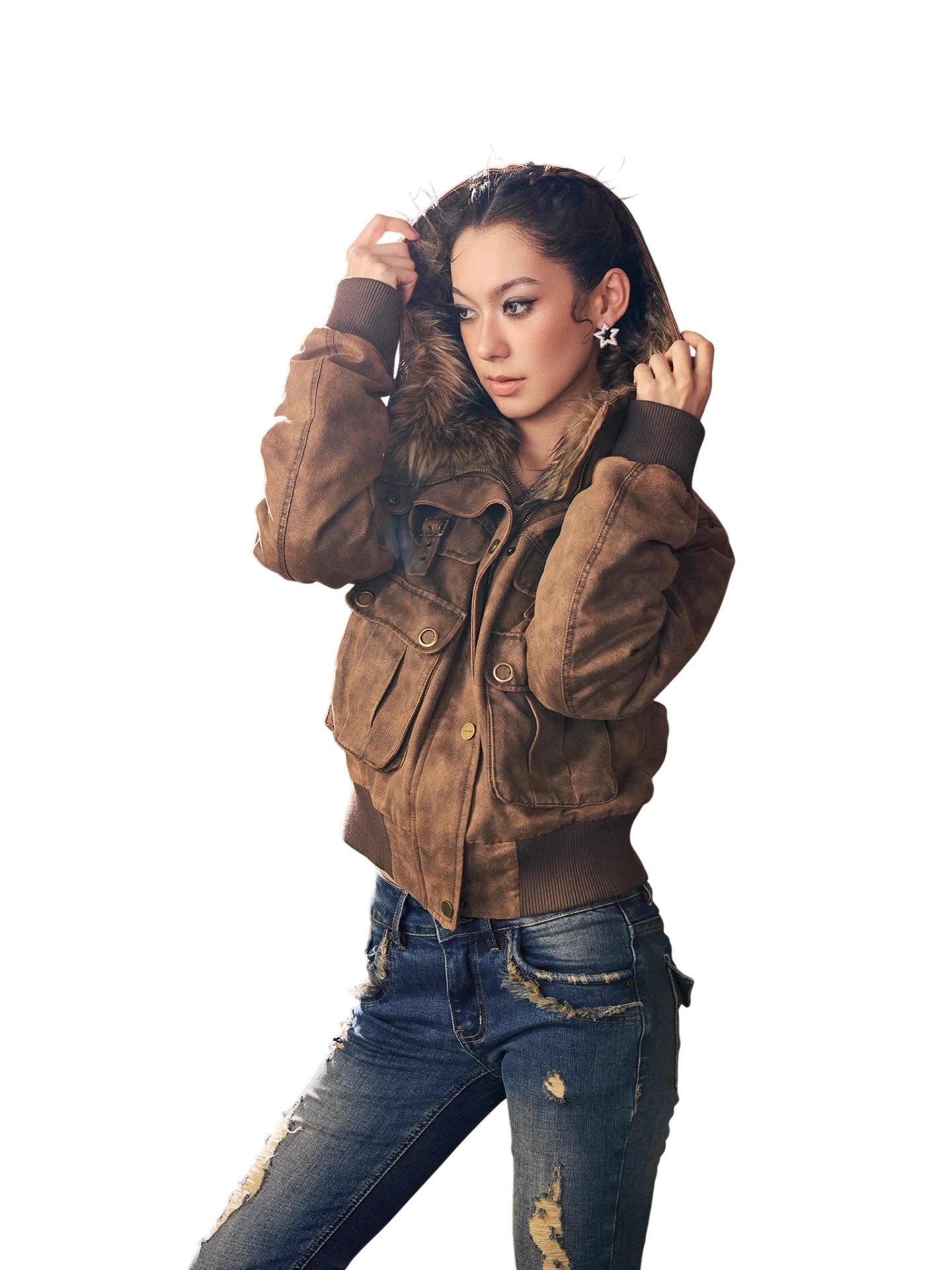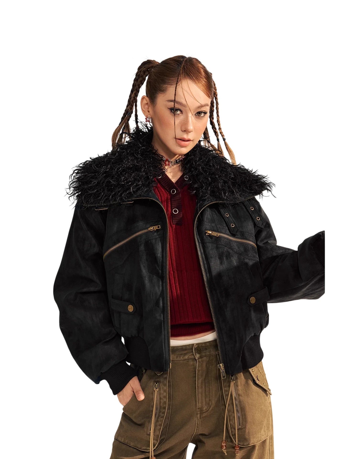 BIGGOLD STUDIO Women's Suede Stand Collar Padded Workwear Jacket