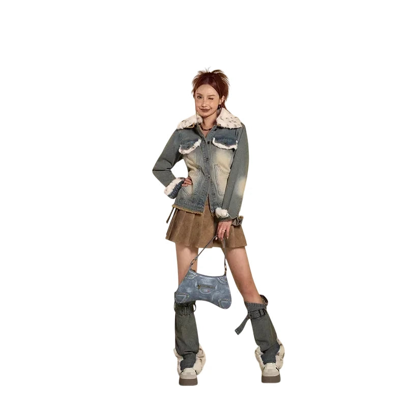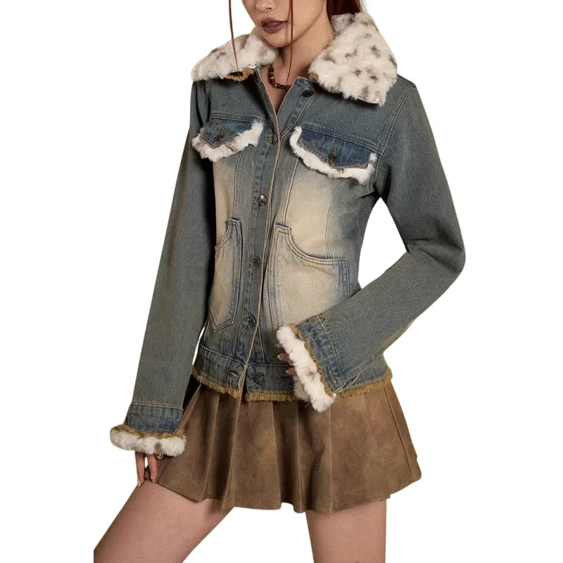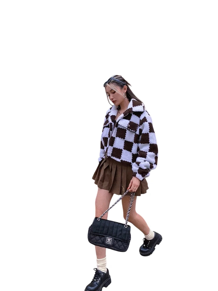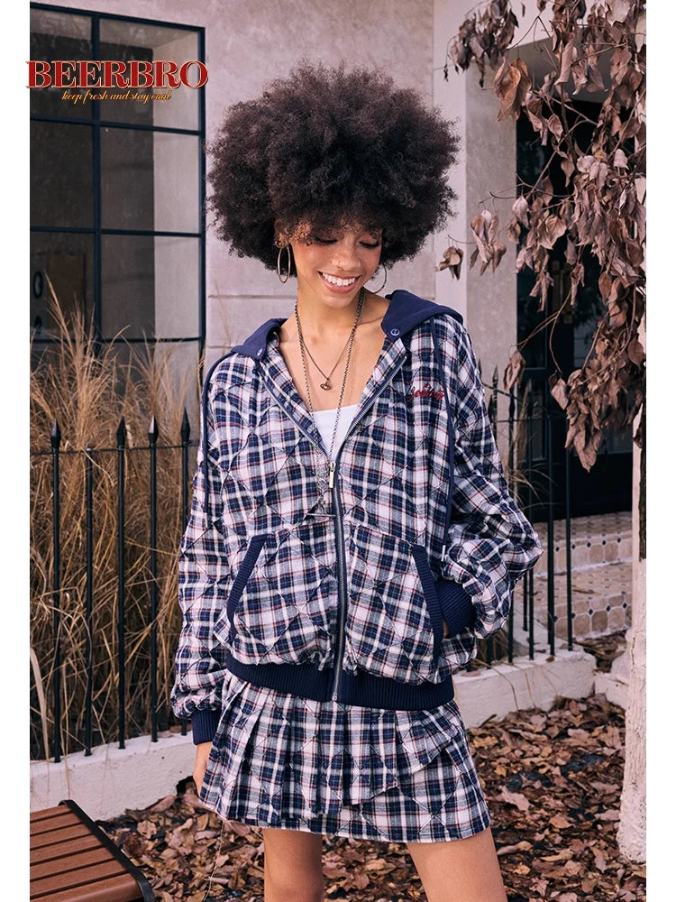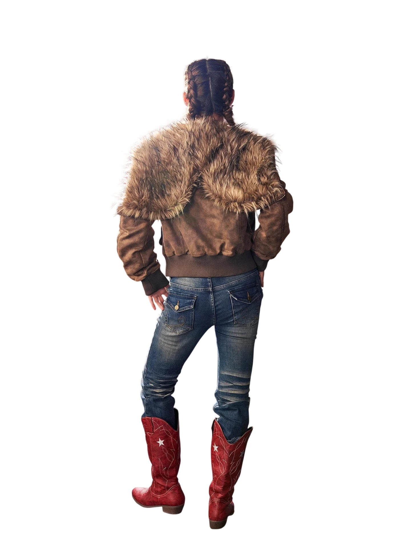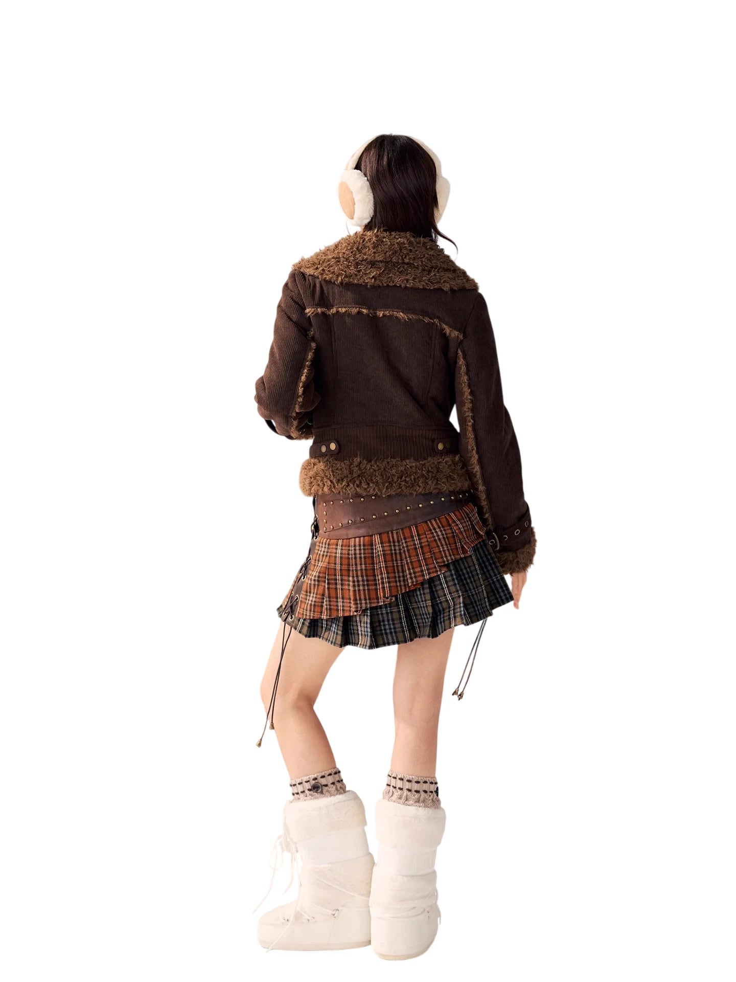 BIGGOLD STUDIO Women's Suede Stand Collar Padded Workwear Jacket
