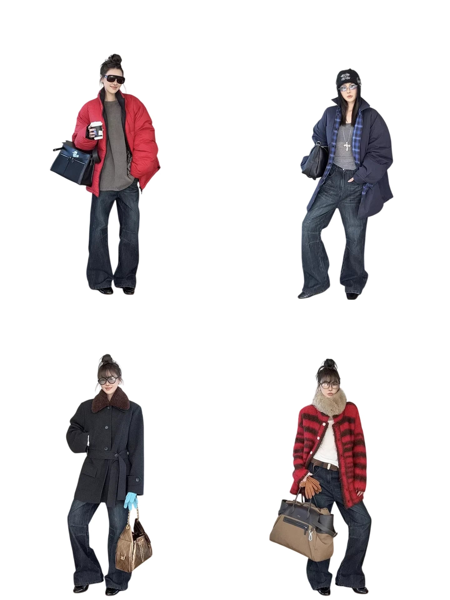 Designed for a contemporary and casual style, these women's flared jeans are crafted from all-cotton slub fabric, offering a distinct heavy-wash finish with subtle whisker-effect detailing. The wide-leg silhouette delivers a relaxed yet fashionable feel, perfect for everyday wear.