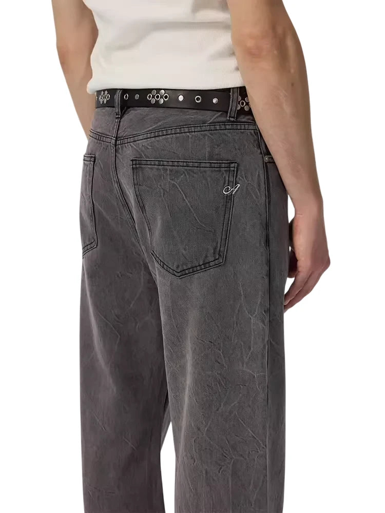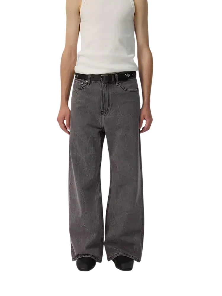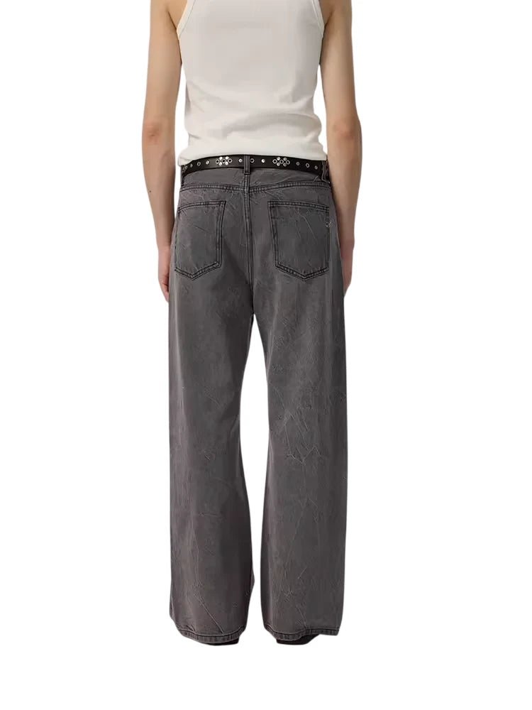 AFterTaste Smoke Grey Water Ripple Wide-Leg Jeans