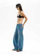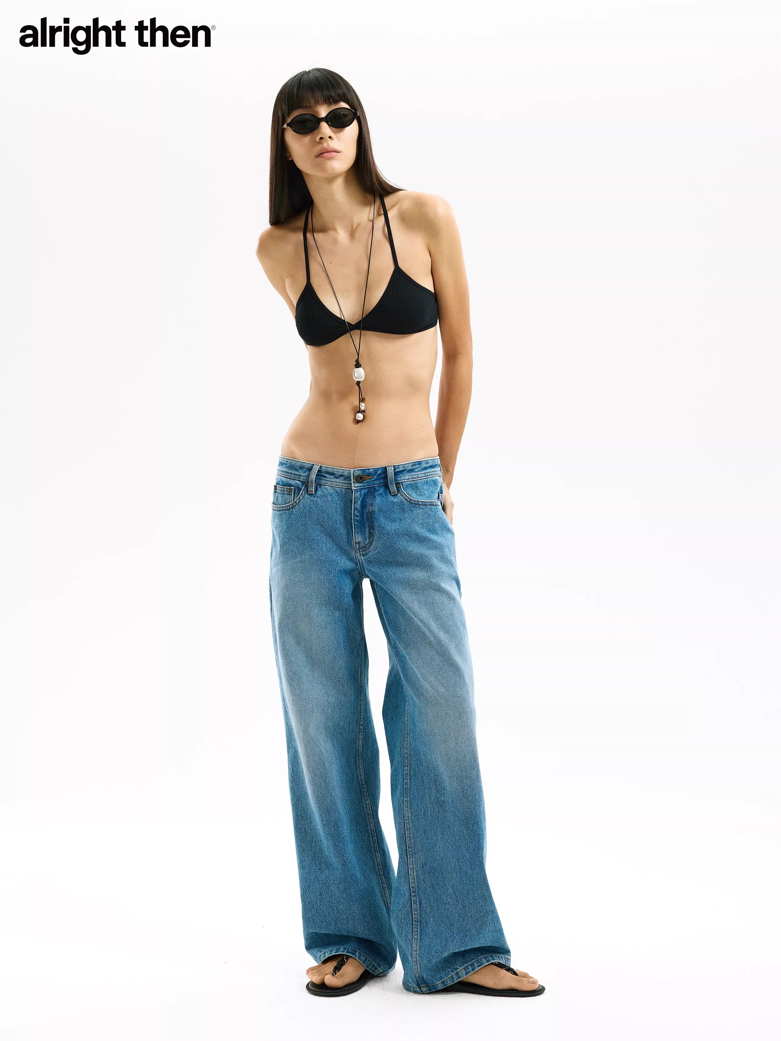 alright then Vintage Light Blue Distressed Mid-Rise Loose Straight Jeans