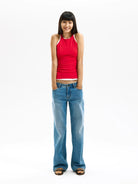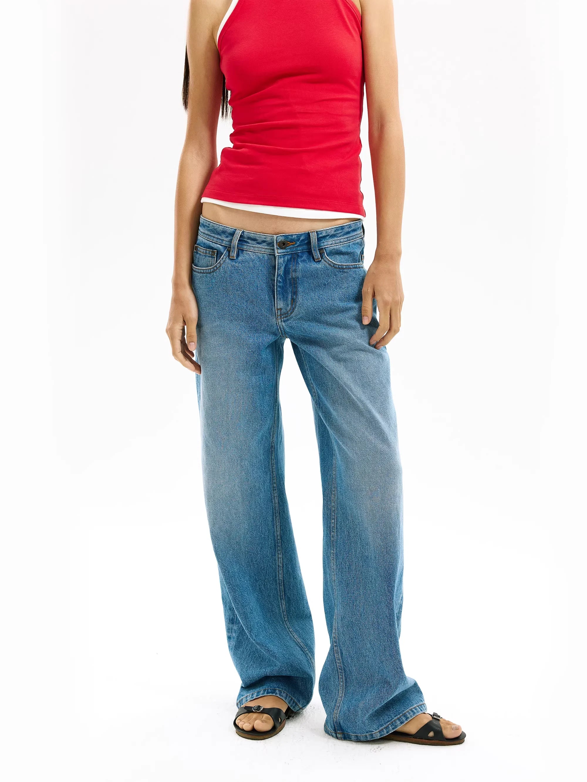 Elevate your casual wardrobe with these women's vintage light blue jeans featuring a classic mid-rise waist and relaxed straight-leg fit. Crafted from pure cotton for all-day comfort, these jeans showcase a gently faded, distressed finish for a lived-in, vintage look. Designed with five-pocket styling and a traditional button and zip closure, they bring effortless style to any laid-back outfit.