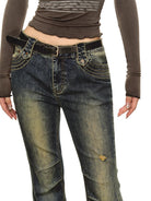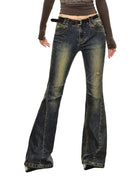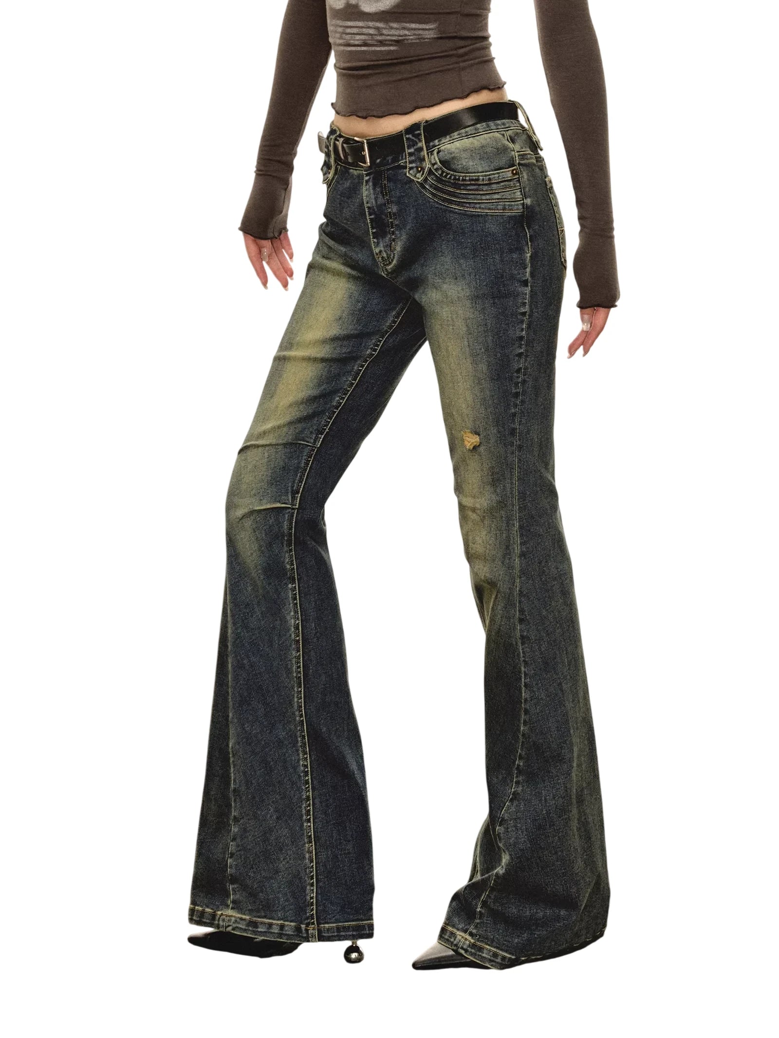 ARISEISM Women's Vintage Flared High-Waist Denim Jeans - Slim Fit, Distressed Style