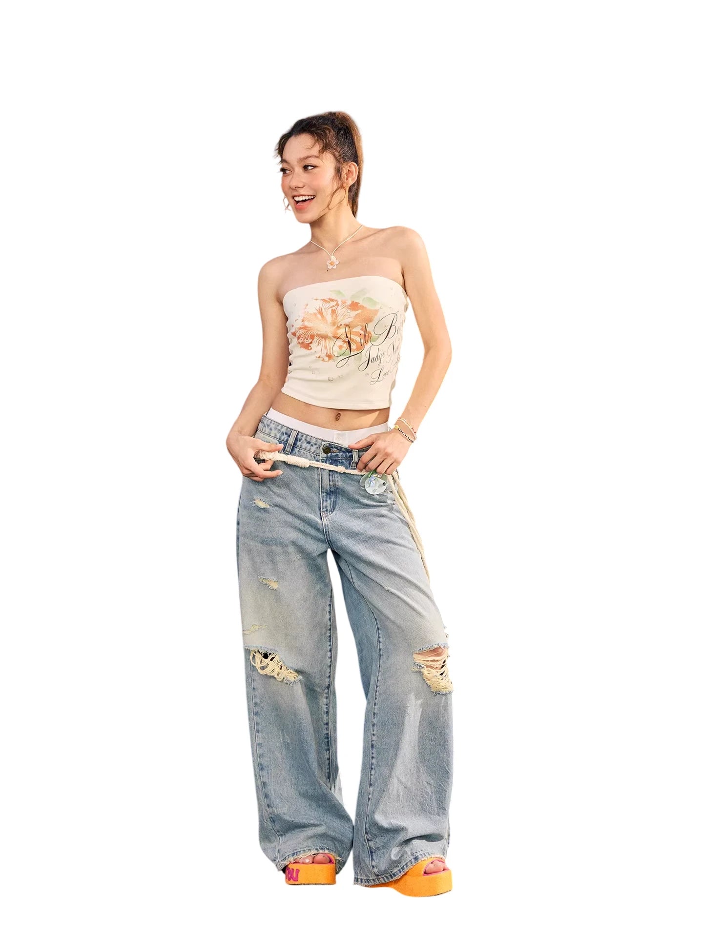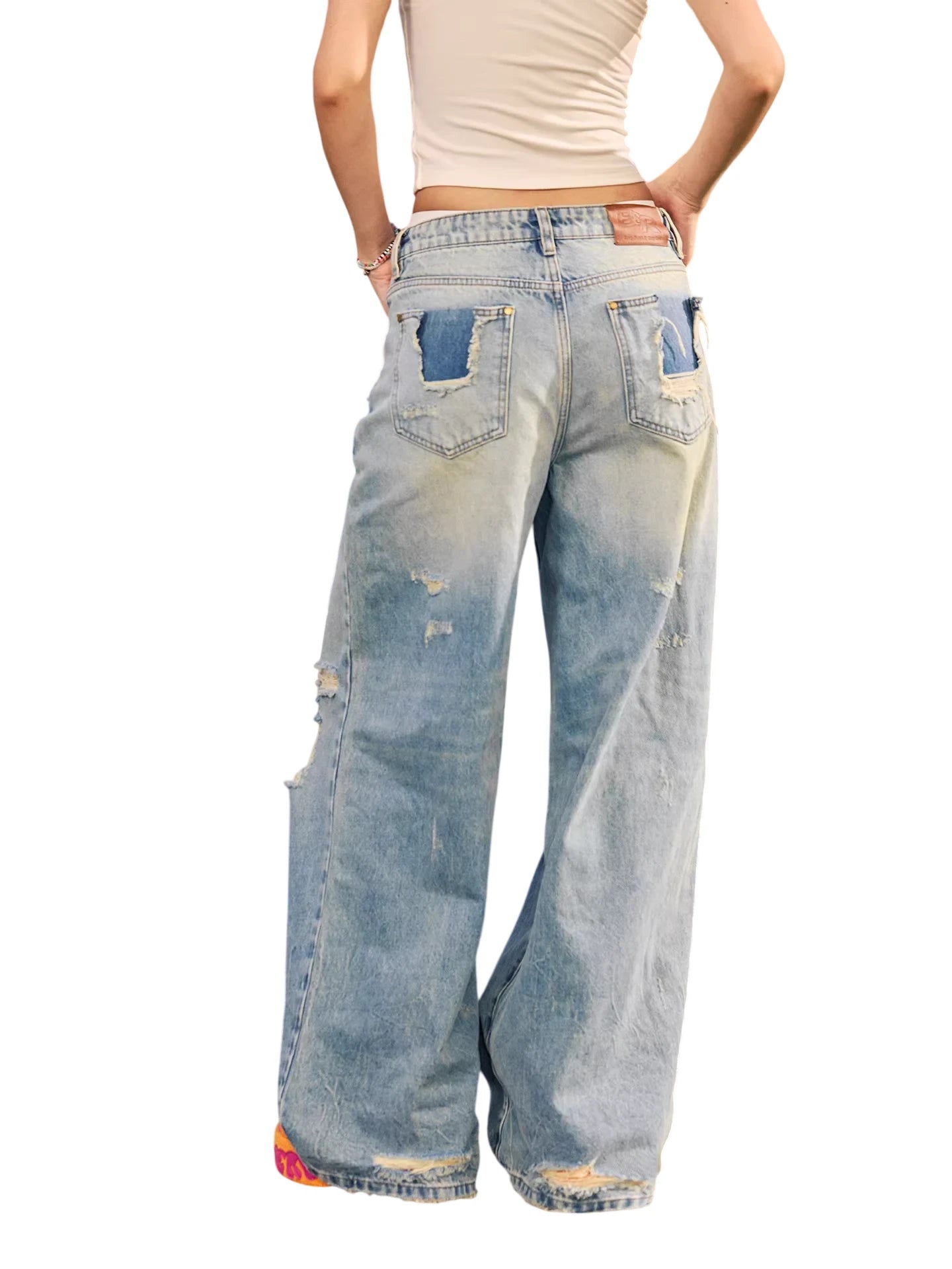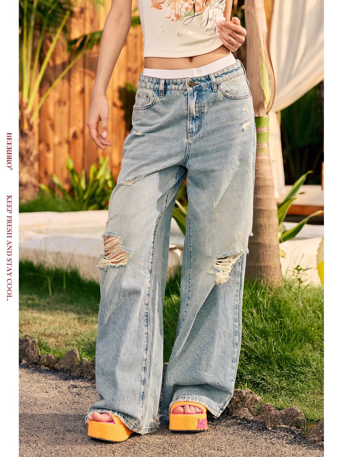BeerBro Distressed High-Waisted Wide-Leg Jeans