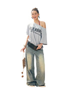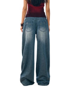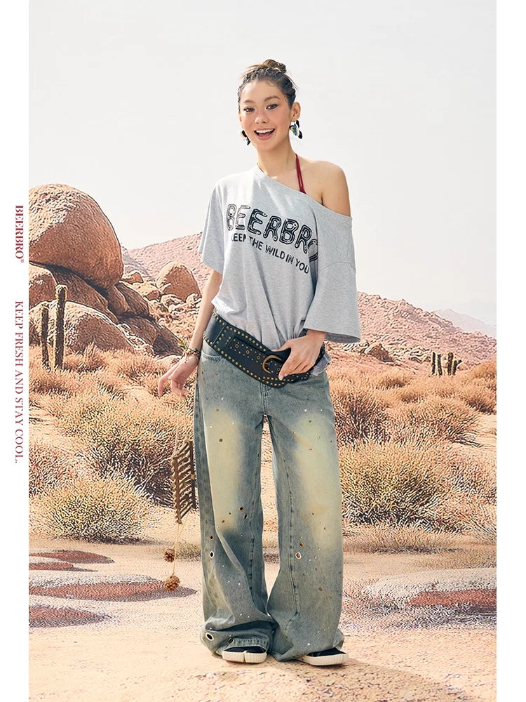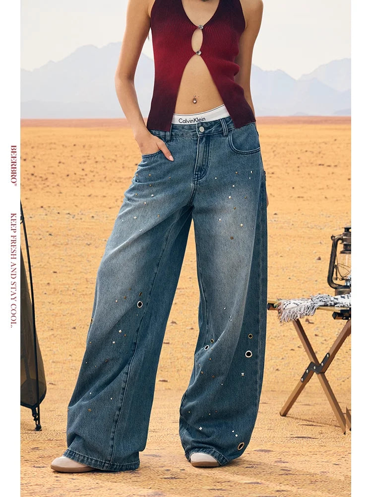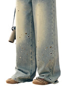 BeerBro Distressed Studded Wide-Leg Denim Pants for Women