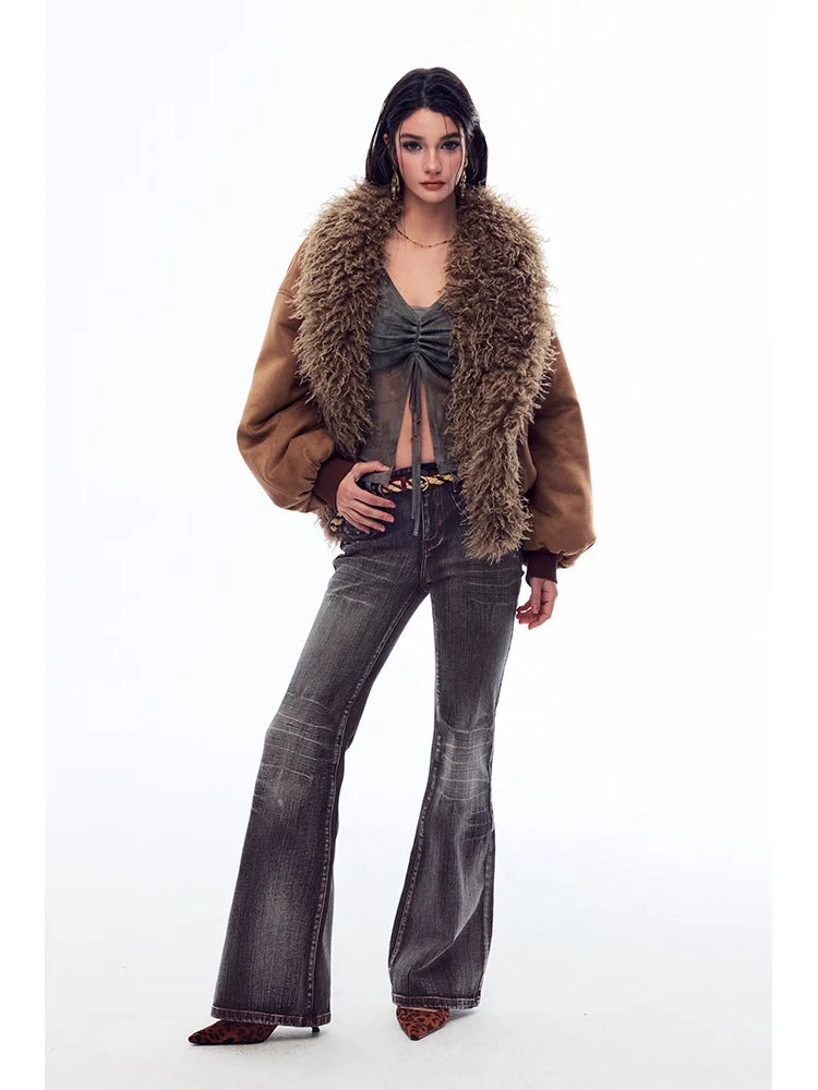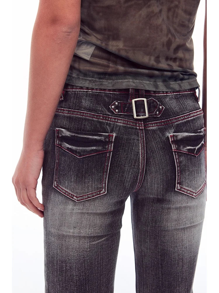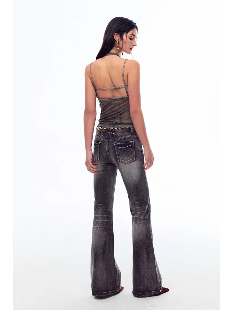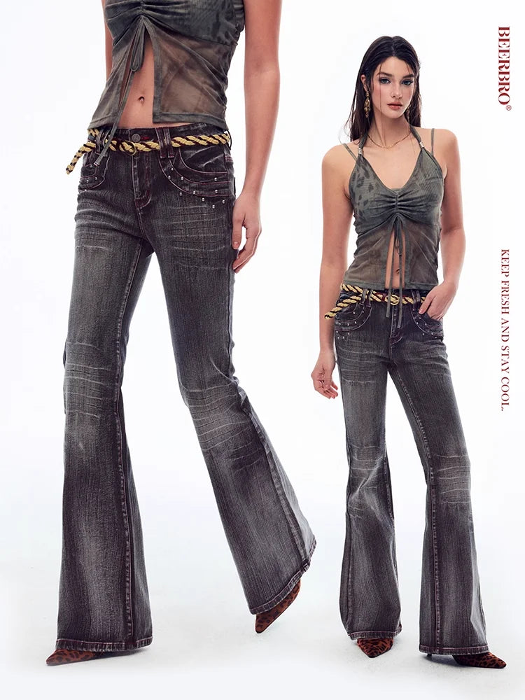 BeerBro Low-Rise Flared Washed Jeans with Whisker Detailing