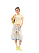 BeerBro Rhinestone Distressed Denim Bermuda Shorts