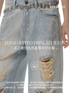 BeerBro Women's Distressed High-Waisted Wide-Leg Jeans