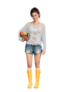 Elevate your summer wardrobe with these stylish women's denim shorts crafted from 100% soft cotton. Designed with a mid-low waist fit, these heavy-duty shorts feature trendy distressed detailing at the front for an edgy, worn-in look. Unique side accents with metal rings and darker denim panels add a punk-inspired touch, complemented by a bold black studded leather belt. Perfect for casual outings, these fashionable shorts blend comfort with attitude for a standout summer style.
