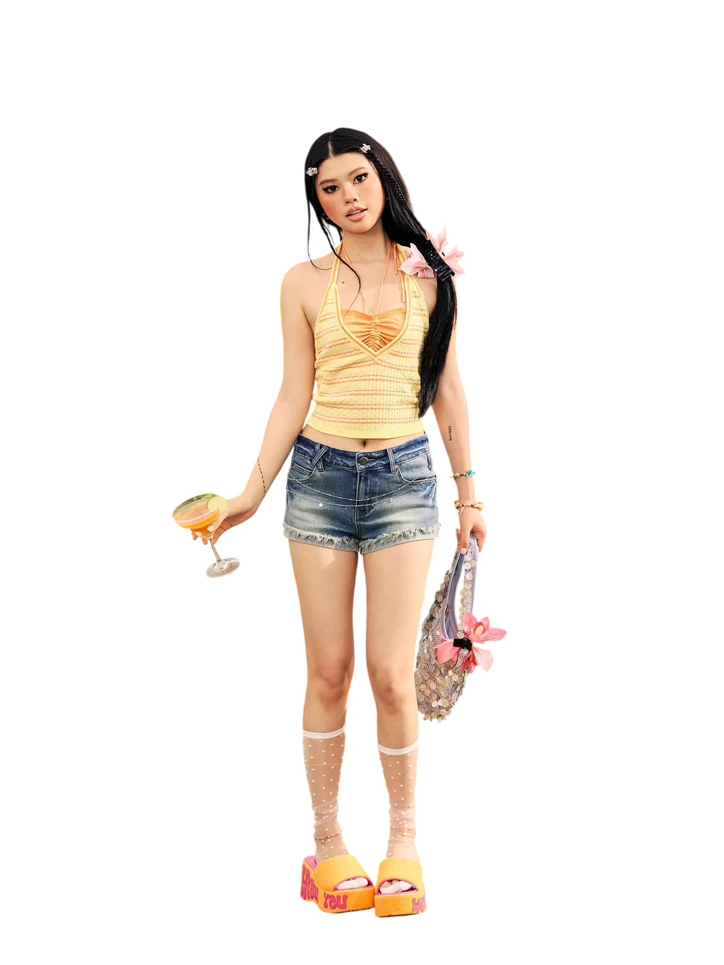 Elevate your summer wardrobe with these stylish women's washed floral frayed denim shorts. Designed with a flattering bodycon fit and a hint of stretch, these shorts ensure both comfort and style. Featuring a dark washed finish and subtle floral detailing, they're perfect for casual outings or beach getaways. The frayed hemline adds a trendy, laid-back touch ideal for warm weather fashion.