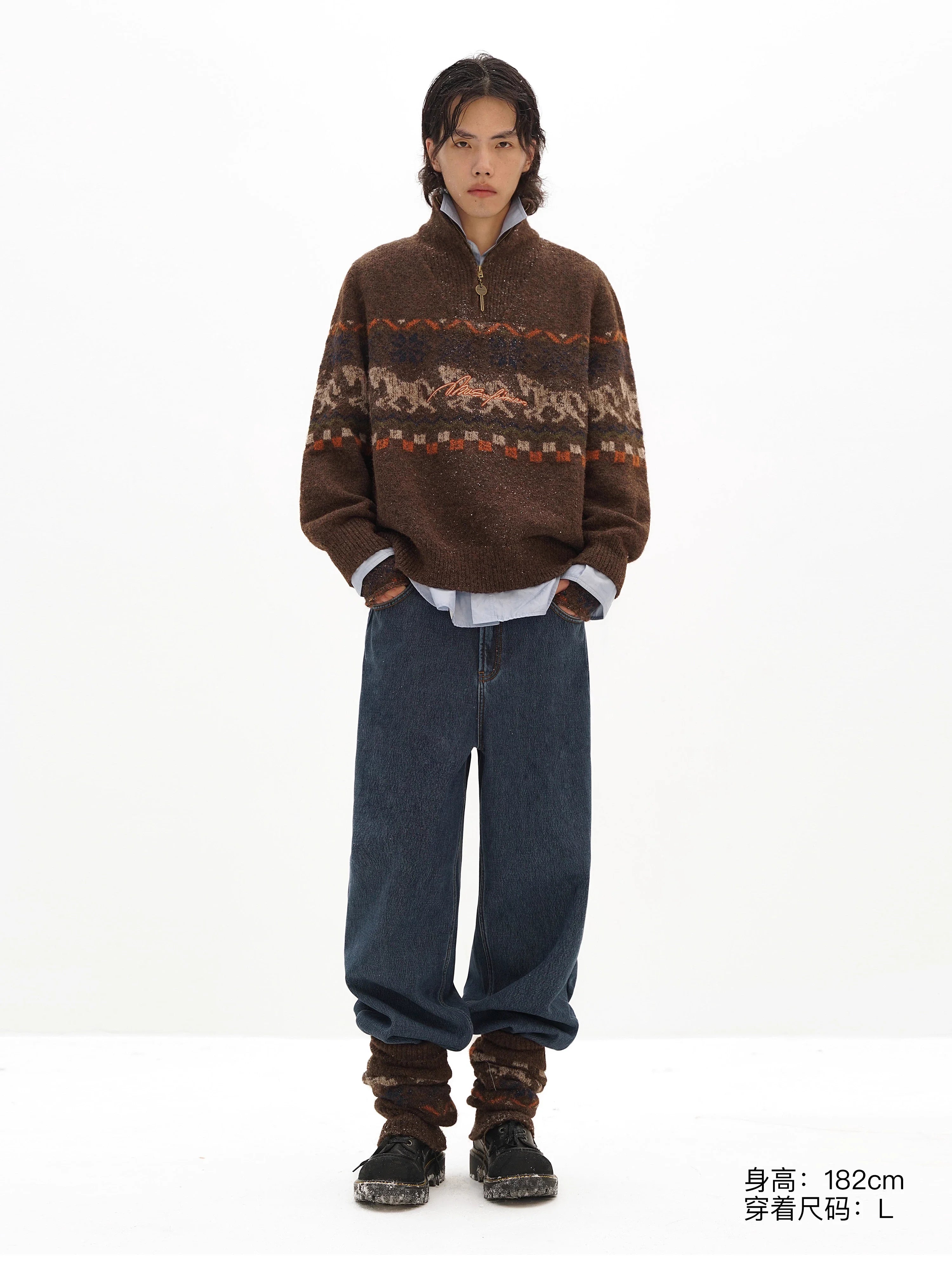 Stay warm in style with these high-waisted straight-leg jeans, crafted from a durable cotton blend and lined with soft fleece for added insulation. Designed for a casual, loose fit, these jeans feature classic five-pocket styling, belt loops, and visible seam details. Ideal for cold weather, they offer both comfort and an effortlessly relaxed look. Suitable for men.
