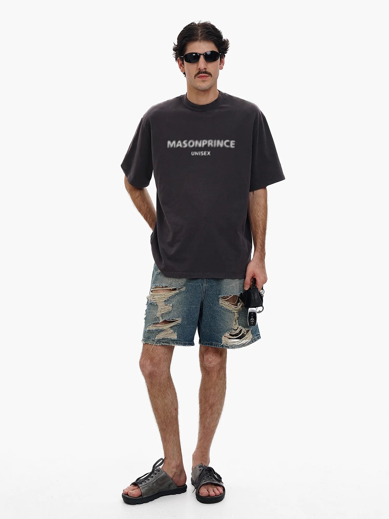 MASONPRINCE Men's Distressed Knee-Length Denim Shorts with Tie-Dye Wash