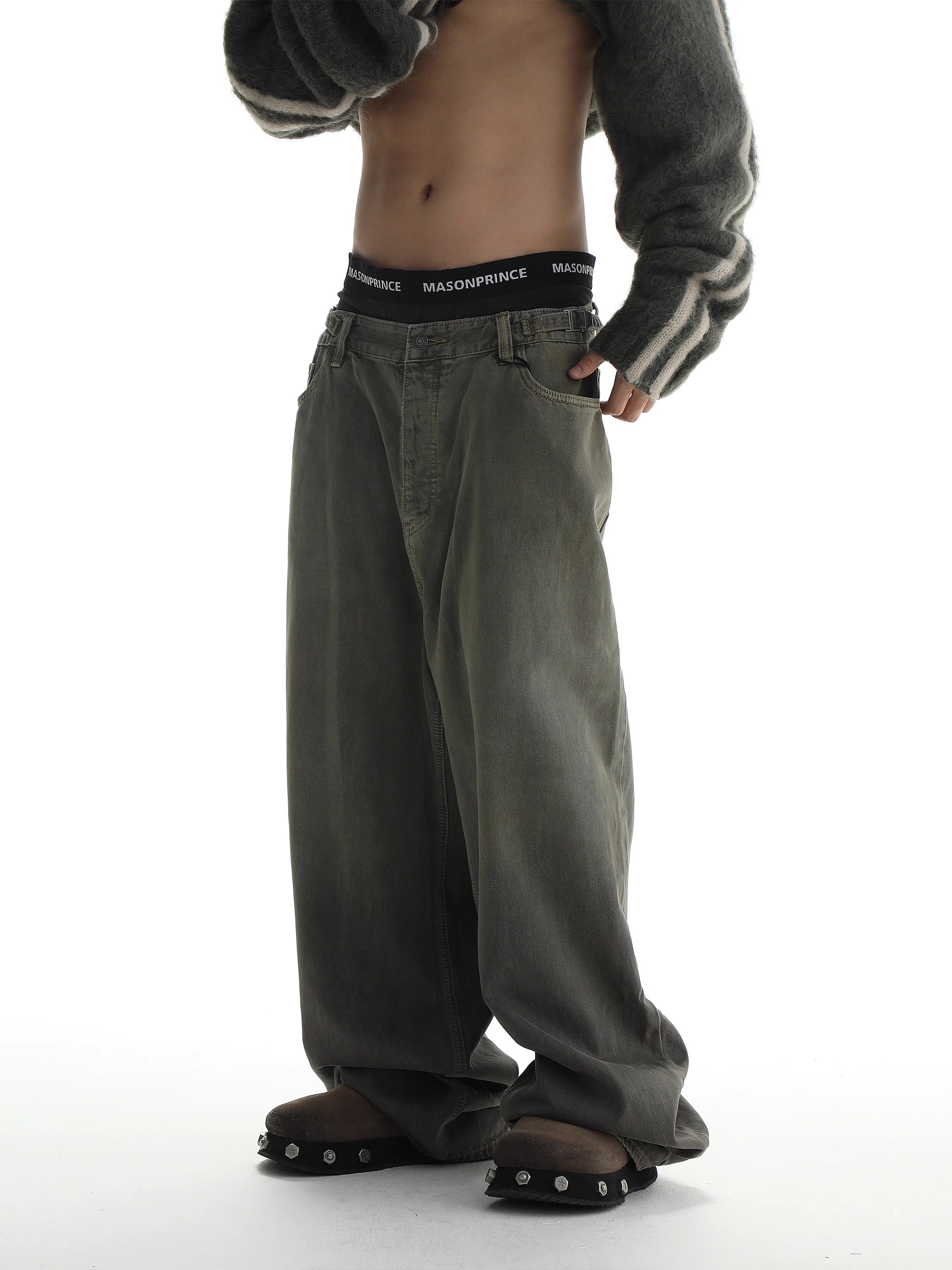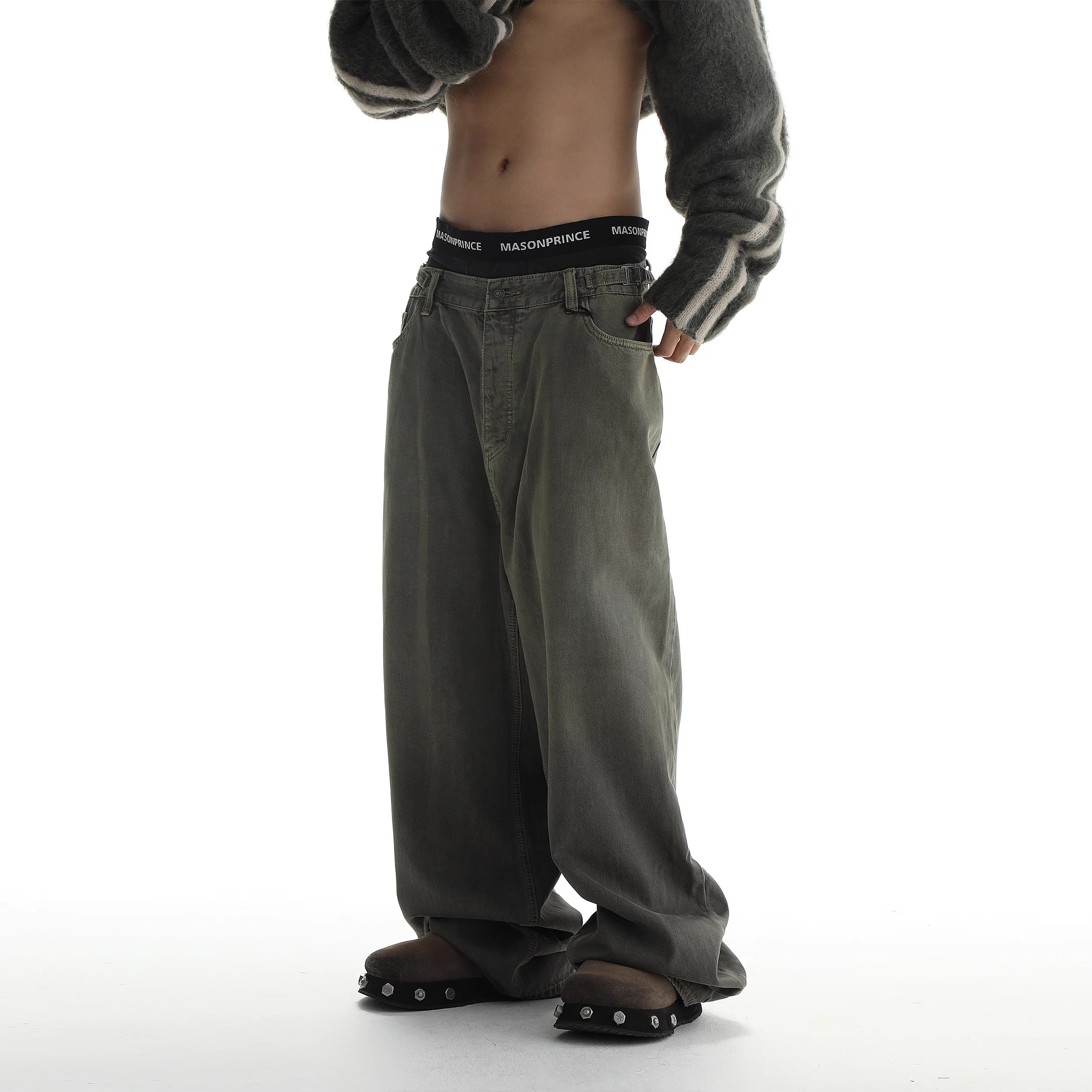 Elevate your casual wardrobe with these men's retro-inspired army green jeans. Featuring a gradient, mud-dyed finish and a washed, vintage look, these loose-fitting straight pants offer both comfort and style. Designed with wide legs and a low-rise waist, they blend American streetwear aesthetics with autumn and winter versatility. Perfect for a laid-back yet fashion-forward appearance.