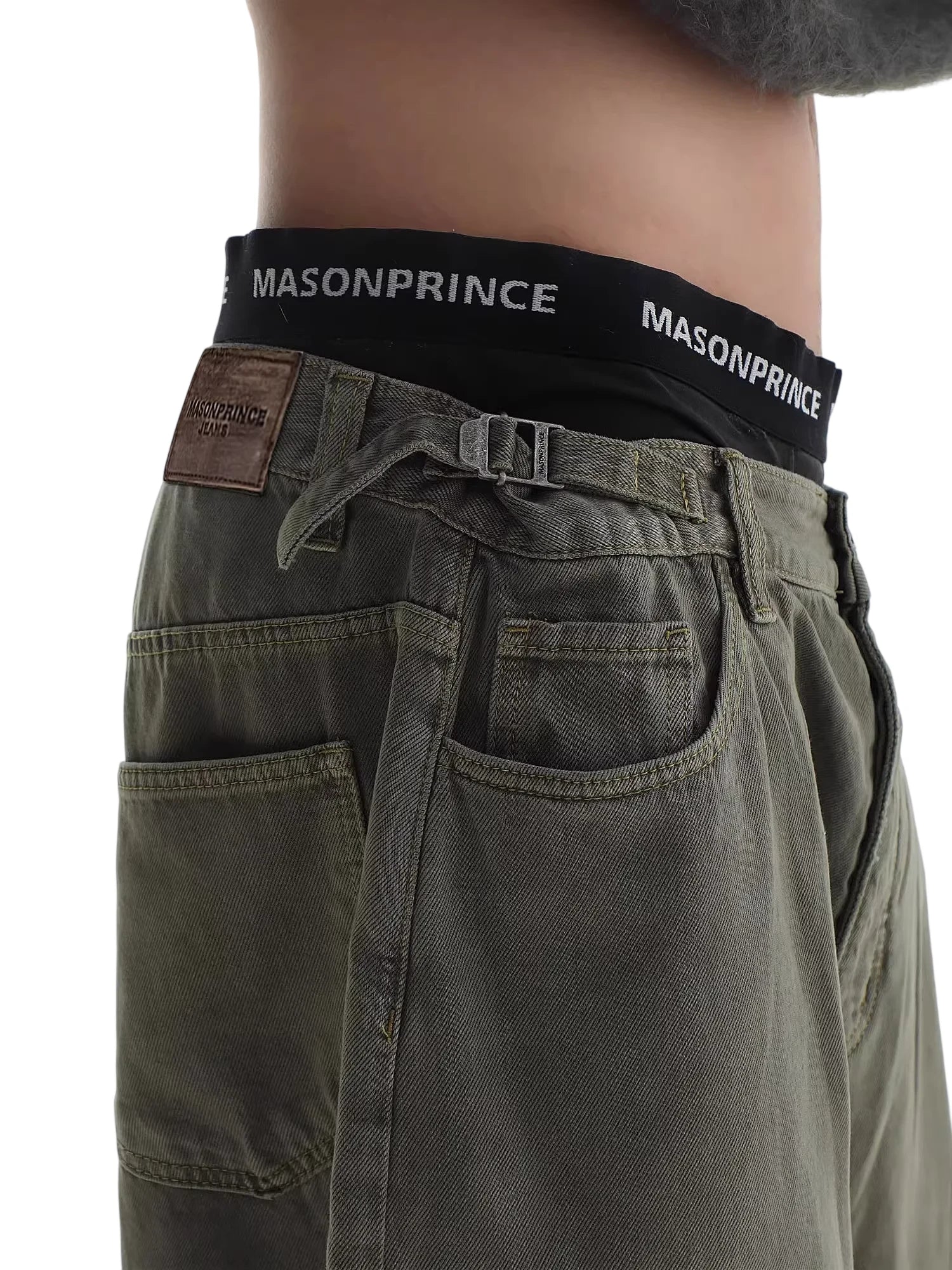 MASONPRINCE Men's Retro Army Green Gradient Jeans