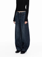 PUKI Women's Ultra-Wide Leg Curved Cocoon Denim Jeans