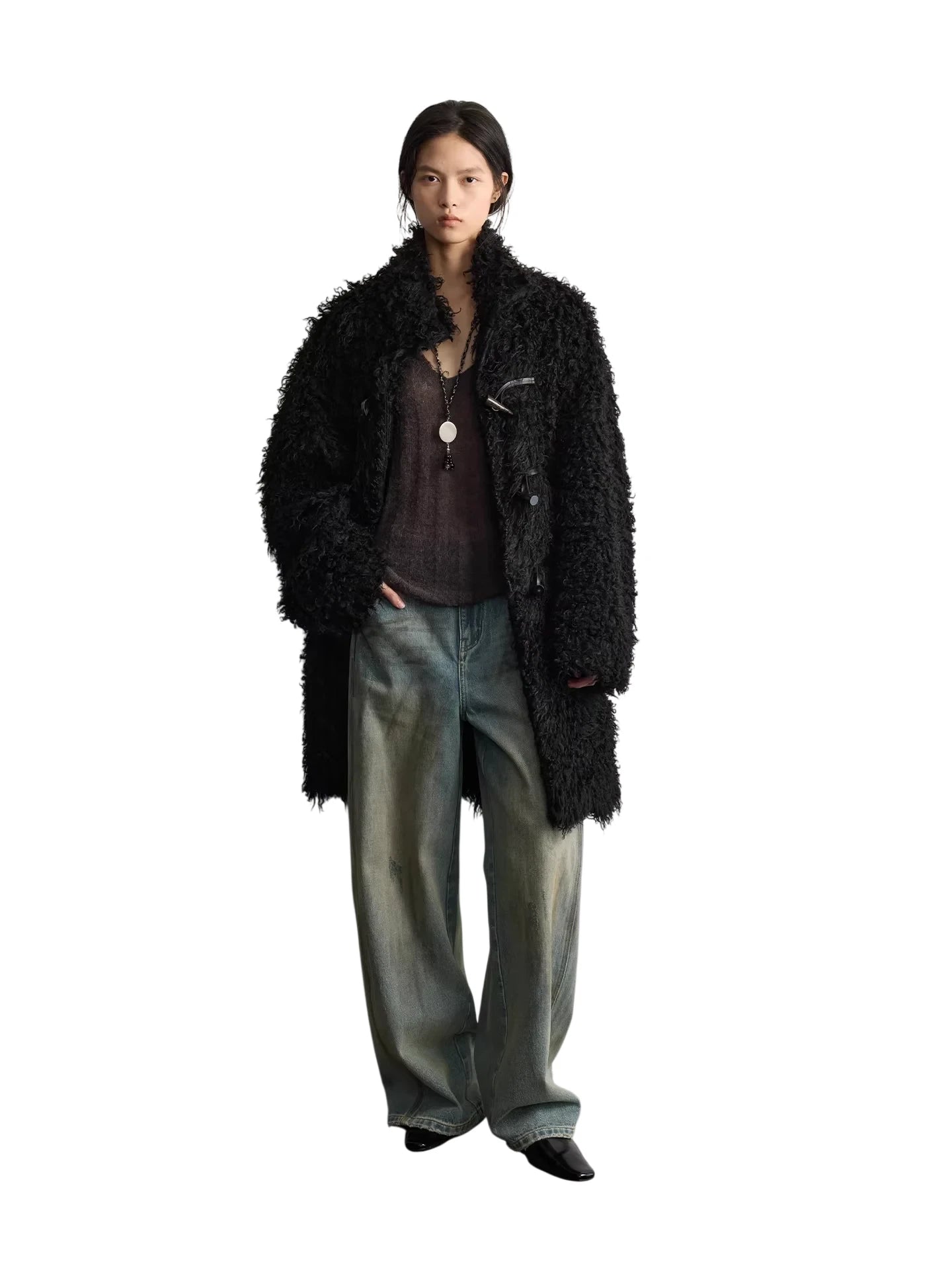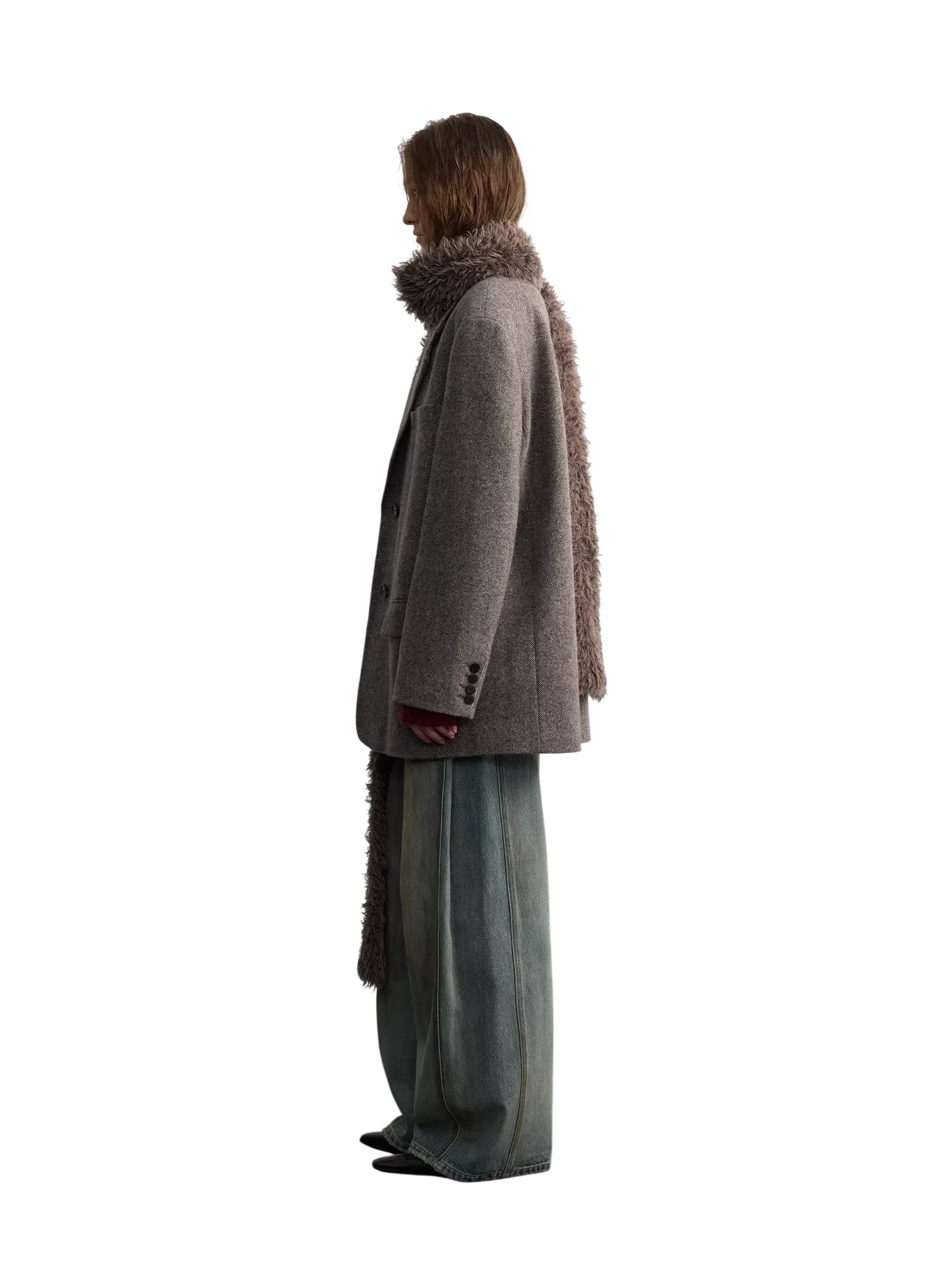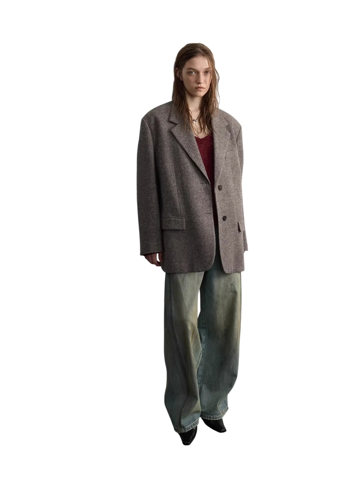 Elevate your casual wardrobe with these women's high-waisted wide-leg jeans, crafted from 100% cotton for breathable comfort and durability. Featuring a vintage-inspired distressed wash and prominent vertical seam detailing, these jeans offer a relaxed, structured fit that flatters with an elongated silhouette. The contrast stitching along the seams and pockets adds visual interest, while the slightly oversized cut drapes effortlessly over footwear. Perfect for creating a laid-back yet polished look.