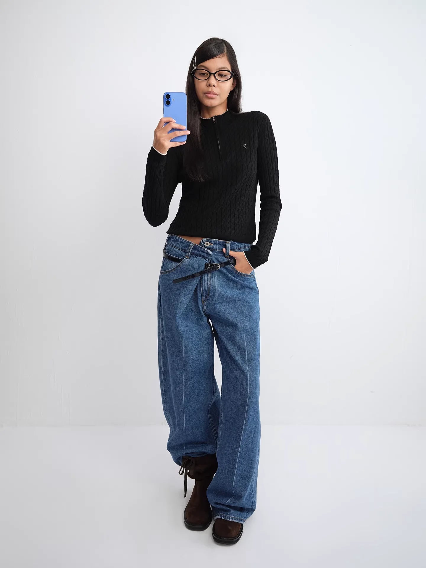 RARELY ALIKE Asymmetrical Waist Straight-Leg Jeans