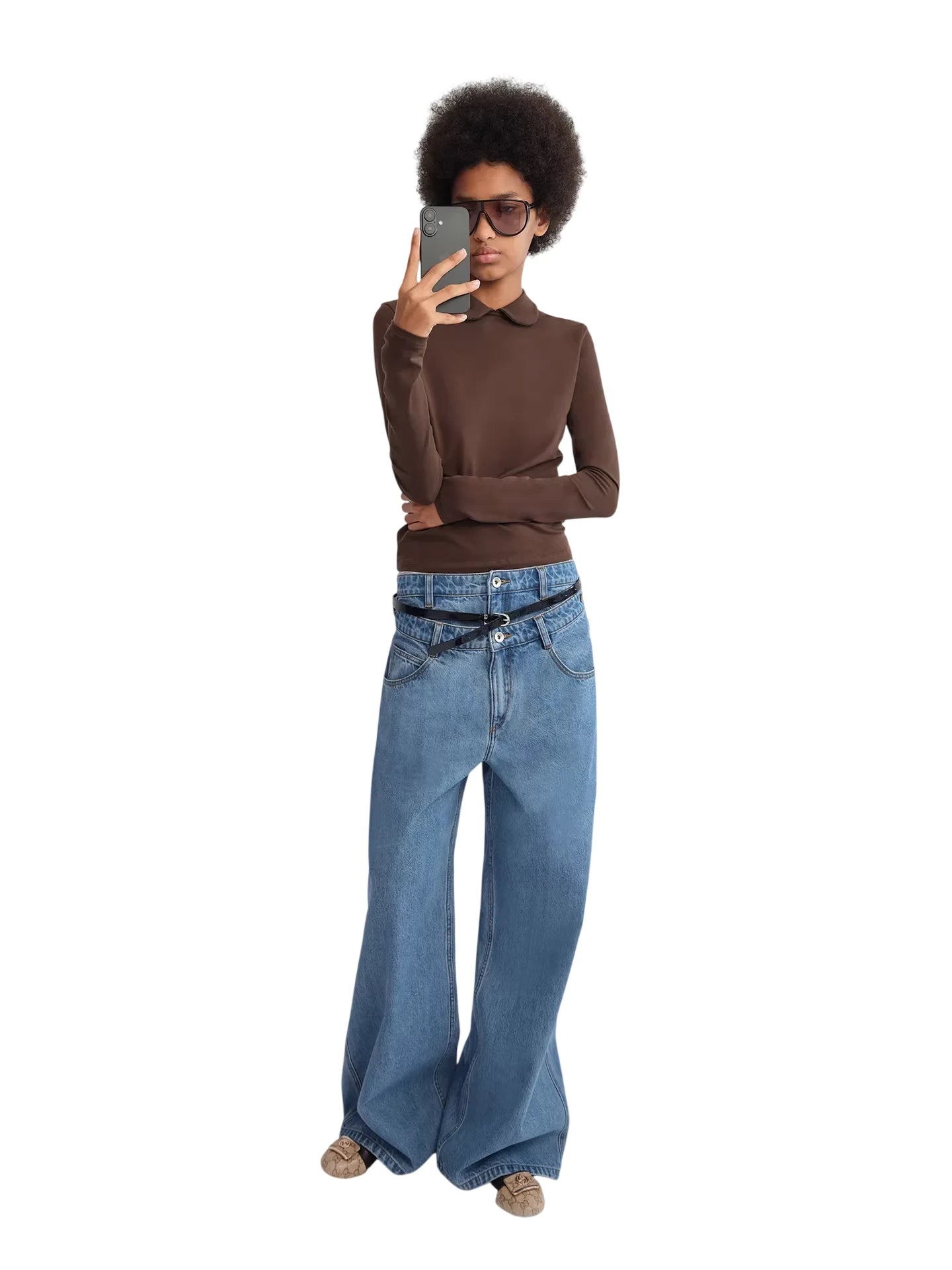 RARELY ALIKE Detachable Double Waist Wide Leg Jeans