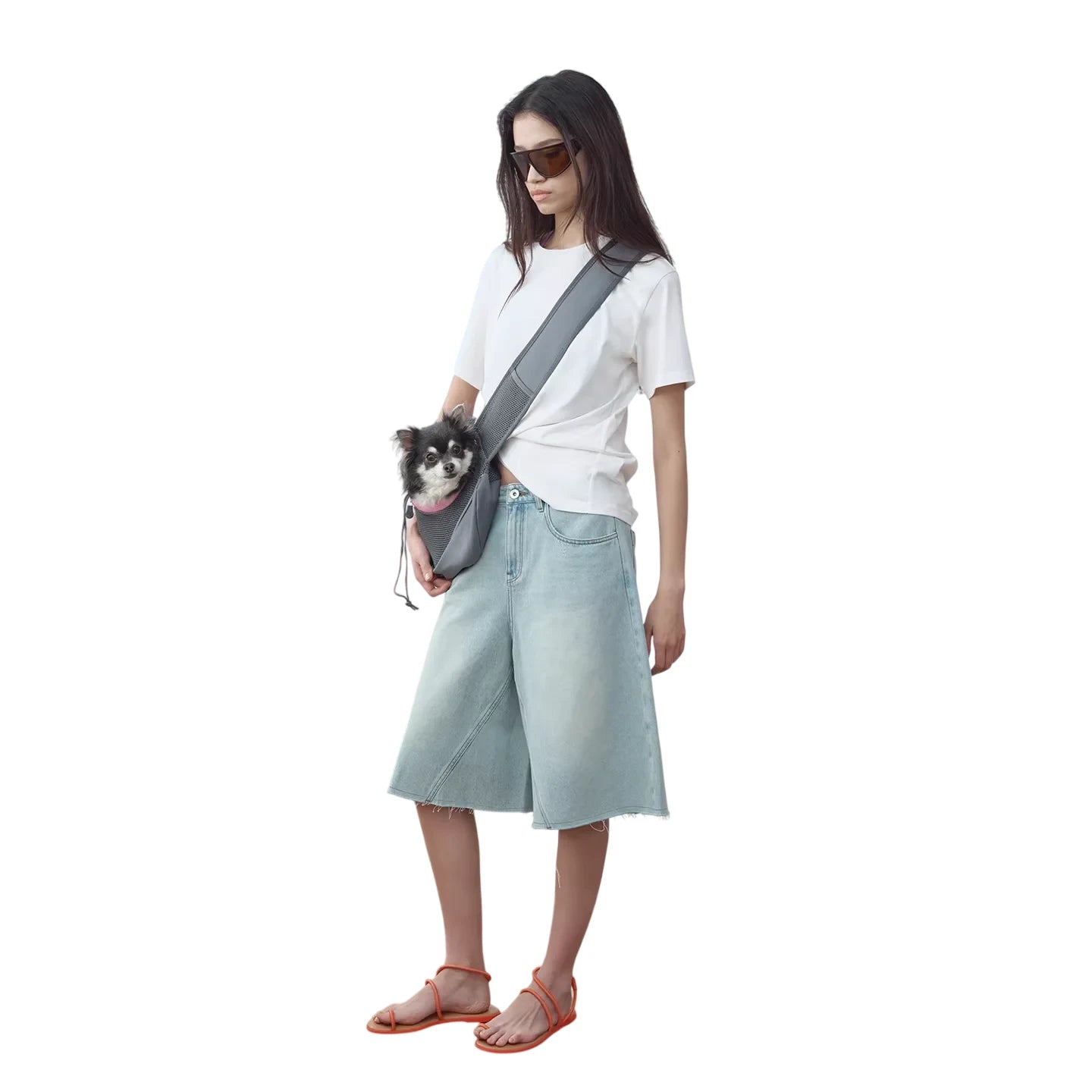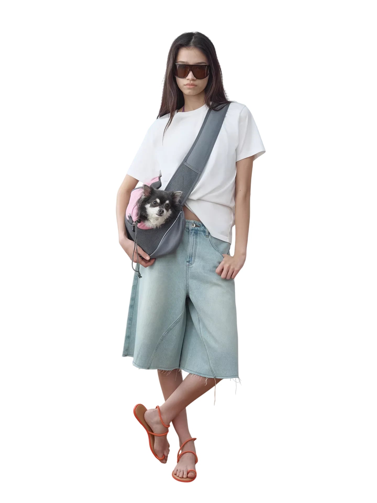 These light blue A-line denim capri shorts offer a relaxed and casual look, ideal for warm-weather wear. Designed with a flattering wide-leg silhouette, they feature knee-length cuts and raw hems for a touch of laid-back style. Perfect for everyday comfort, they pair easily with your favorite tees and sandals. Modeled by a female model, these shorts are a great addition to any casual wardrobe.