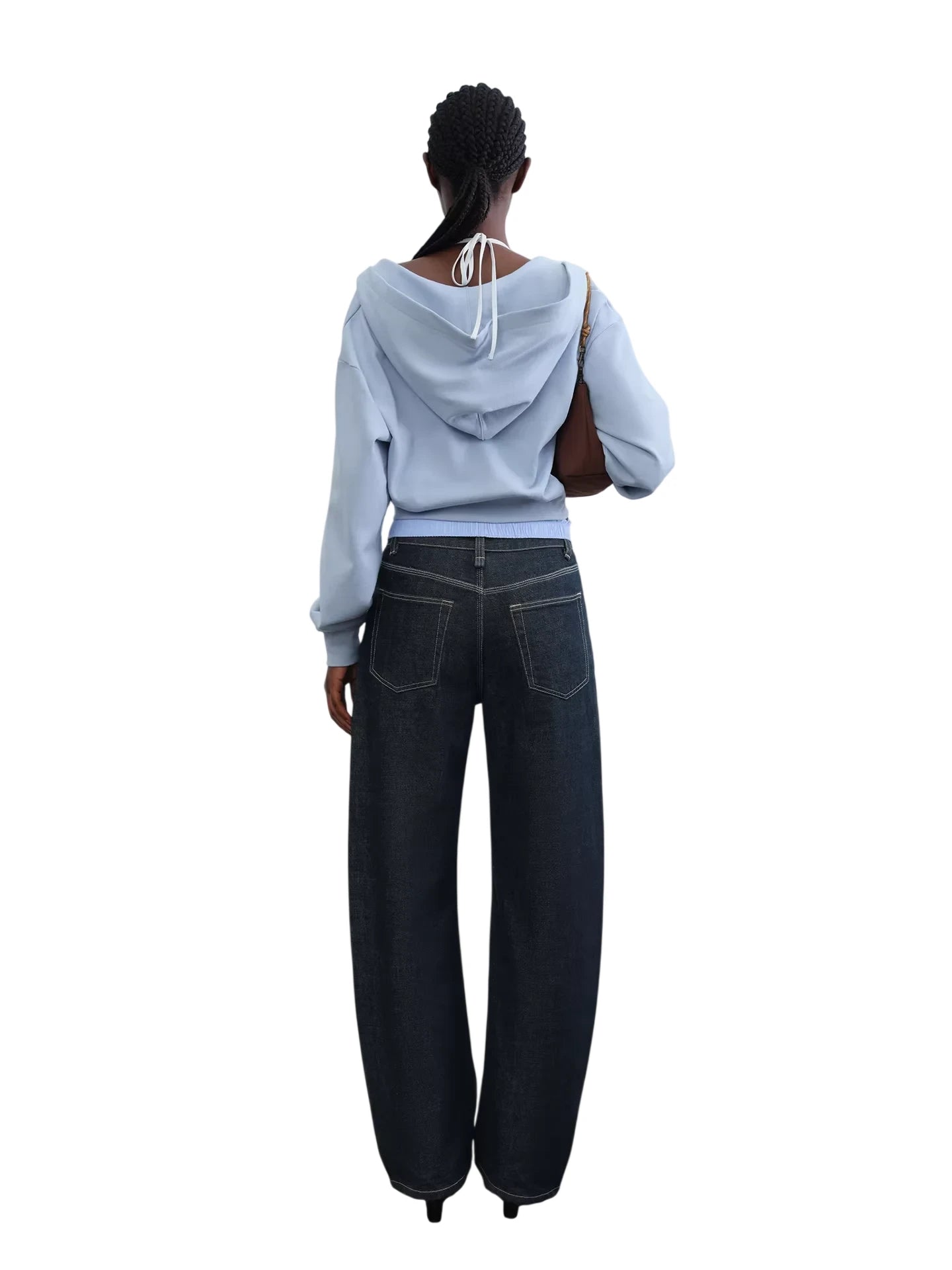 Elevate your streetwear style with these mid-rise raw denim jeans in a light blue wash. Designed with a relaxed, wide-leg silhouette, they offer a contemporary fit perfect for casual, everyday looks. Ideal for women who appreciate laid-back fashion with a modern twist, these jeans pair effortlessly with crop tops, shrugs, or wrap-style layers for versatile styling.