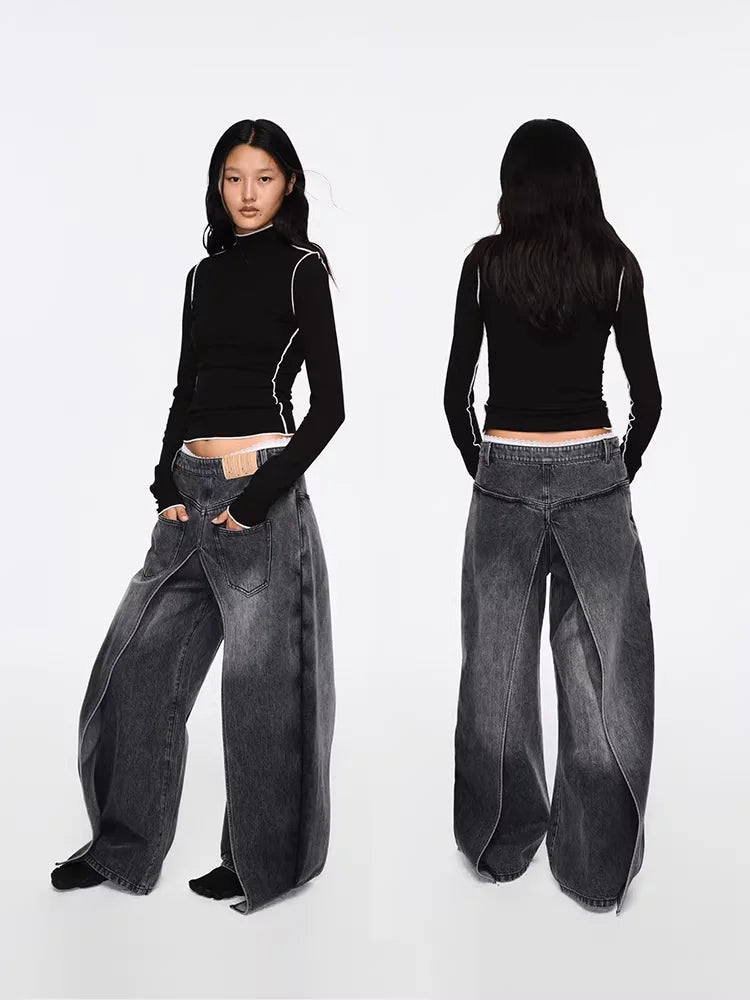 RARELY ALIKE Reversible Deconstructed Wide-Leg Denim Pants