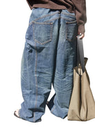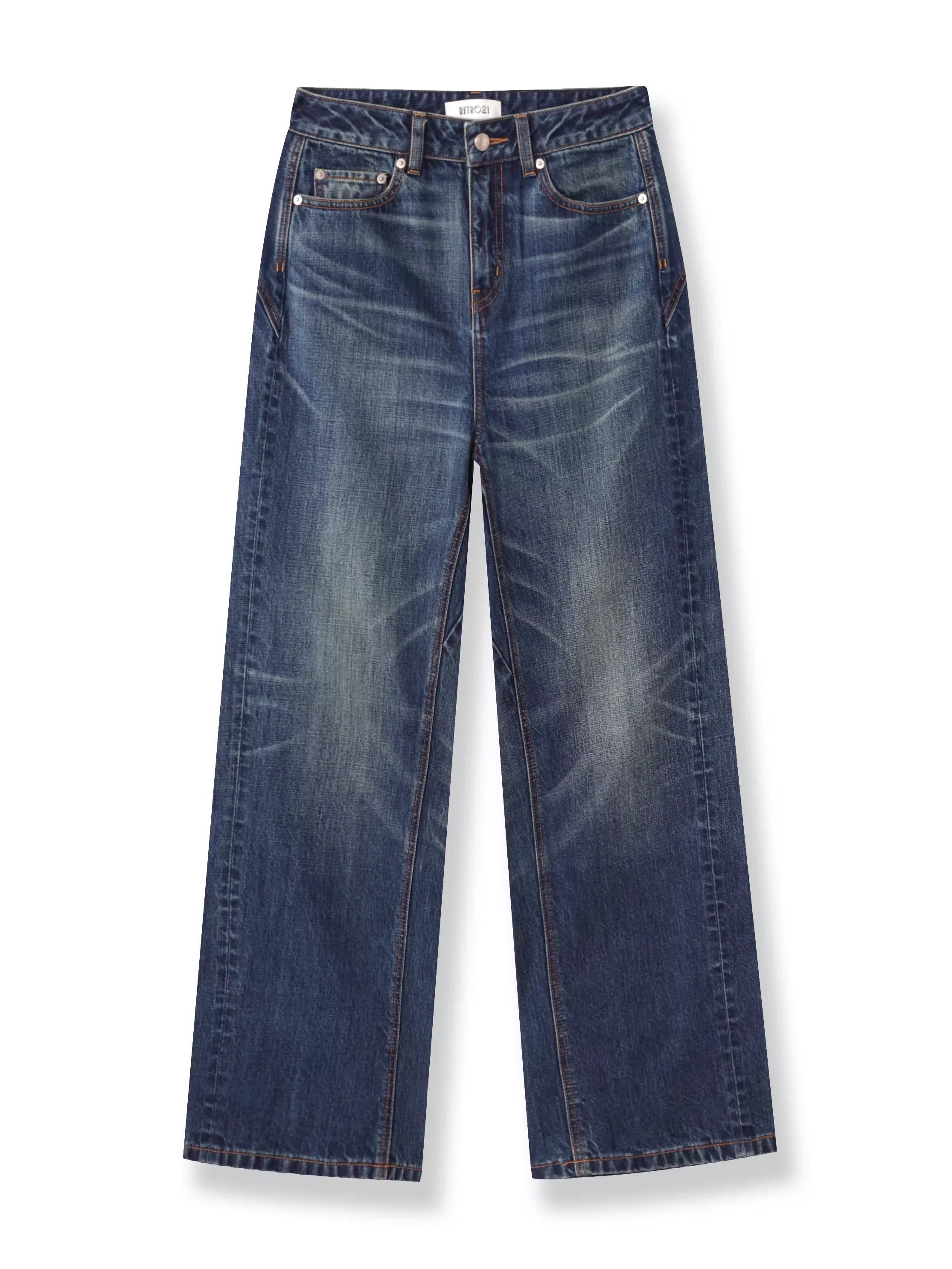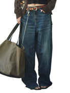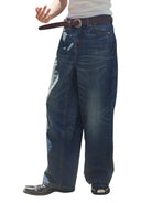 Retro 21 Dark Blue Wide-Leg Slub Denim Jeans