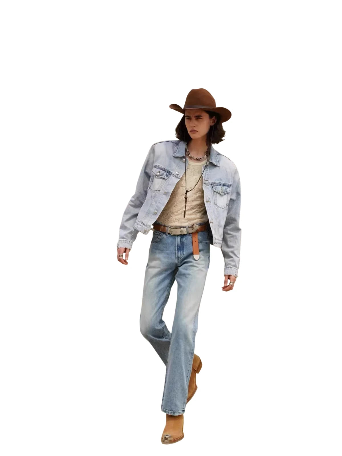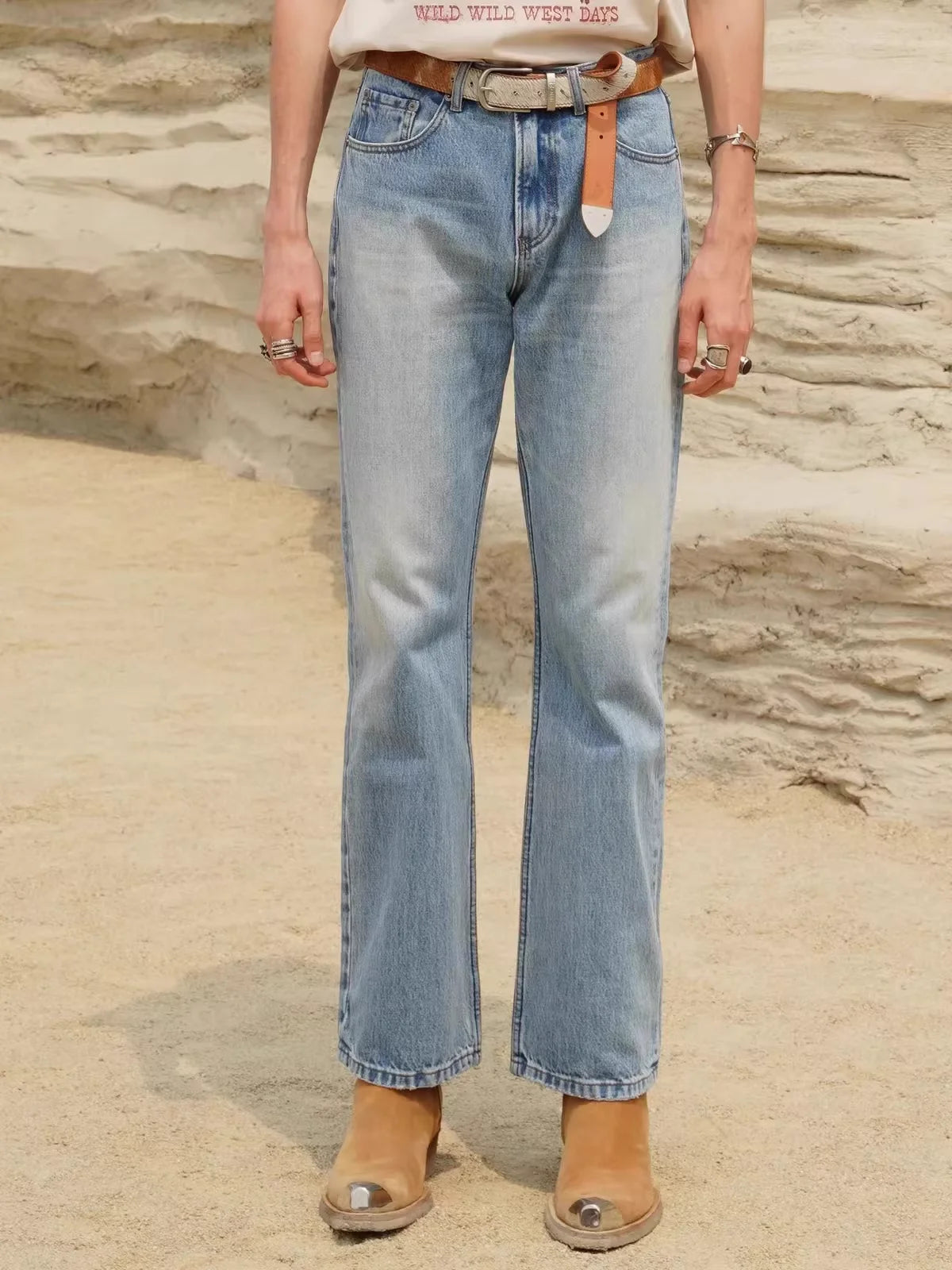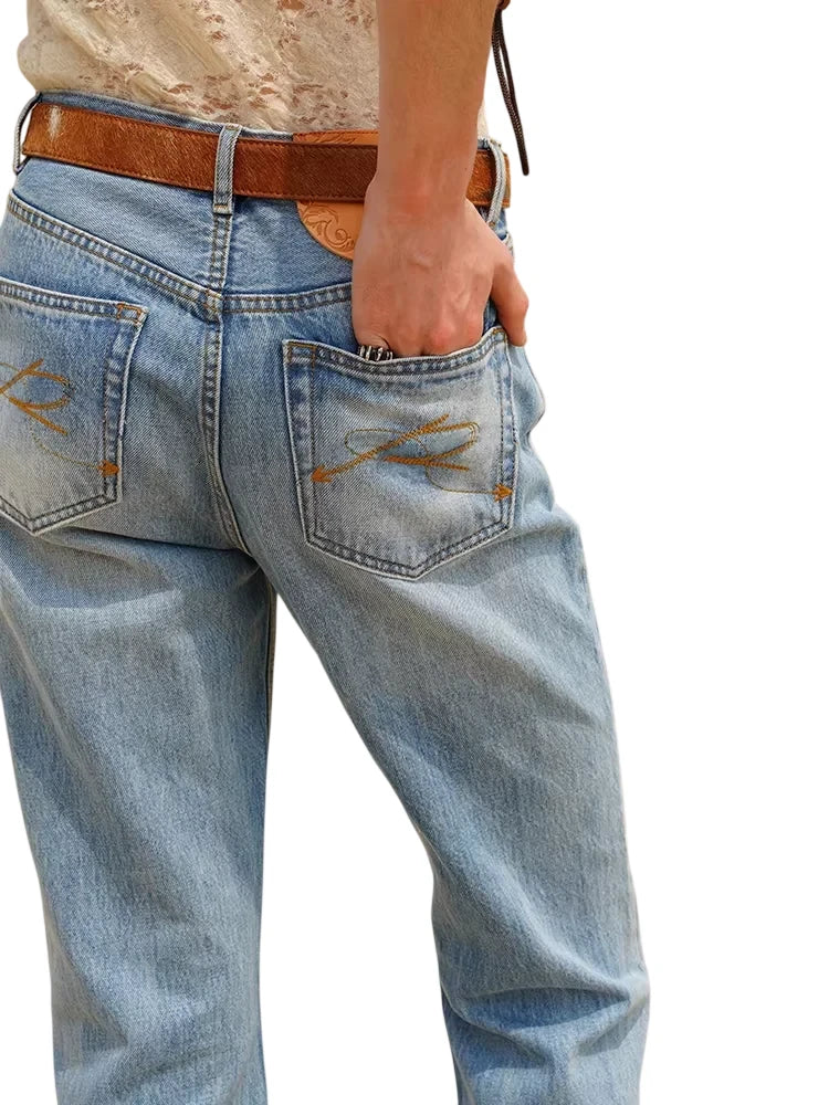 Perfectly paired with western-inspired accessories like a cowhide belt and suede boots, these jeans are ideal for casual outdoor settings or stylish everyday wear.