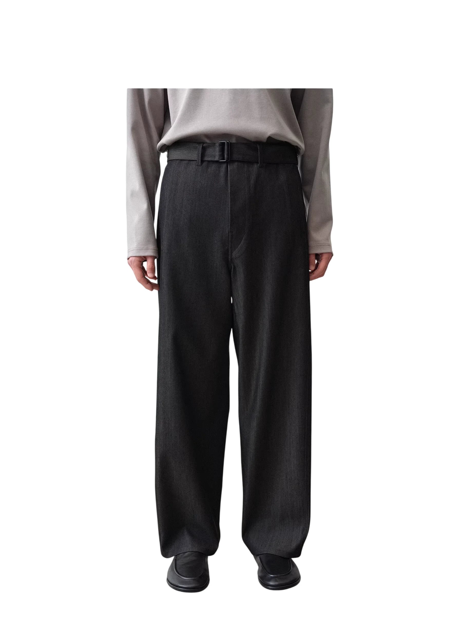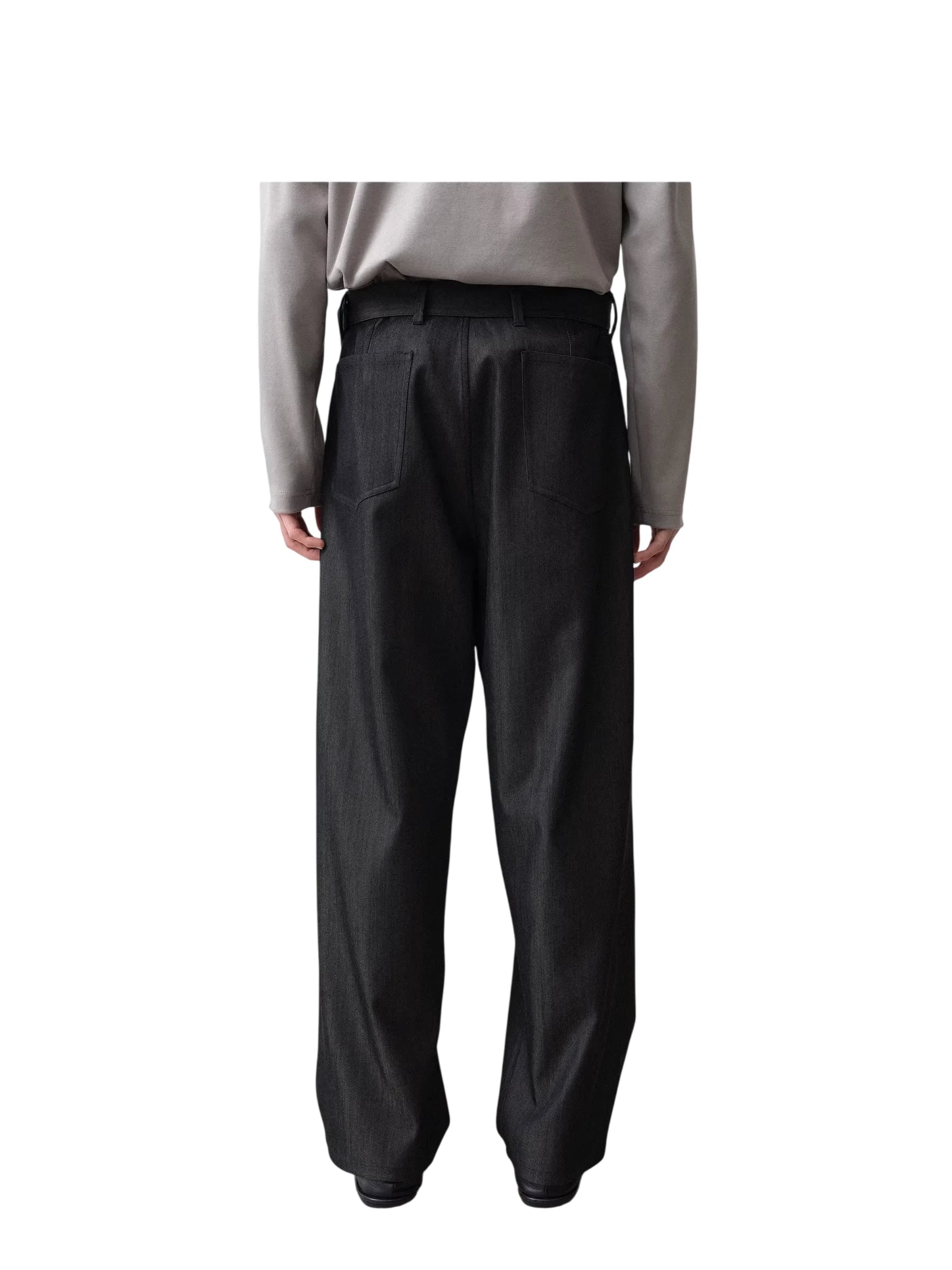 ROYA Men's High-Waisted Wool Denim Belted Trousers