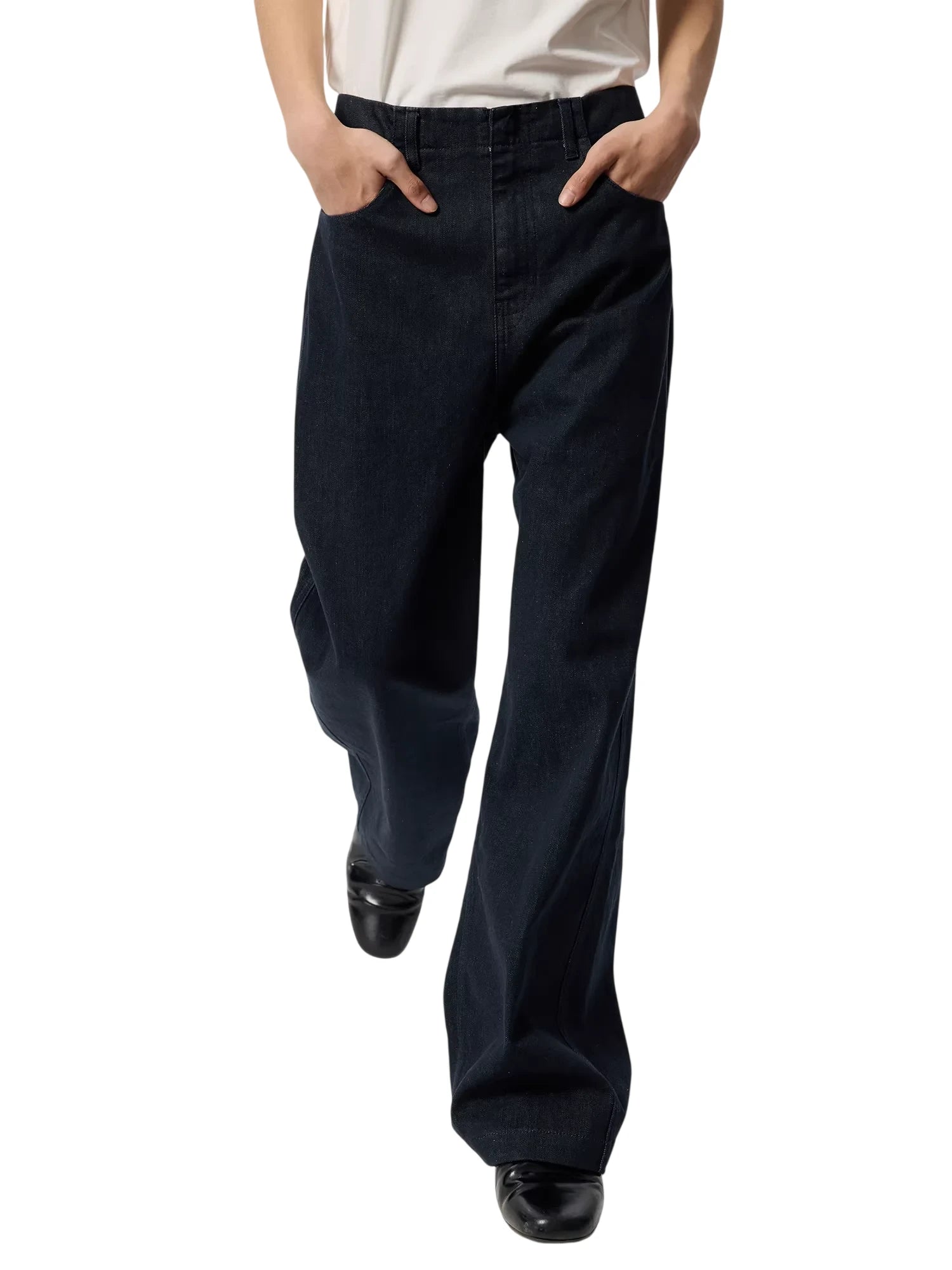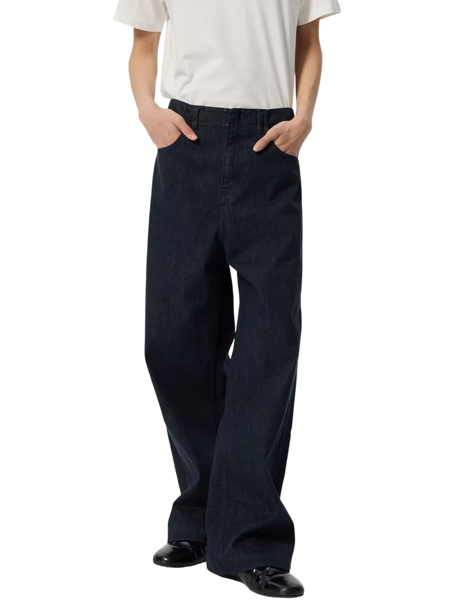Simple Project Men's High-Waisted Wide-Leg Selvedge Jeans - Deep Indigo