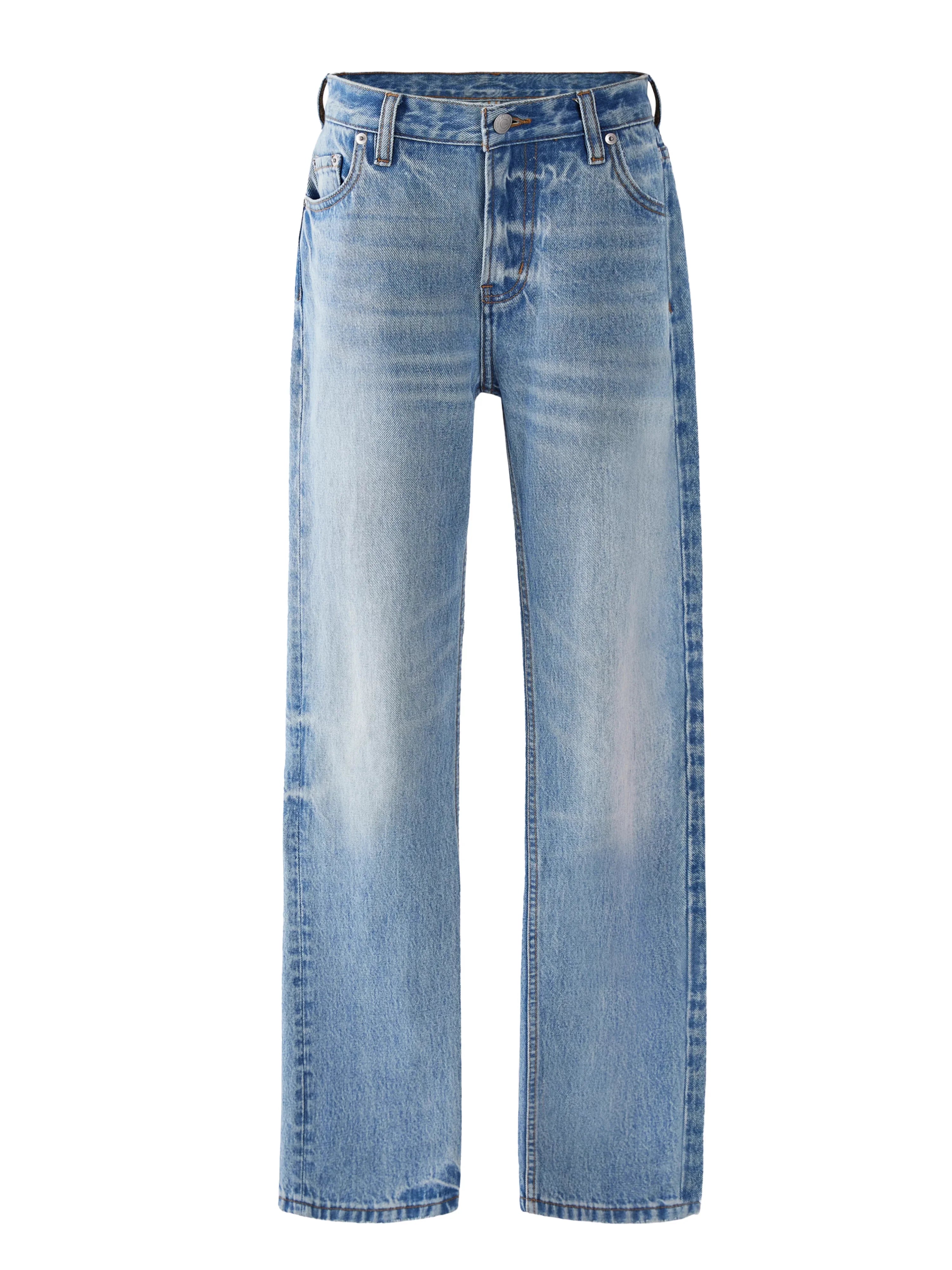 VLABMADE Fringed Washed Ice Blue Straight-Leg Jeans