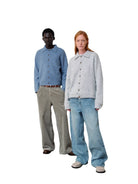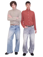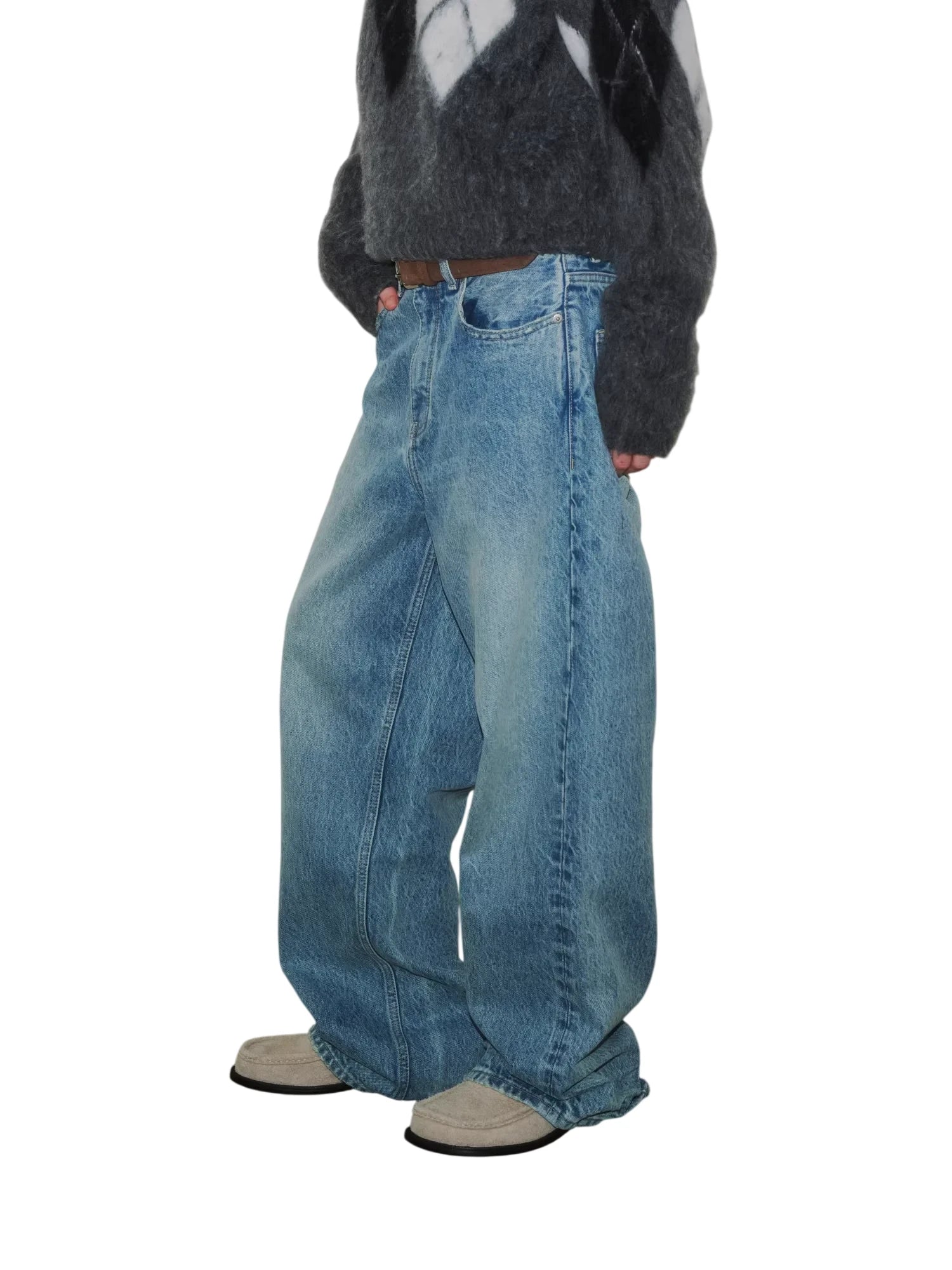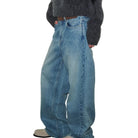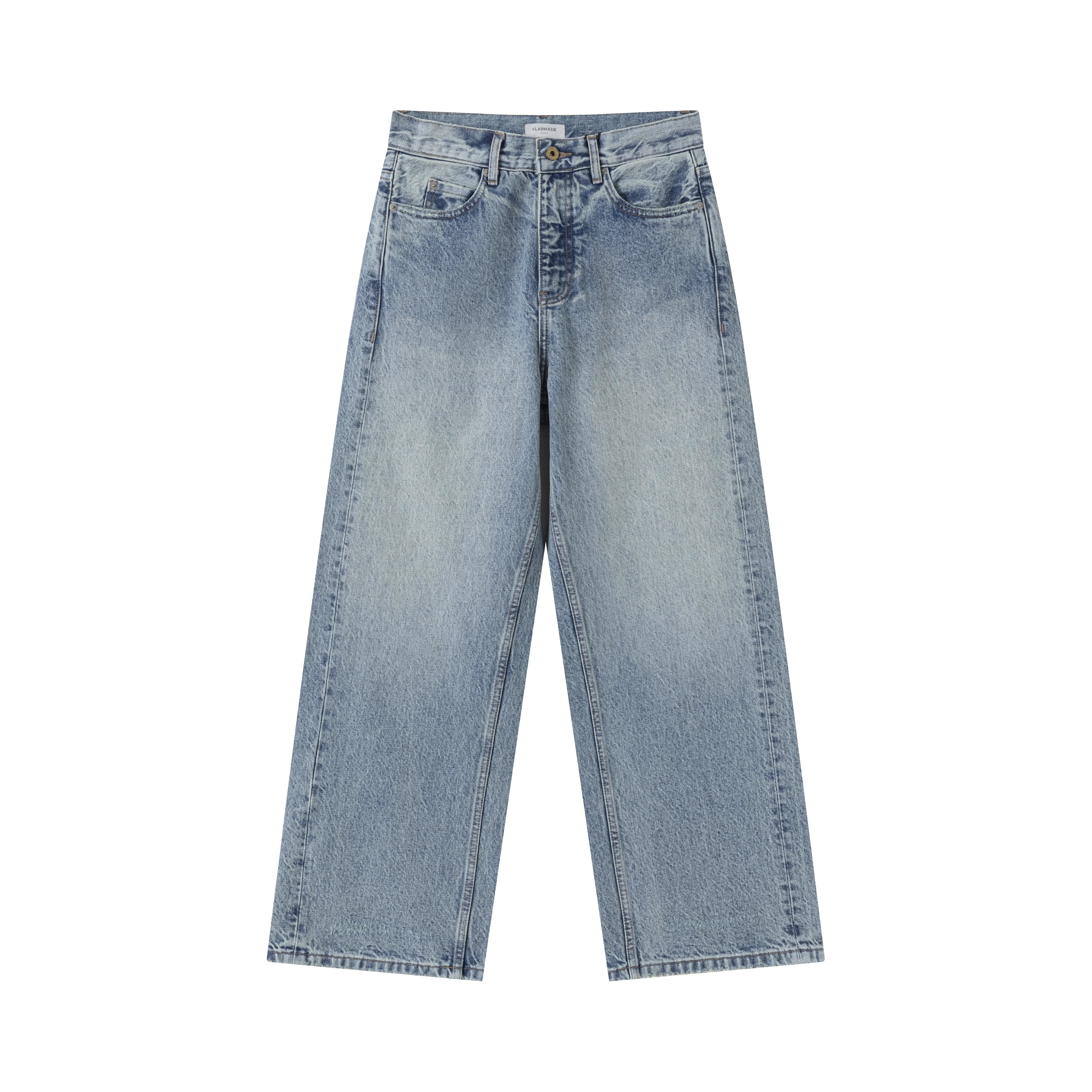 Elevate your casual wardrobe with these women's light blue high-waisted jeans. Featuring a relaxed, wide-leg silhouette and a snow-washed finish, these jeans offer a vintage-inspired look with subtle fading and creasing for a lived-in feel. Detailed with classic five-pocket styling and silver rivet accents, they blend timeless design with modern comfort. Perfect for effortless everyday styling.