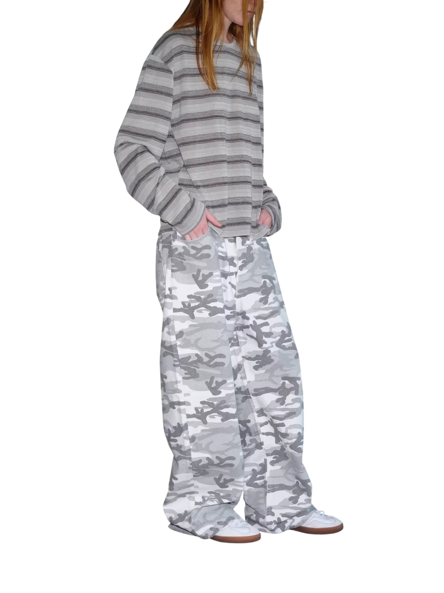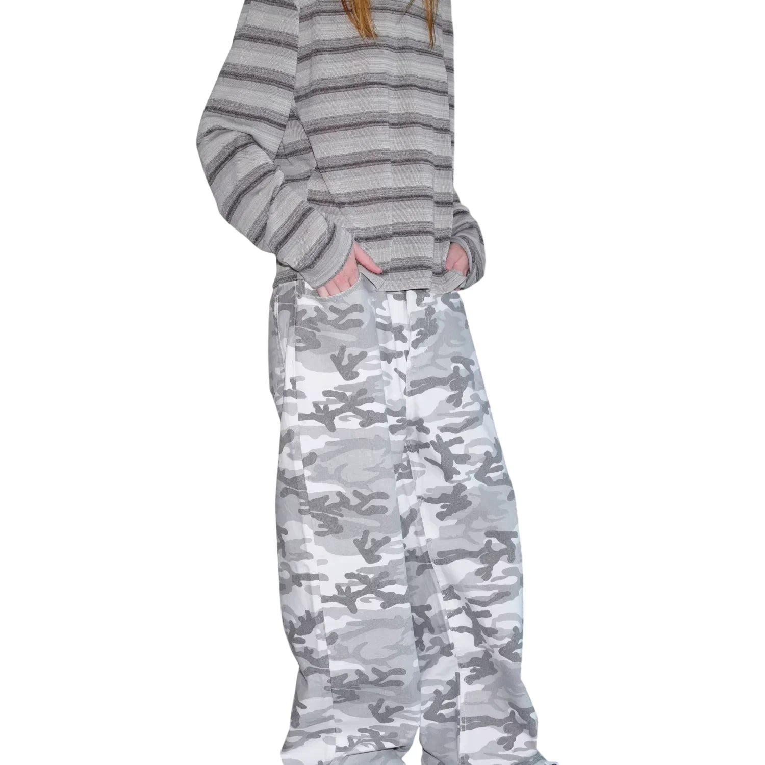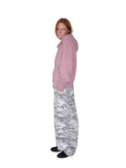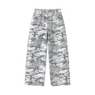 These relaxed fit denim pants offer a bold streetwear aesthetic with an eye-catching snow camouflage pattern in shades of white, grey, and beige. Designed with a frosted washed and distressed finish, the baggy silhouette delivers comfort and effortless style. Ideal for casual wear, these pants feature side pockets for added practicality, making them a versatile addition to any wardrobe.