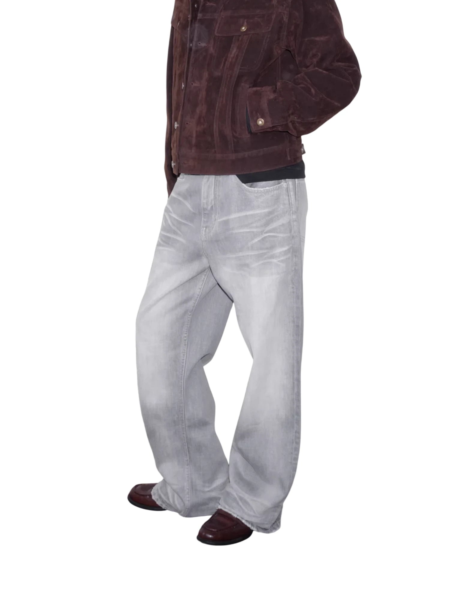 VLABMADE Vintage Washed Distressed Straight Leg Denim Jeans