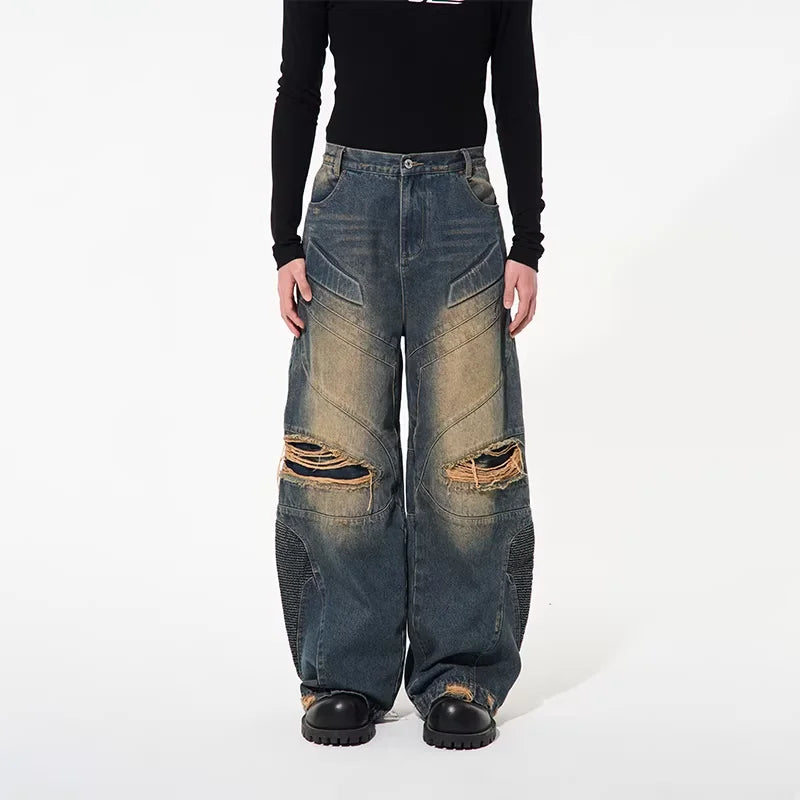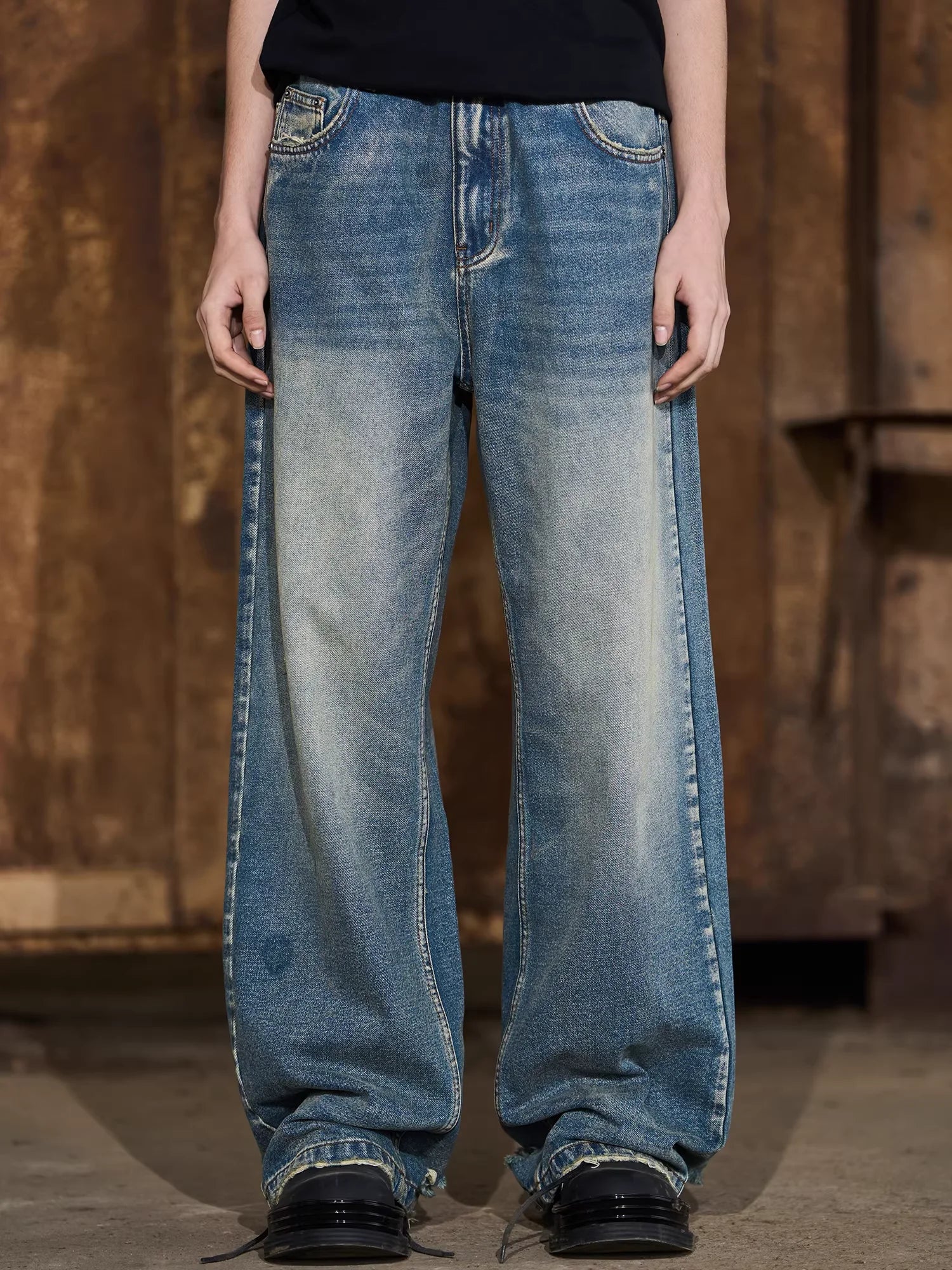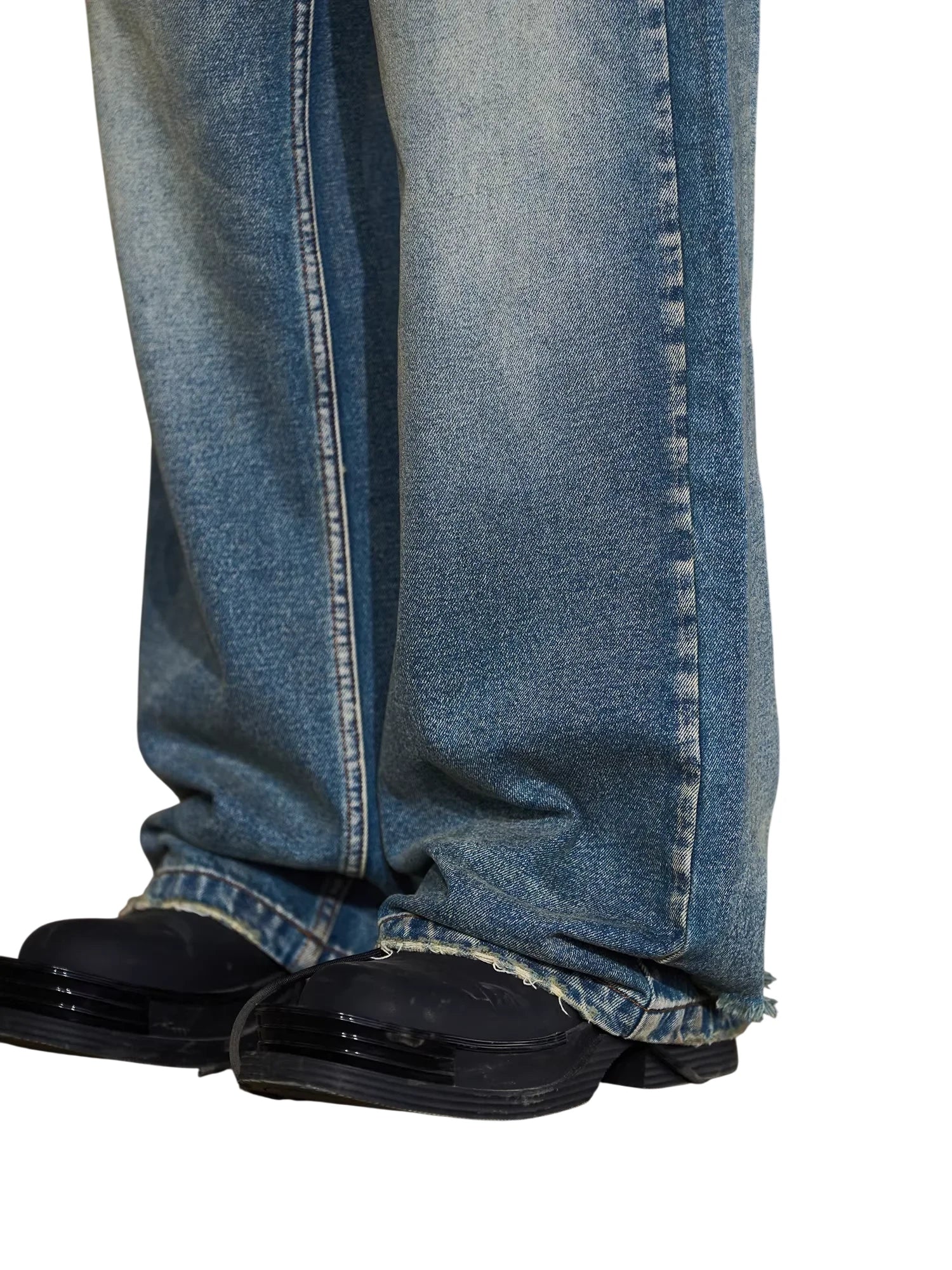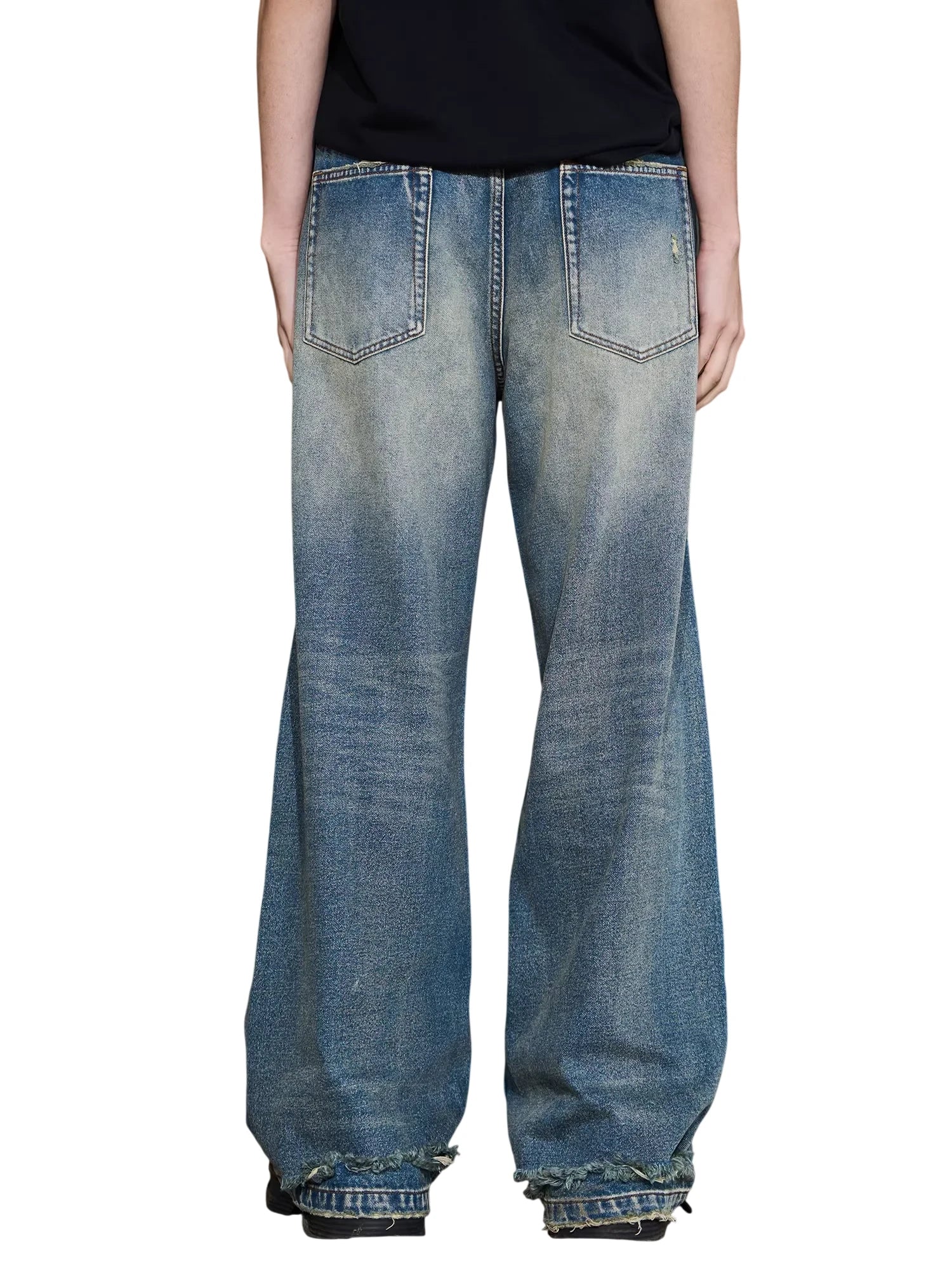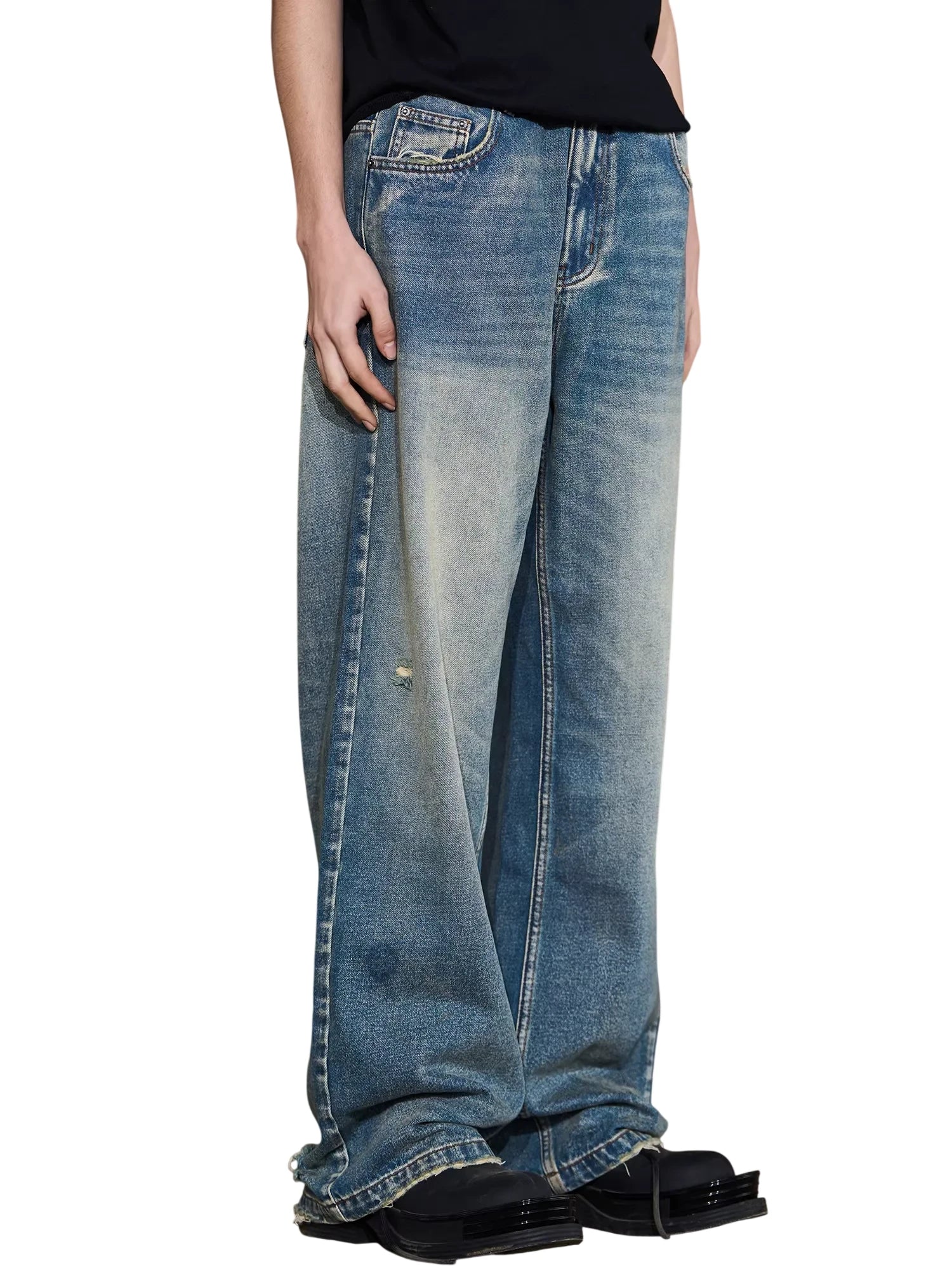 NANS Menswear Distressed Straight-Leg Denim Jeans with Whisker Wash