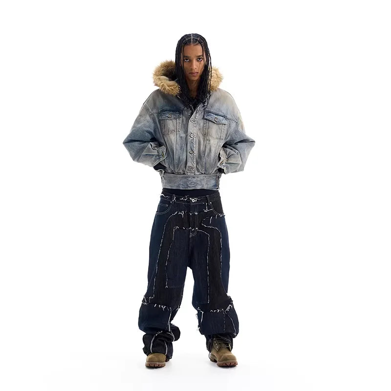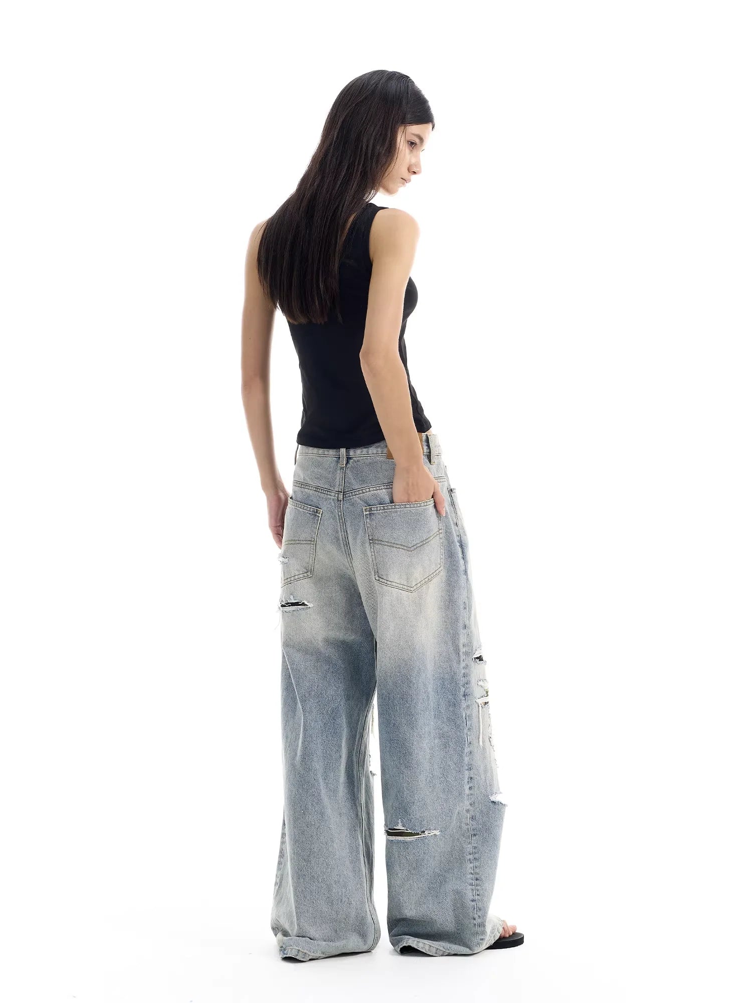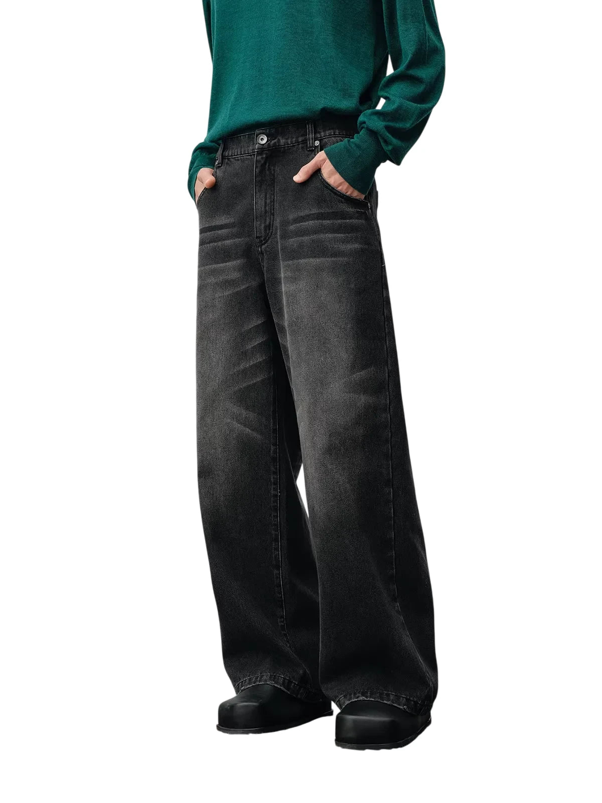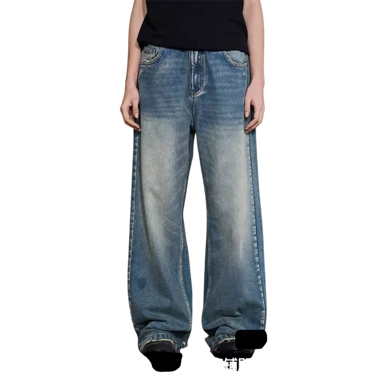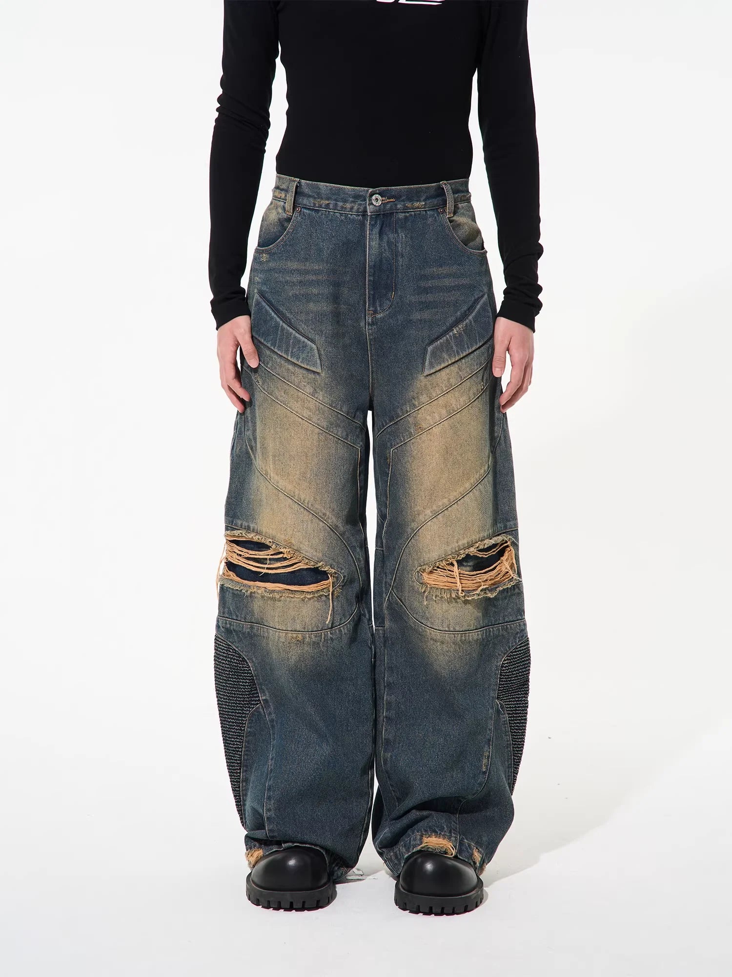 NANS Menswear Distressed Straight-Leg Denim Jeans with Whisker Wash