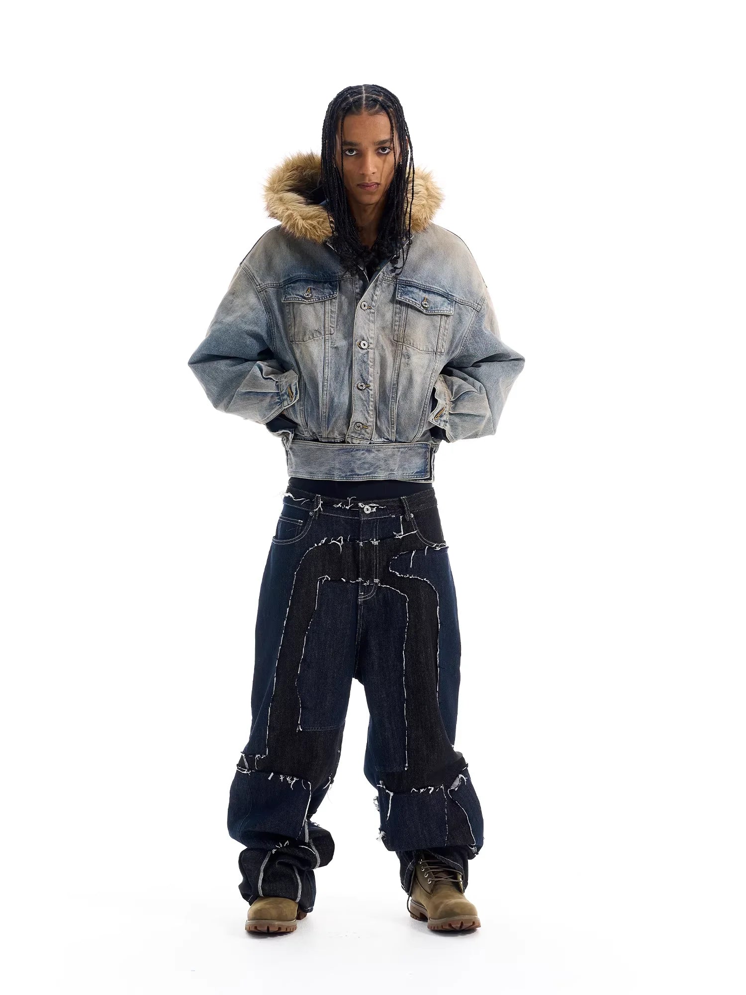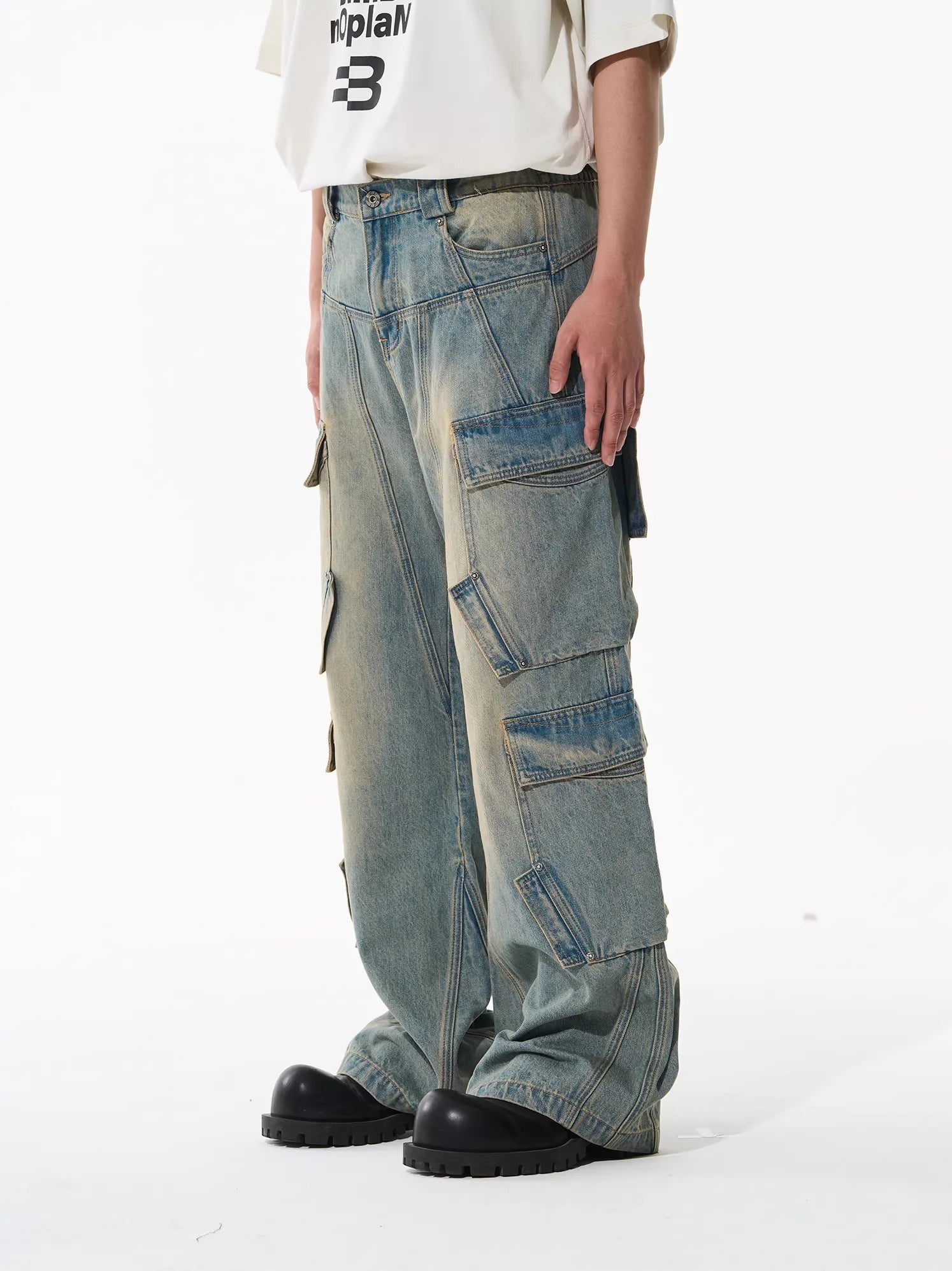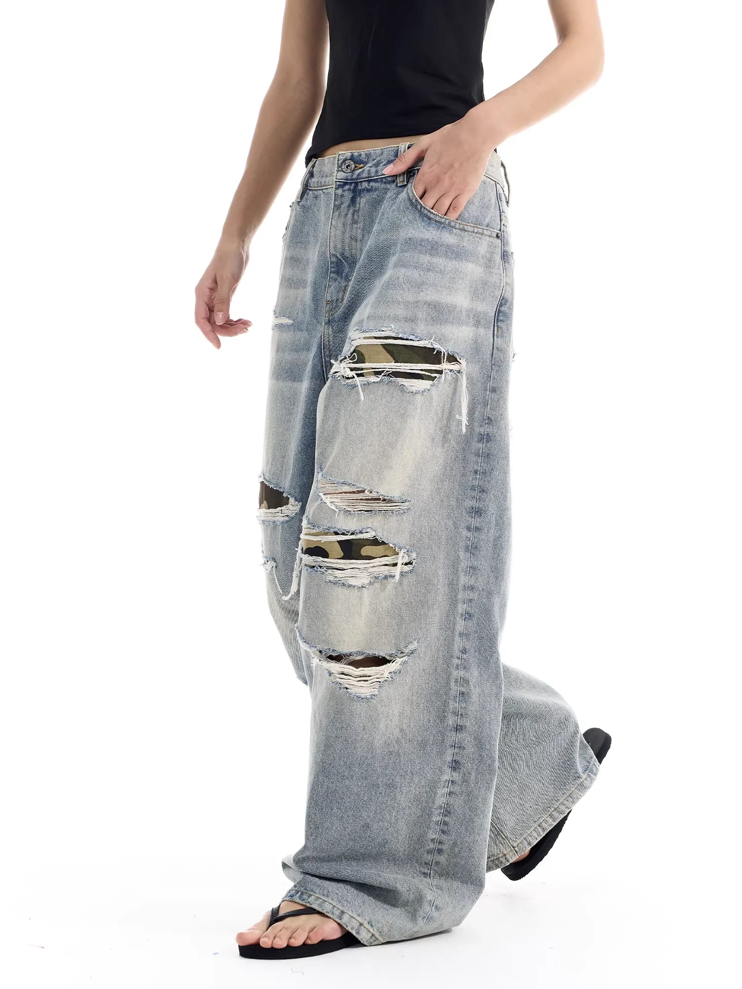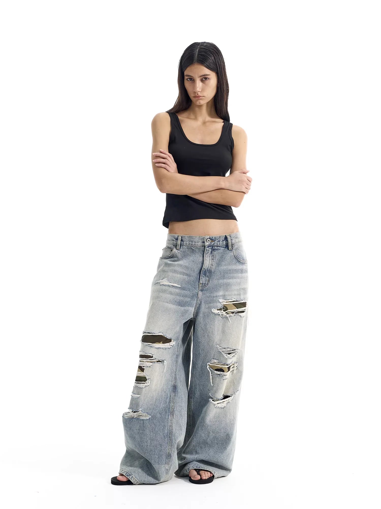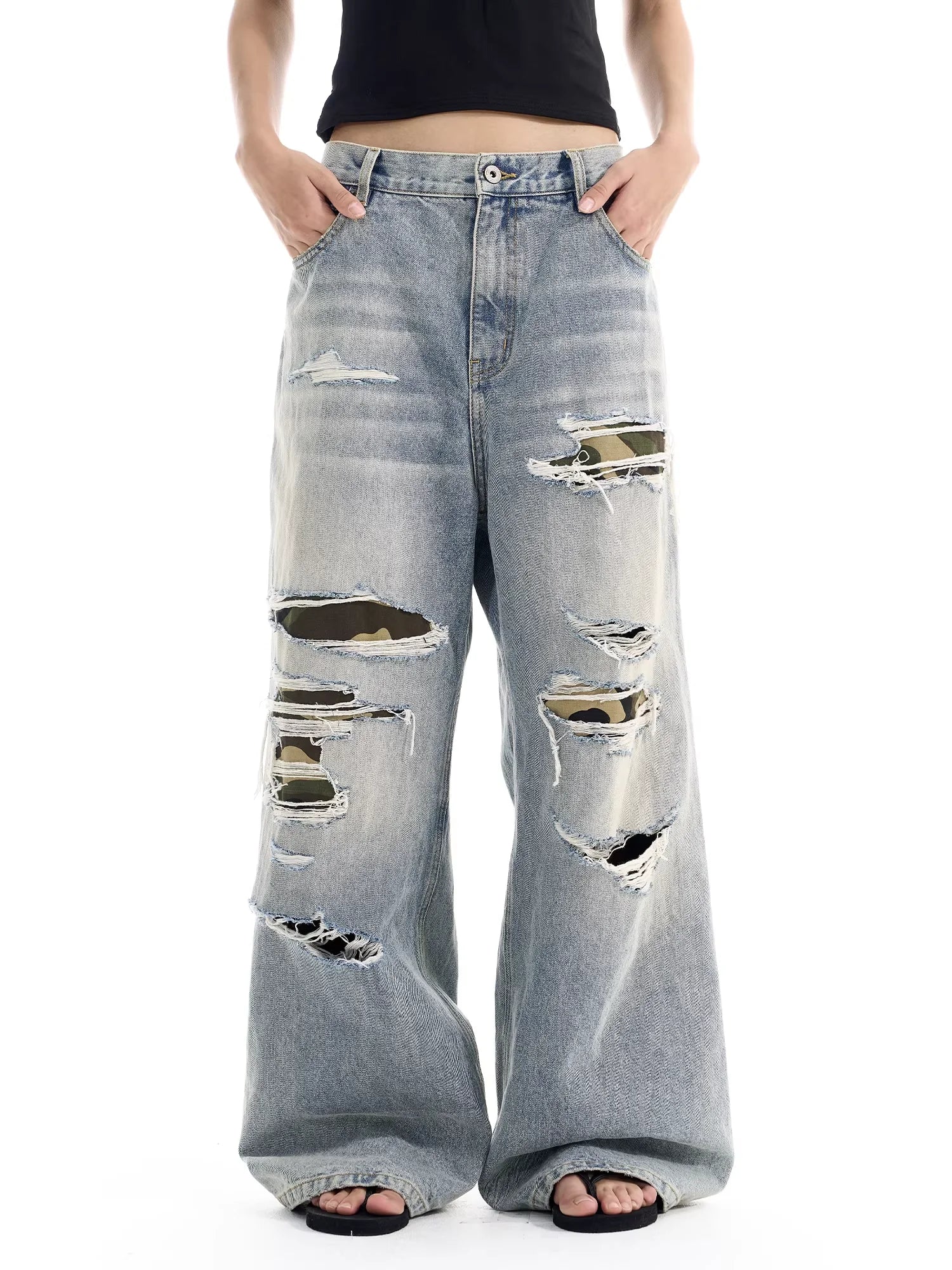 NANS Menswear Distressed Straight-Leg Denim Jeans with Whisker Wash