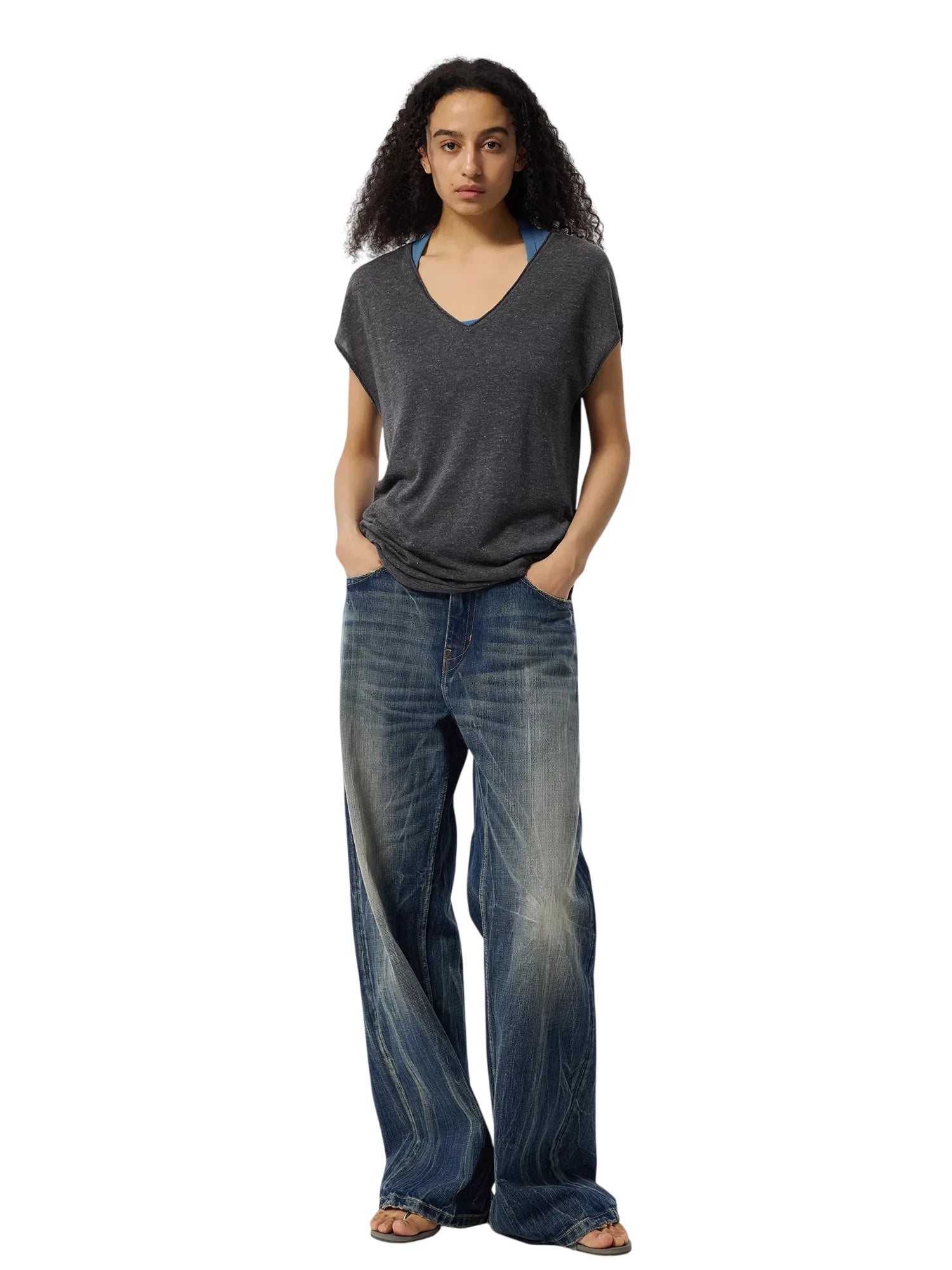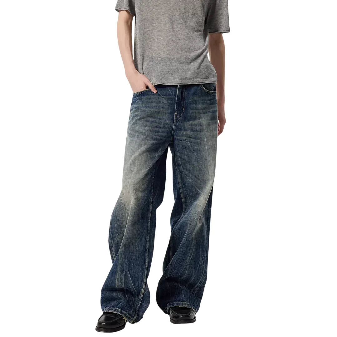 ROYA Vintage Washed Wide-Leg Straight Jeans