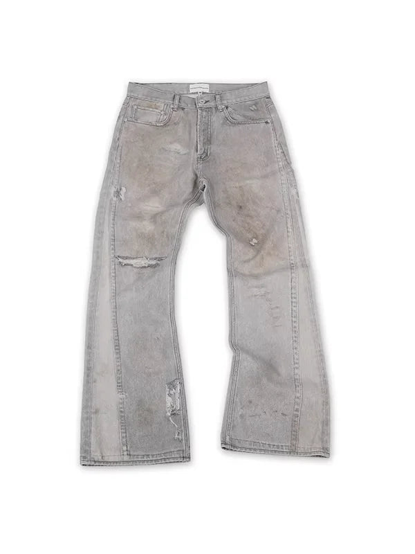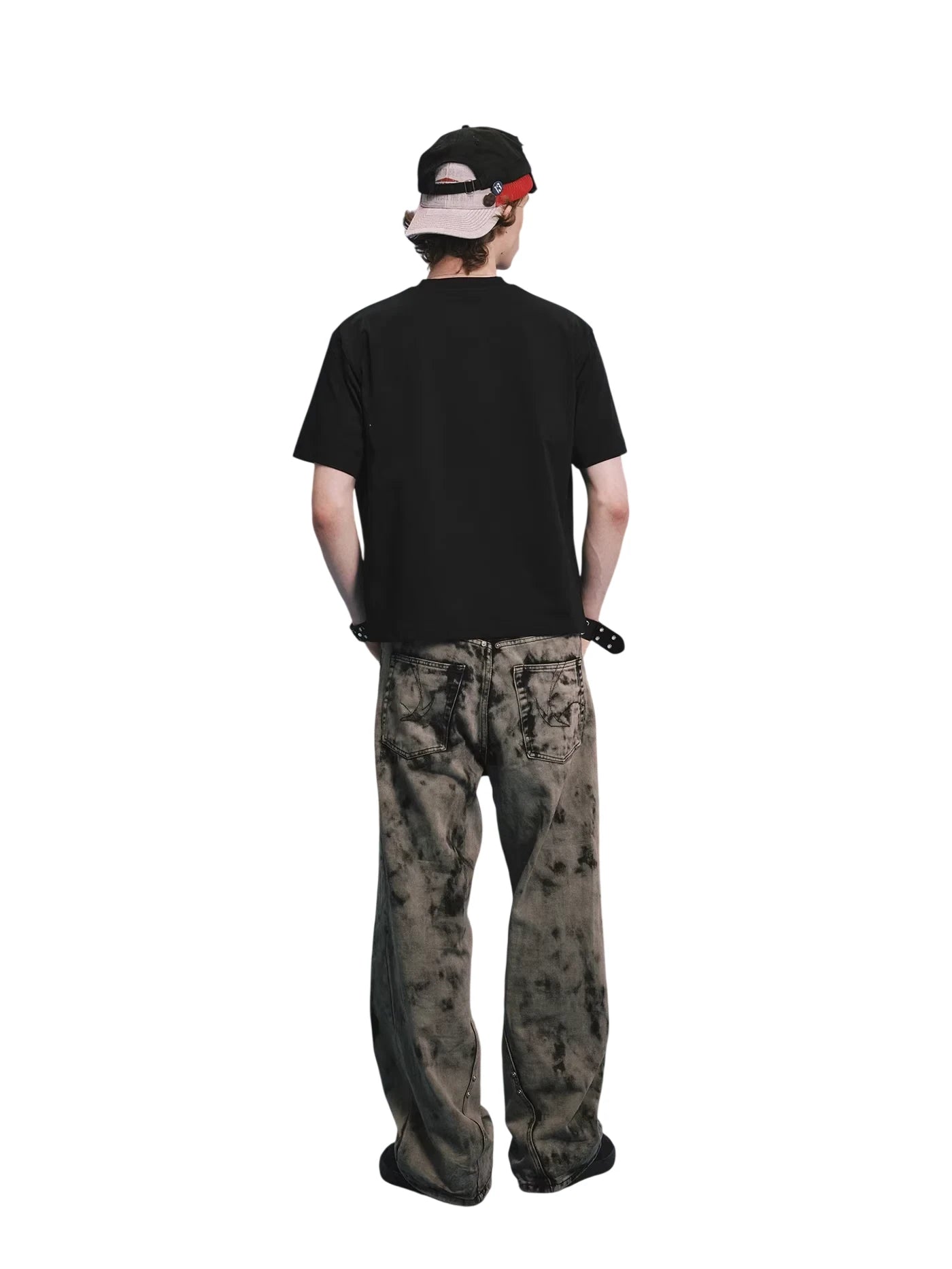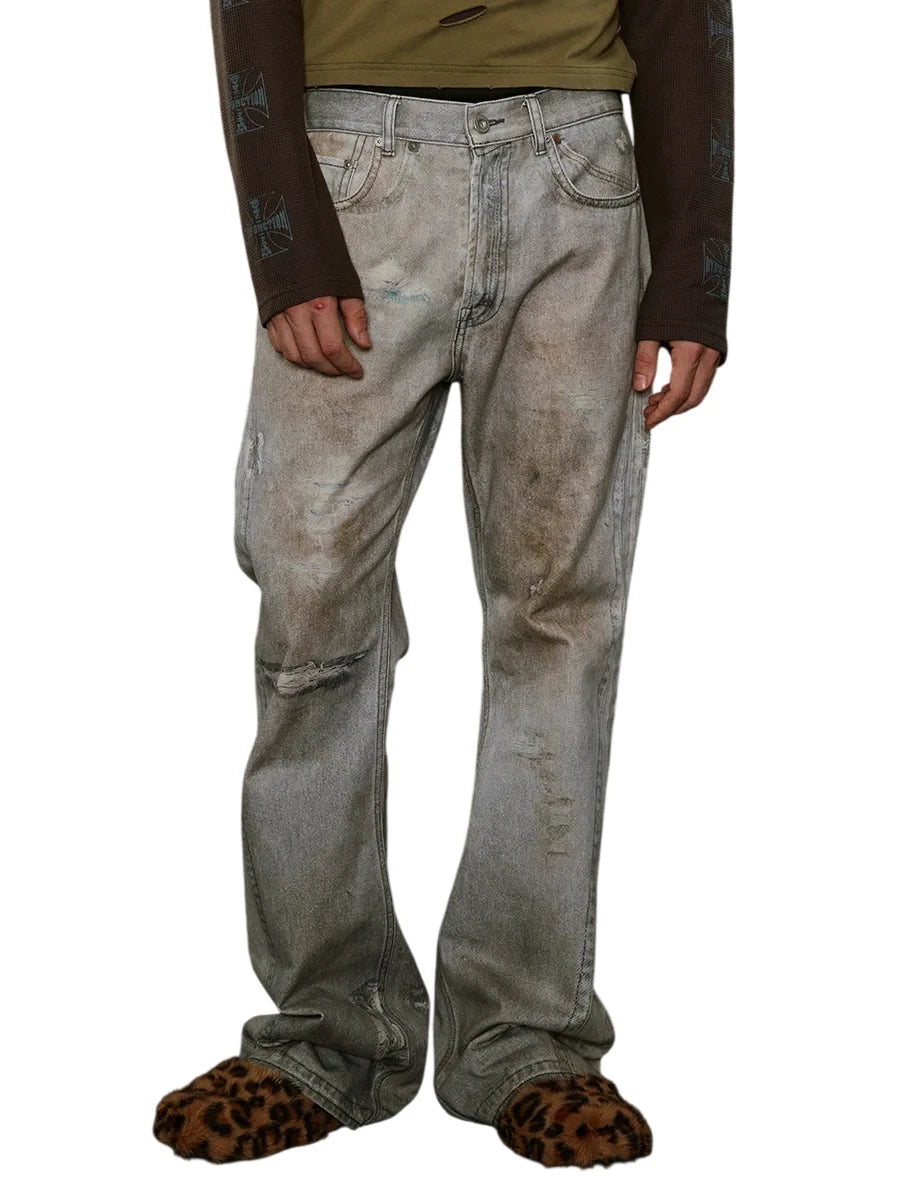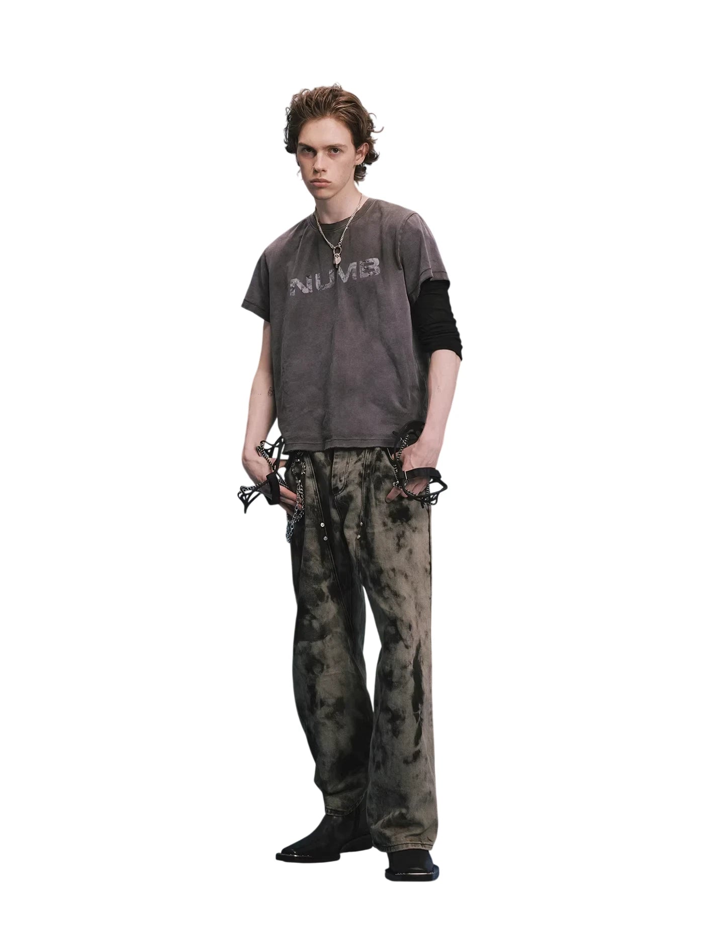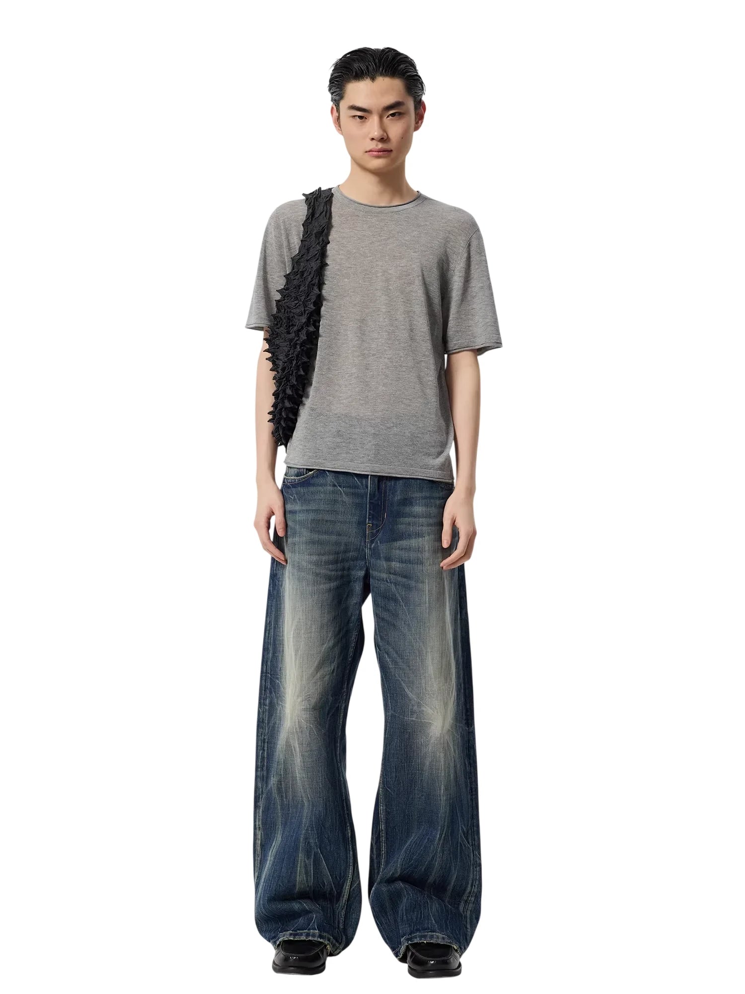 Simple Project Men's Wide-Leg Lightning Wash Distressed Jeans