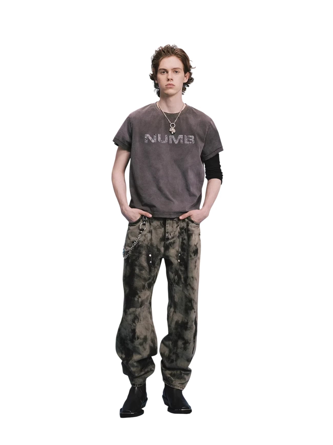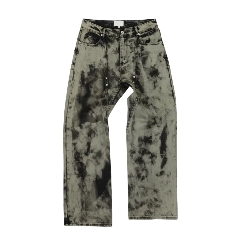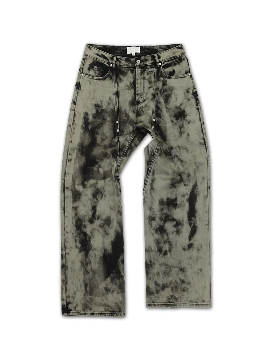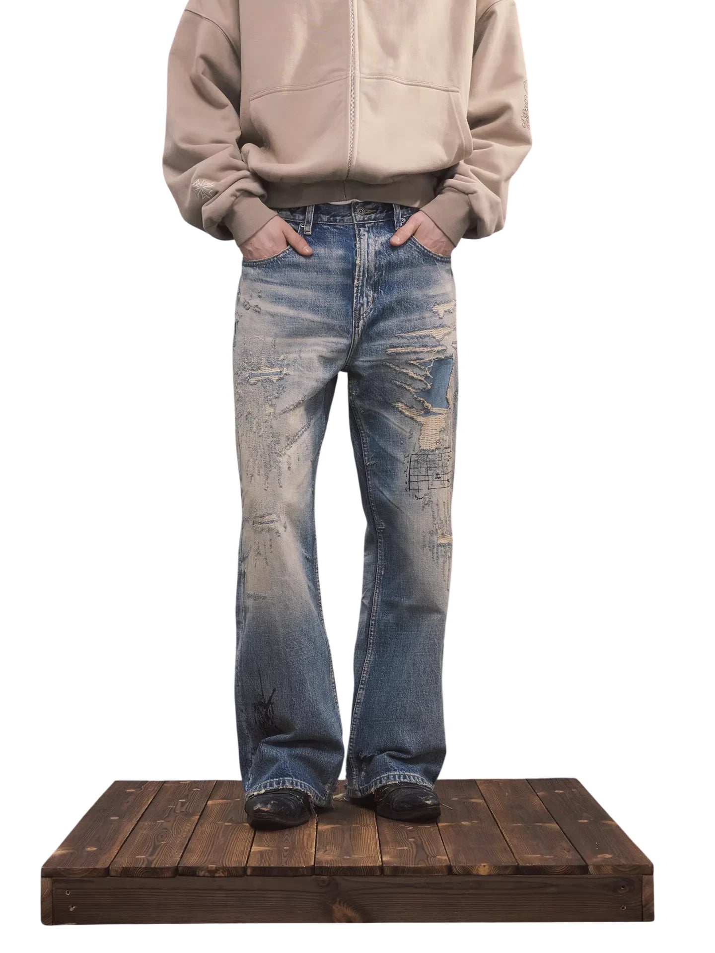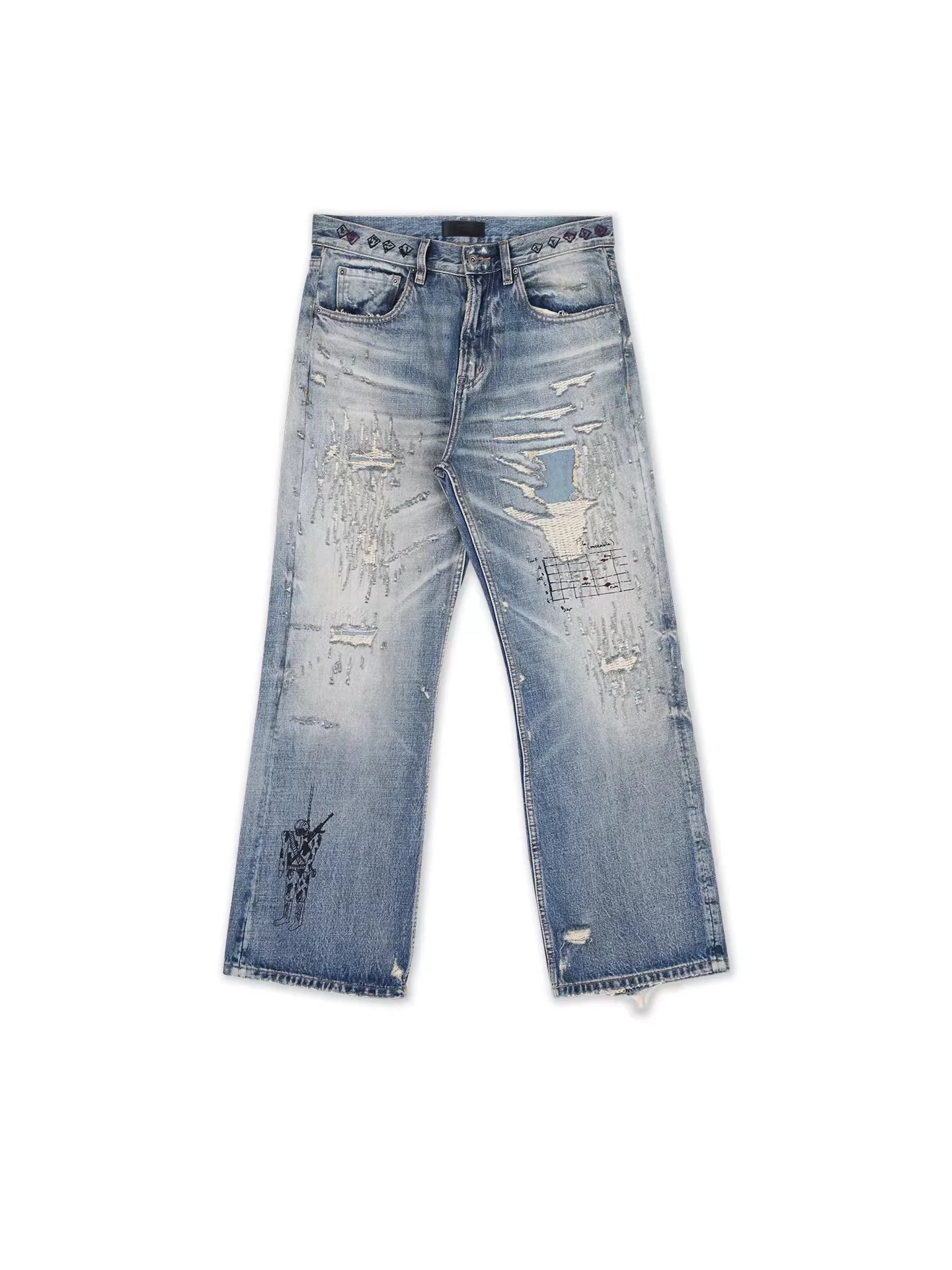 Simple Project Men's Wide-Leg Lightning Wash Distressed Jeans