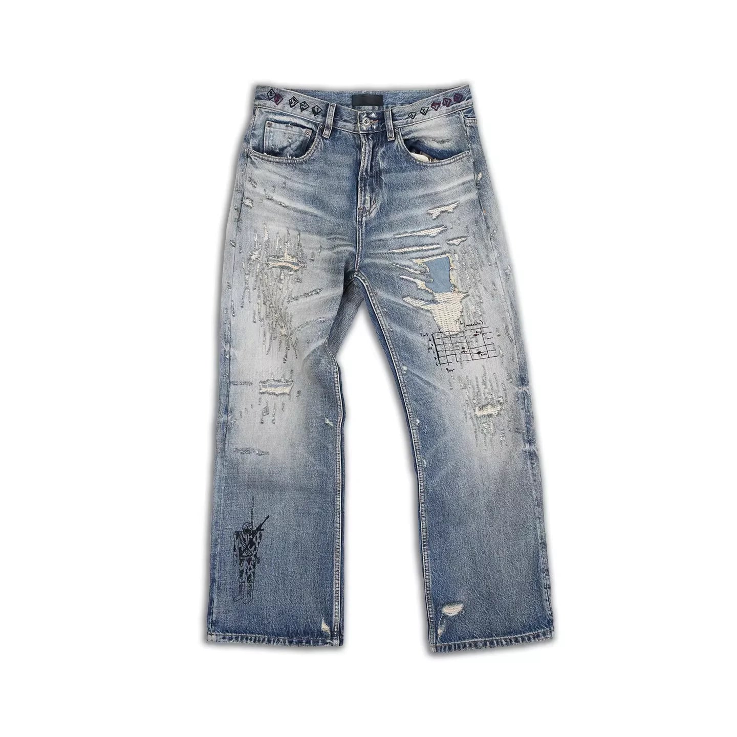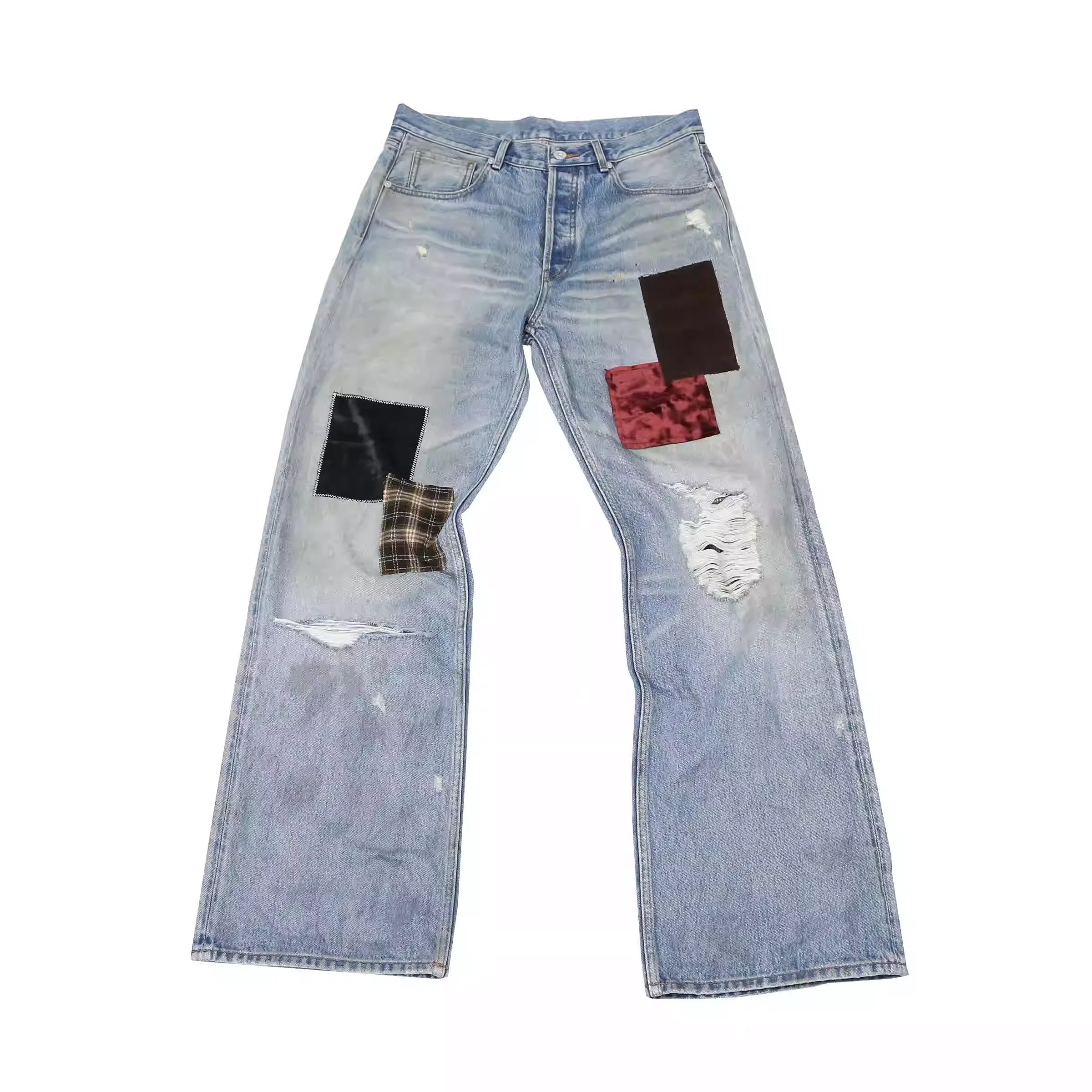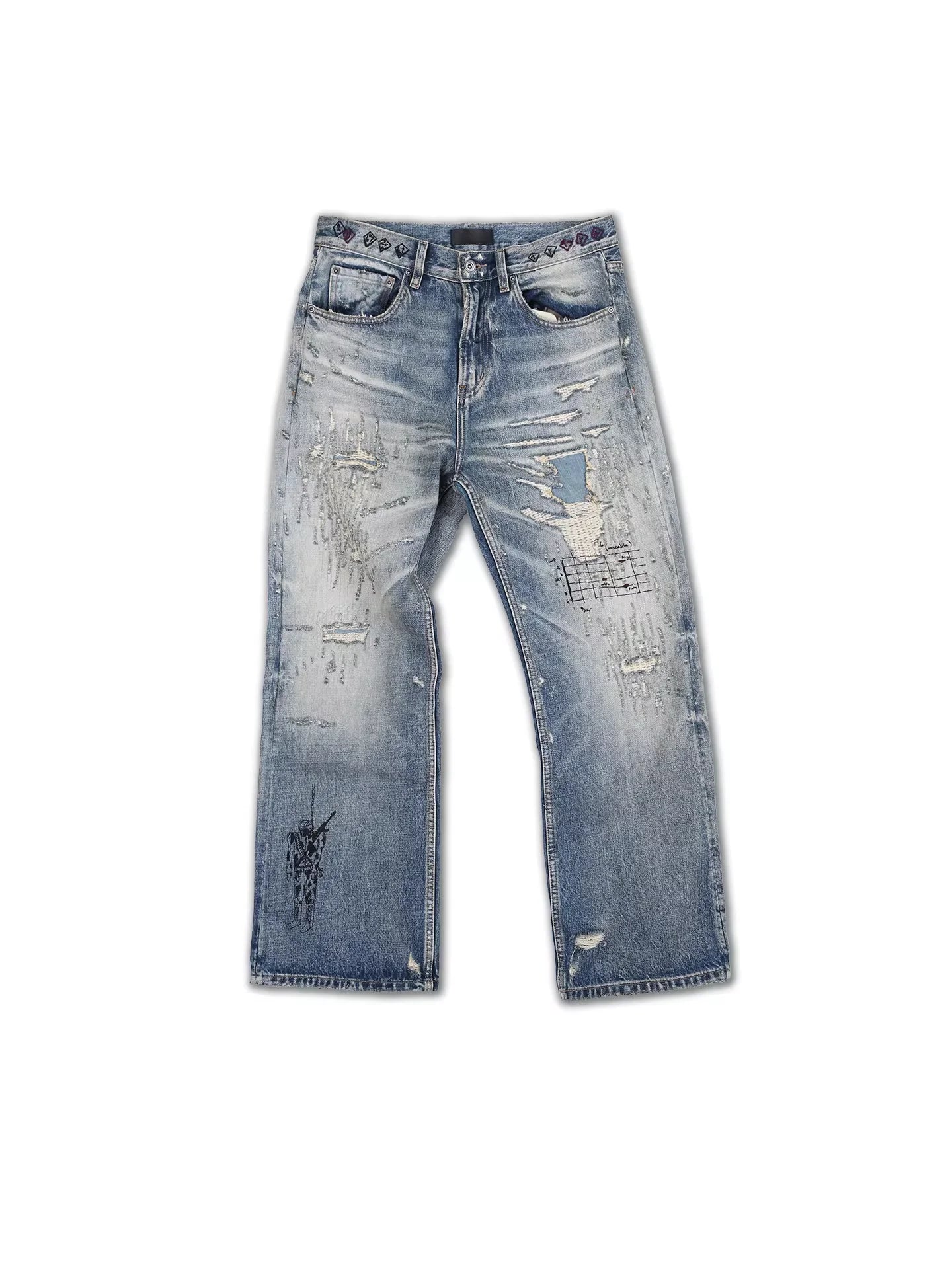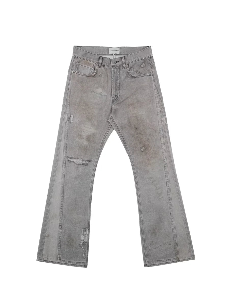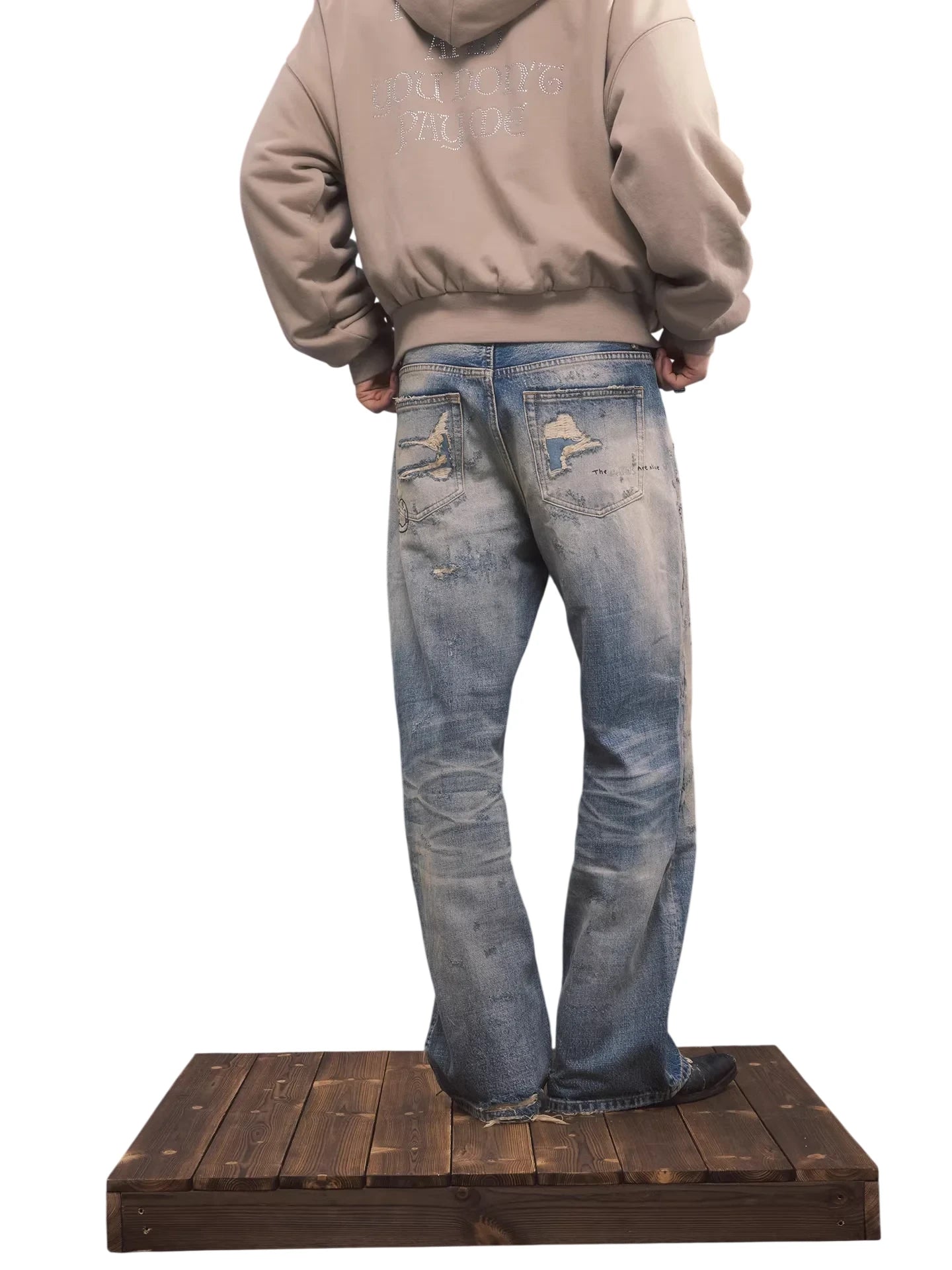Simple Project Men's Wide-Leg Lightning Wash Distressed Jeans
