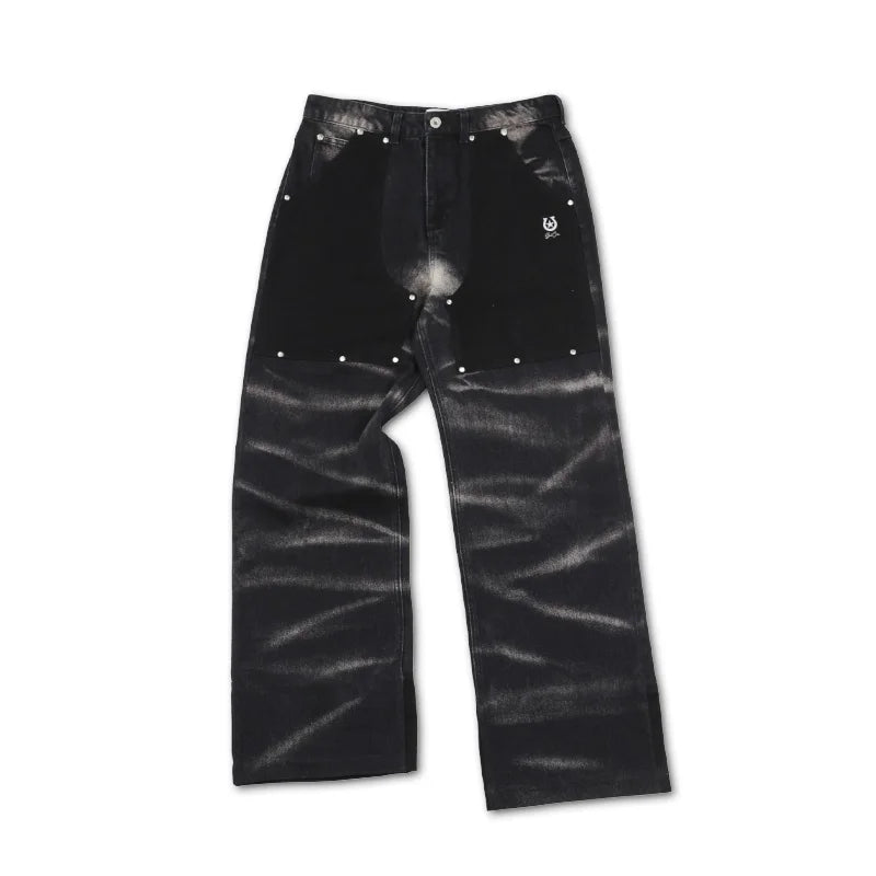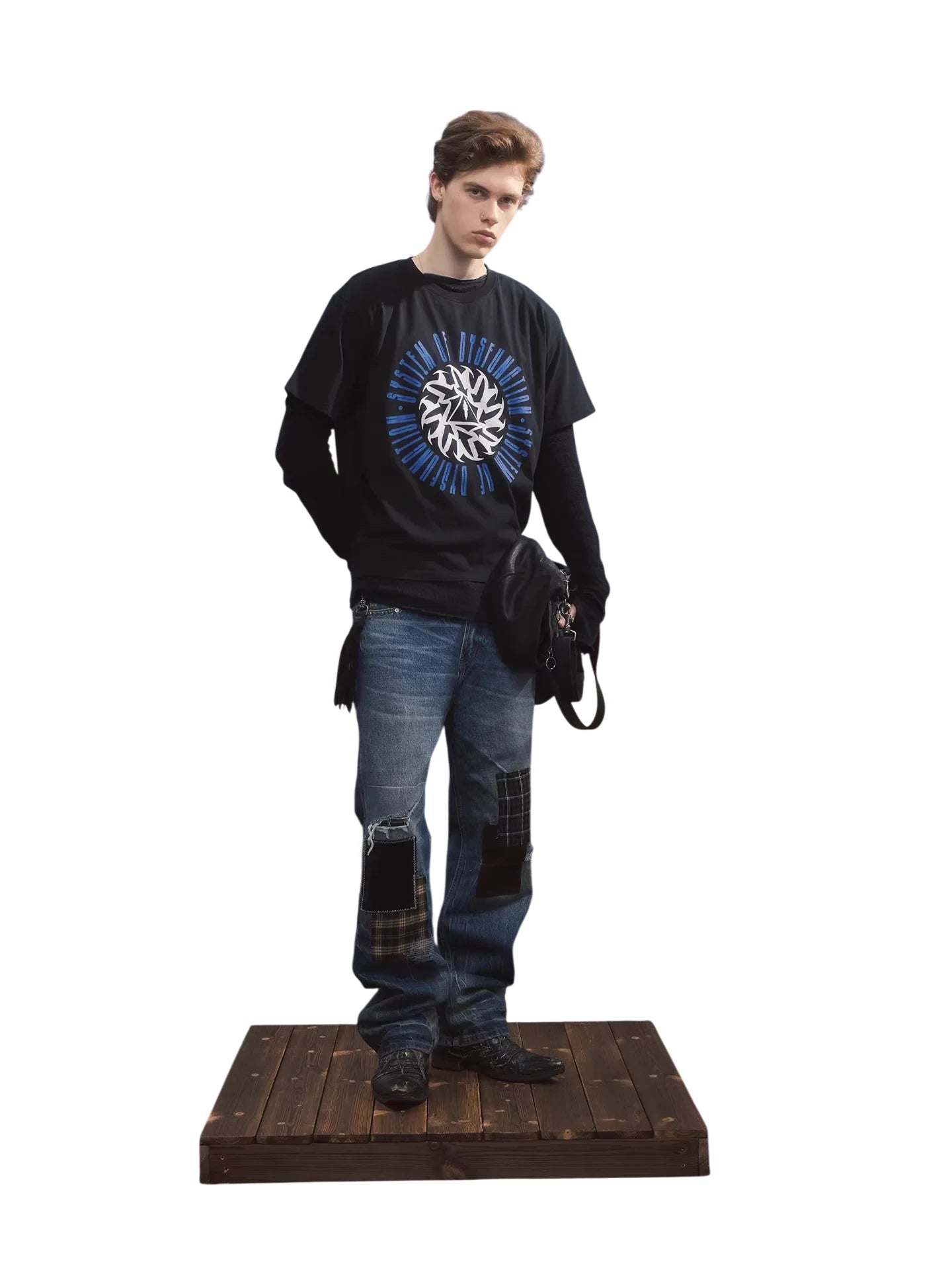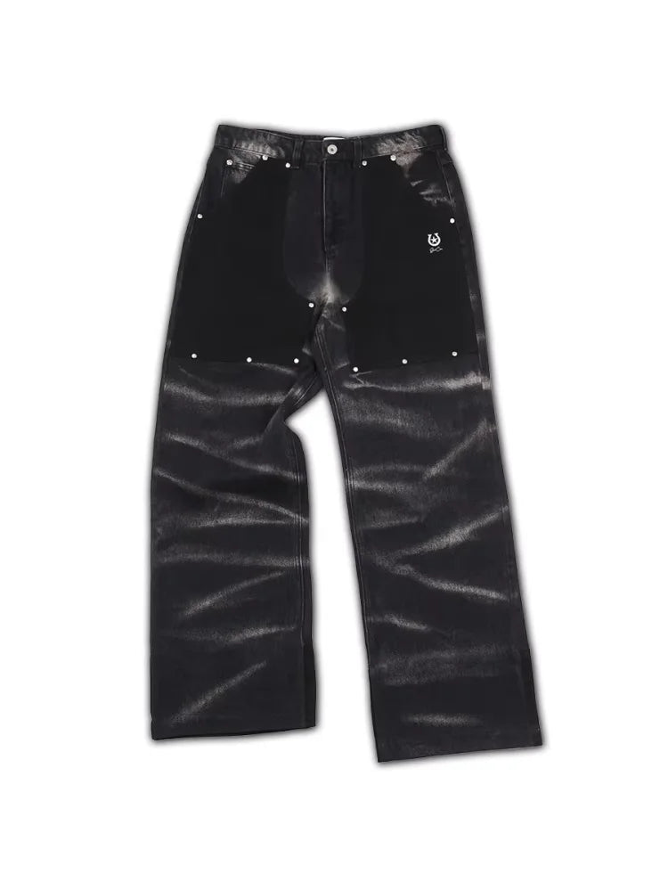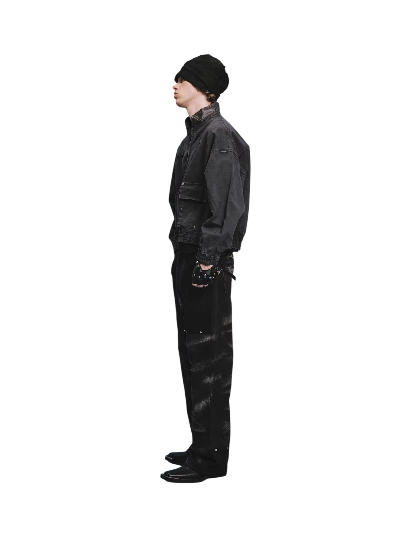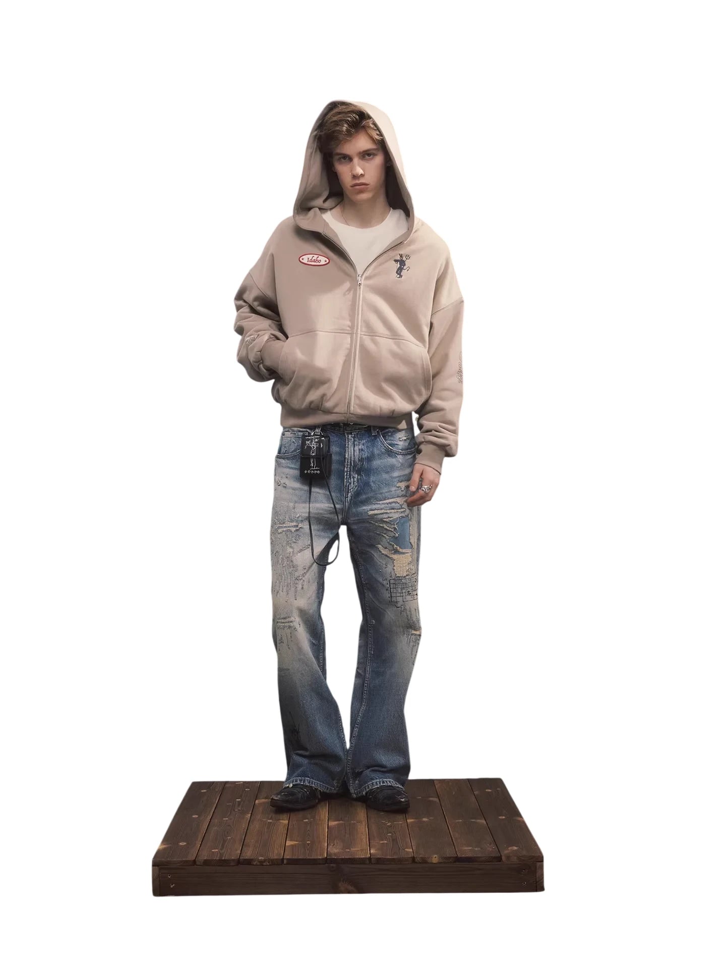 Simple Project Men's Wide-Leg Lightning Wash Distressed Jeans